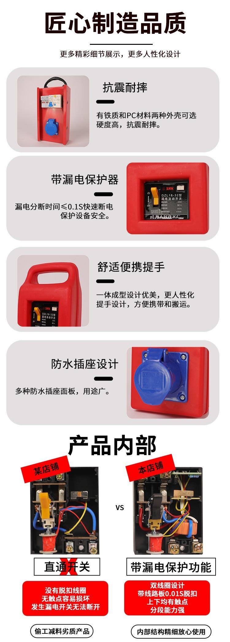 Toma de corriente móvil, caja eléctrica pequeña con protección contra fugas, enchufe industrial para obra, enchufe para protección contra fugas