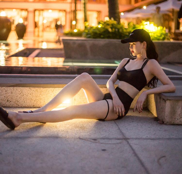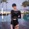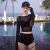 Traje de Baño de Tres Piezas de Malla Negra Nuevo 2019, Moderno, Sexy, Conservador, Ajustado para Mujer