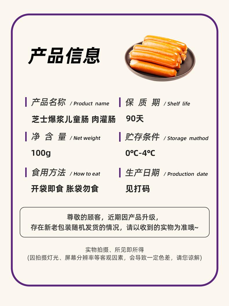 Salchicha Pop-Up de Queso Gangjia 100g Salchicha para Sándwich Lista para Comer Salchicha para Desayuno Salchicha Crujiente Salchicha de Jamón Snacks Casuales