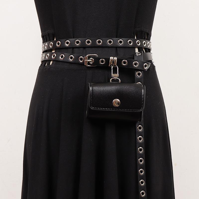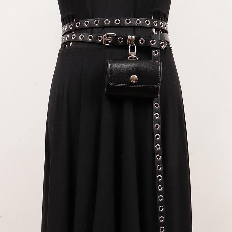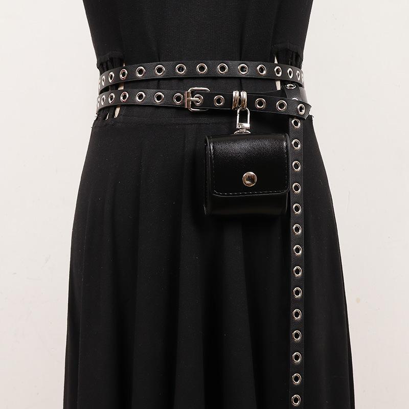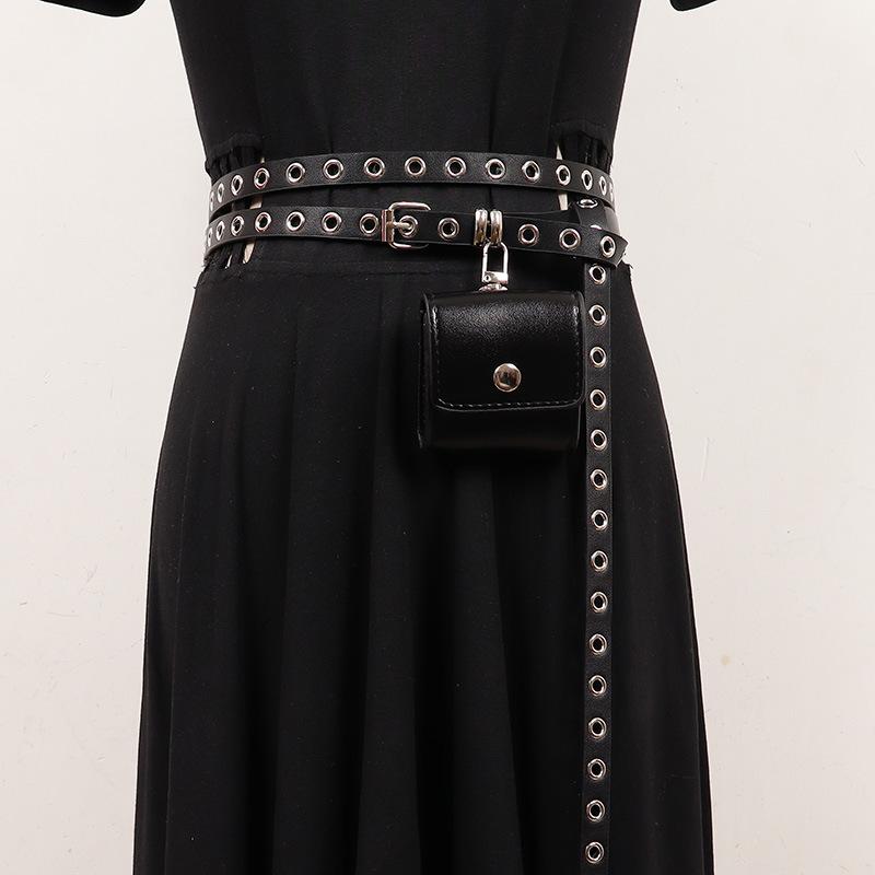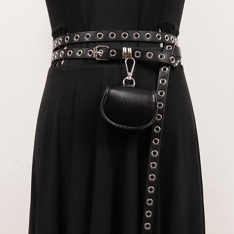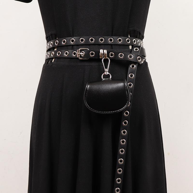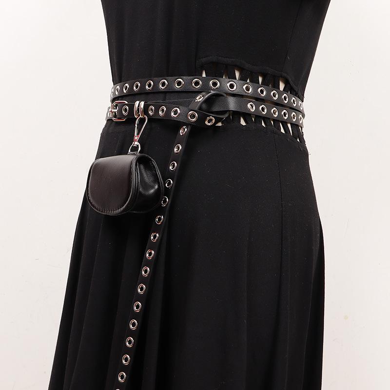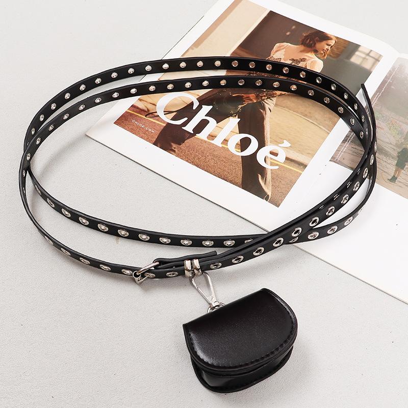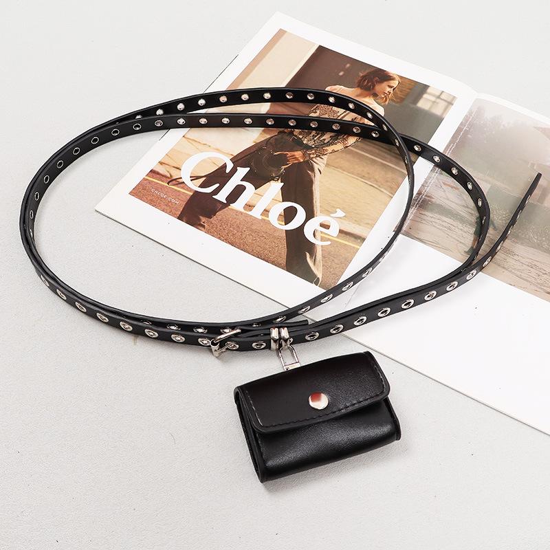Material: cuero PU Talla A: Longitud del cinturón 204 (ajustable) Ancho 1.3 Bolsa (6.9*6.9)