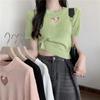 Dulce Estilo Sexy Cuello en V Manga Corta Tejido de Punto para Mujer 2023 Nuevo Verano Sexy Hottie Top Corto Tejido de Fondo