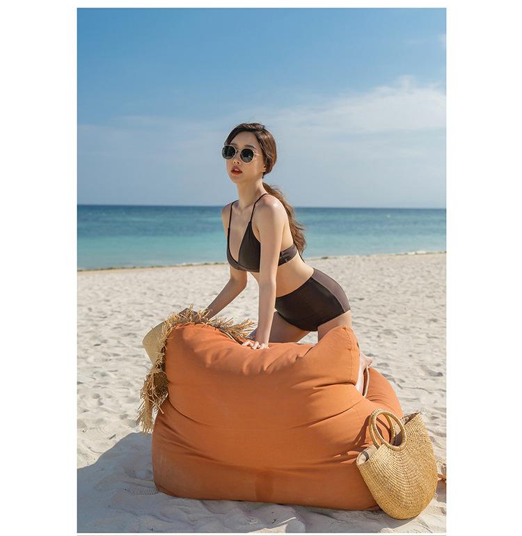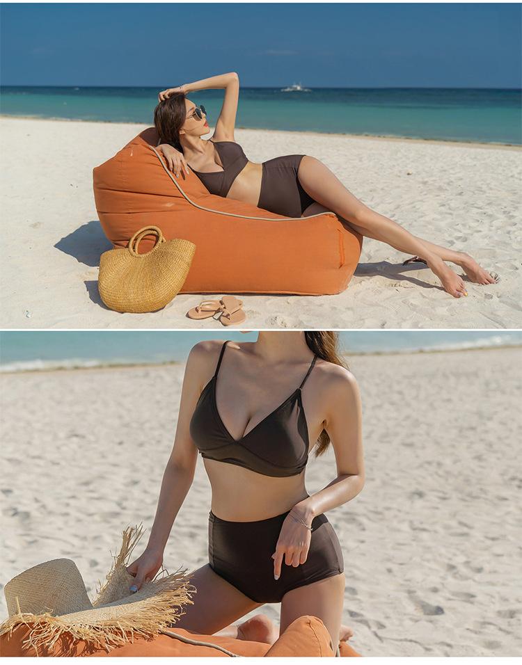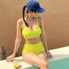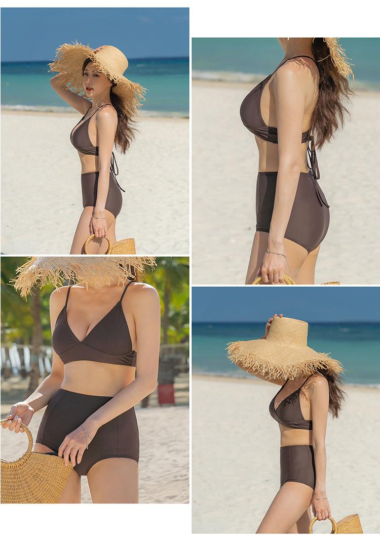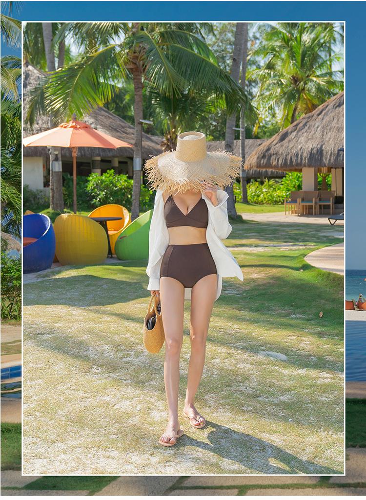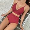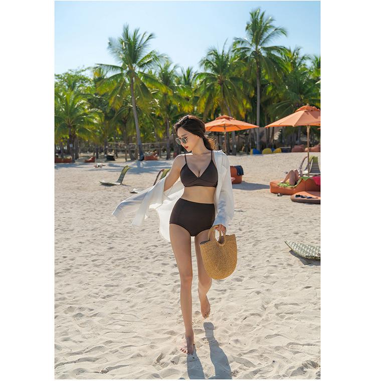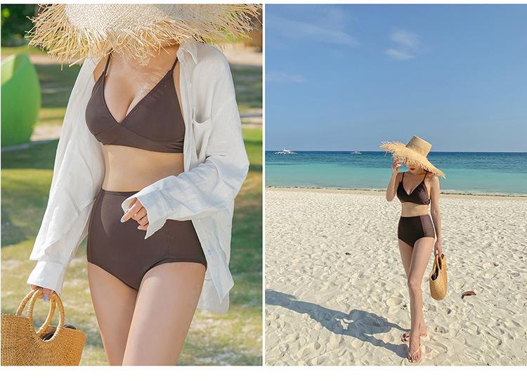 Bikini nuevo de estilo coreano 2020 de color sólido, sexy, de corte ajustado, push up para pecho pequeño, cintura alta que cubre el vientre, traje de baño conservador dividido para mujer