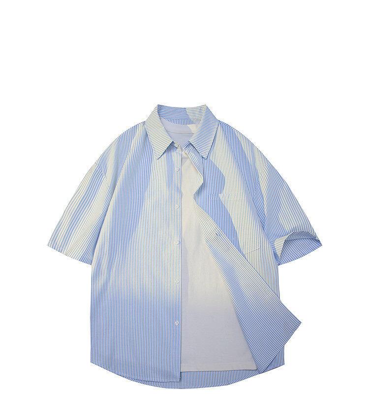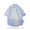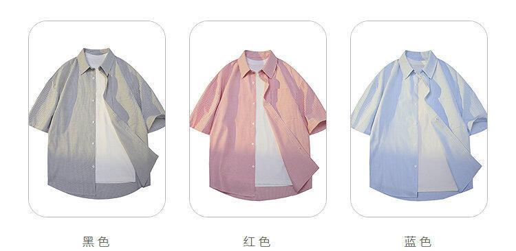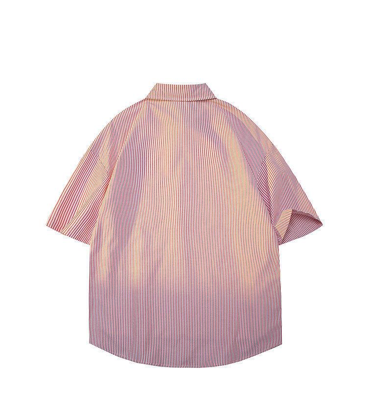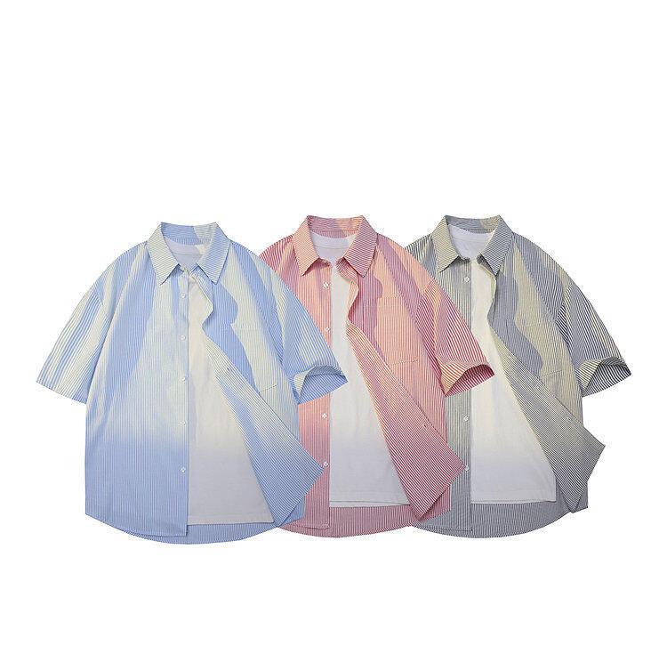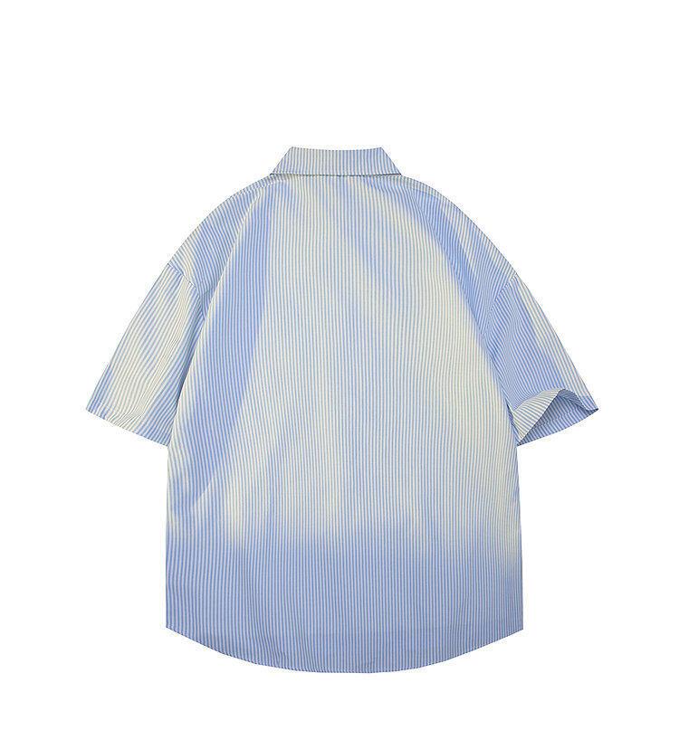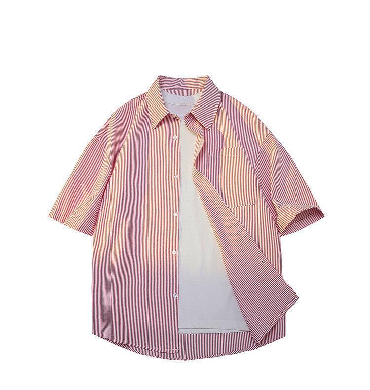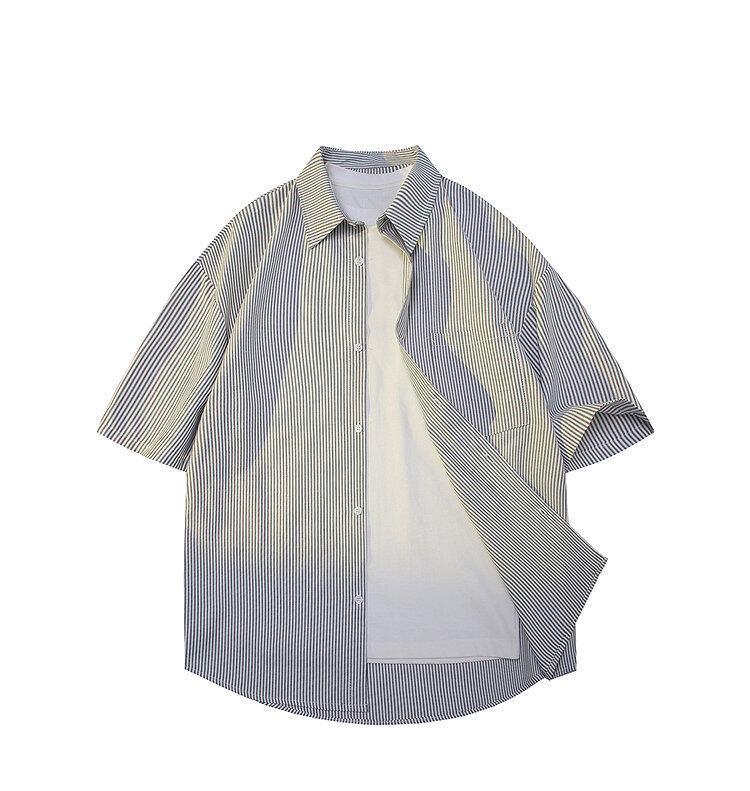 Camisa de manga corta a rayas para hombre, nueva camisa informal holgada de marca de moda, con solapa, de verano 2025