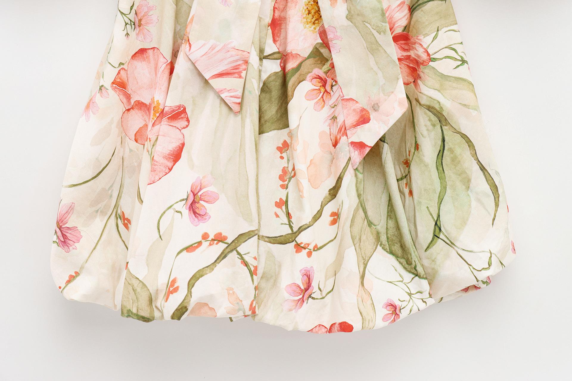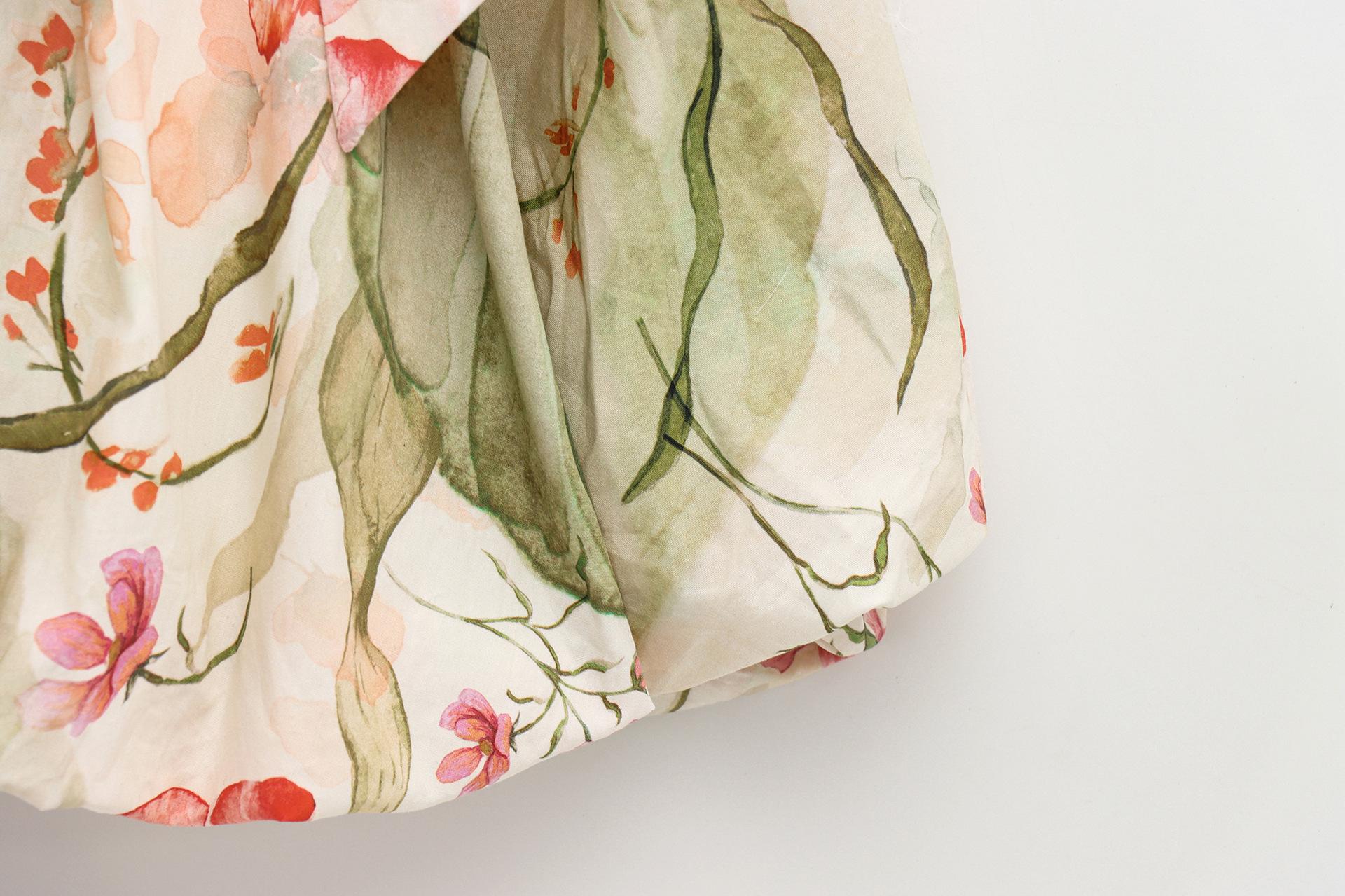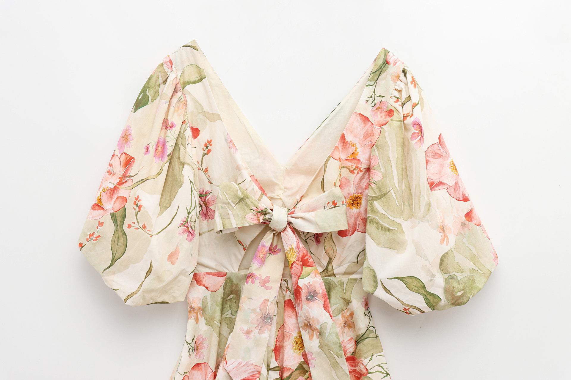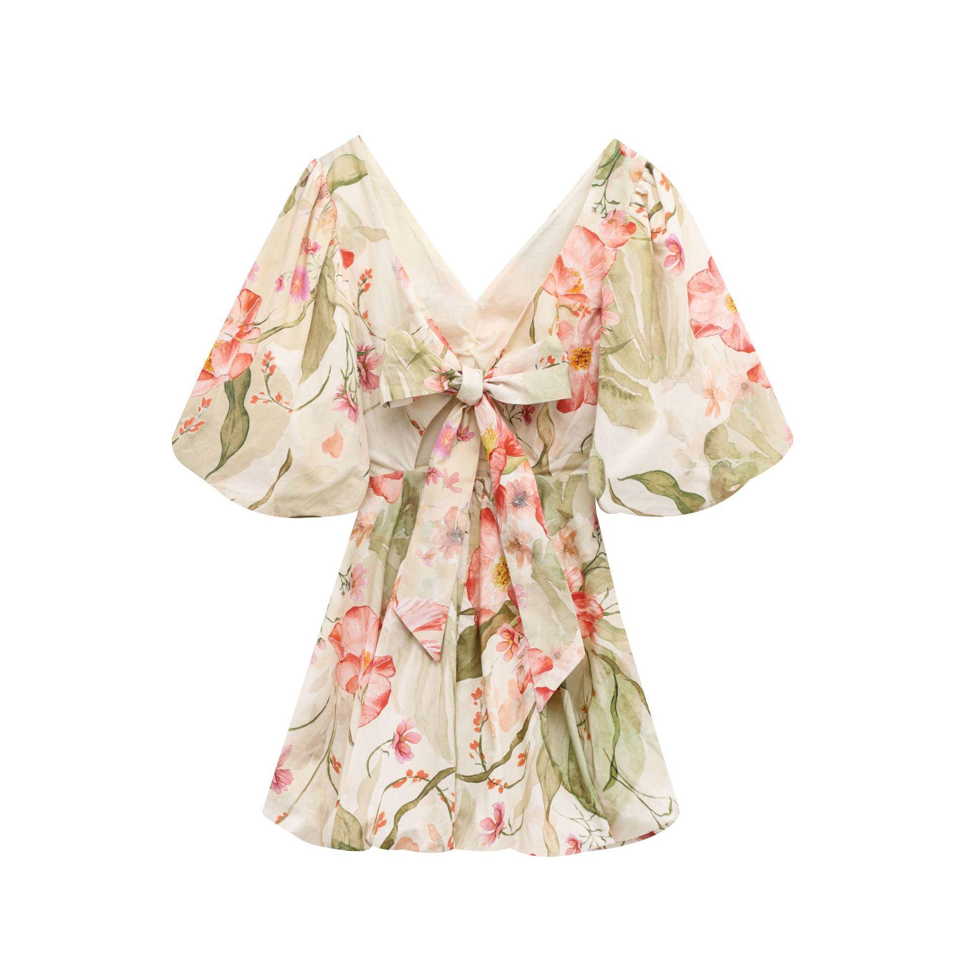 Vestido corto de estilo palaciego para mujer con cuello en V, espalda con cordones, manga abullonada, nuevo estampado, falda transfronteriza de estilo europeo y americano