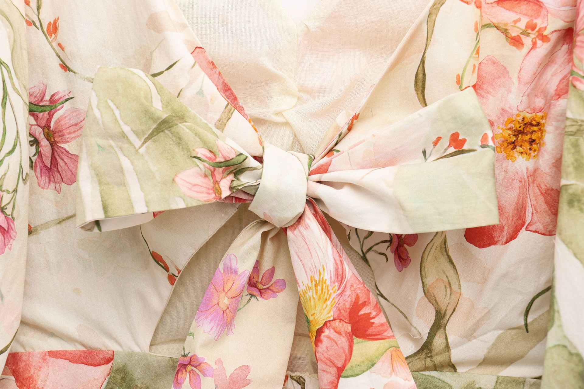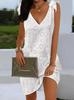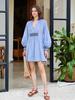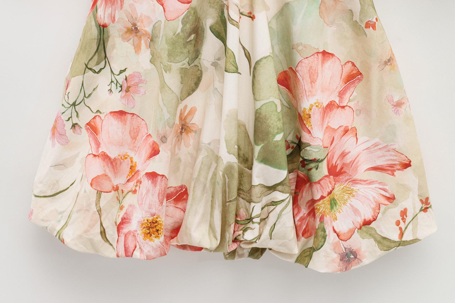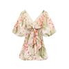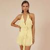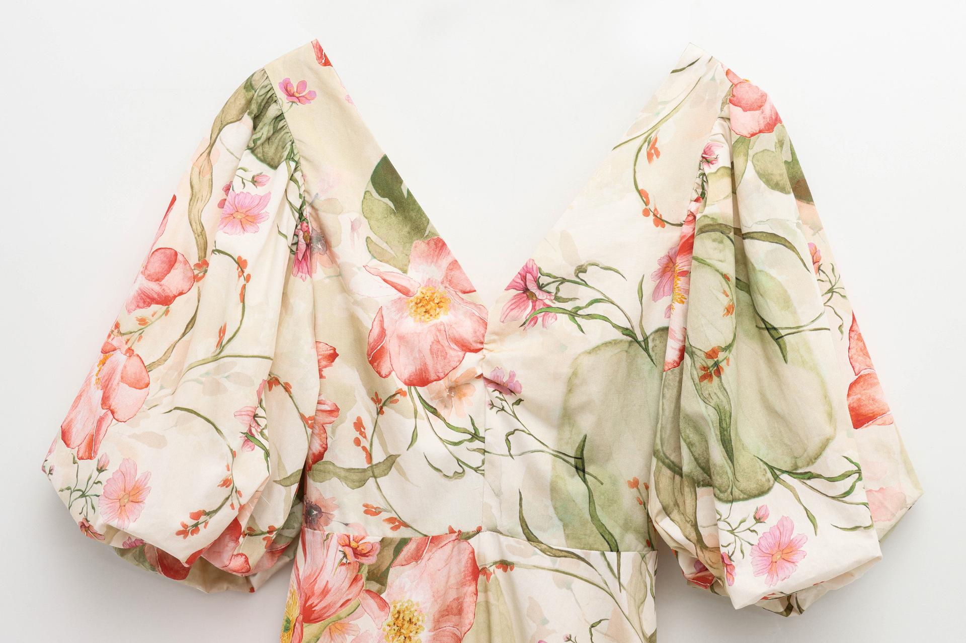 Vestido corto de estilo palaciego para mujer con cuello en V, espalda con cordones, manga abullonada, nuevo estampado, falda transfronteriza de estilo europeo y americano