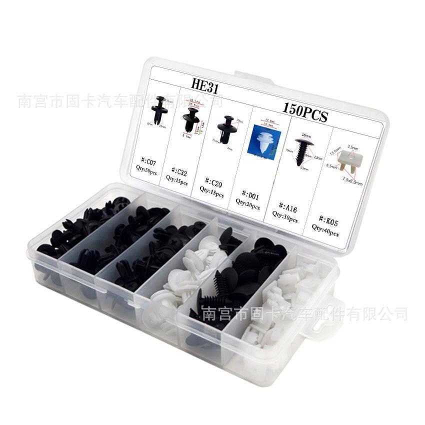 Clasificados por apariencia y estructura: 1. Hebilla de remache con forma de árbol, clip de fijación con tornillo y clavo adhesivo; 2. Hebilla de remache con púas, clip de fijación con tornillo y clavo adhesivo; 3. Hebilla de remache con forma de árbol de Navidad, clavo adhesivo, clip de tornillo, hebilla de fijación y conector de fijación enchufable; 4. Clips de fijación para remaches de expansión, tornillos a presión y clavos de goma; 5. Clips de fijación para remaches de cola abierta, tornillos a presión y clavos de goma; 6. Clips de fijación para remaches, tornillos a presión y clavos de goma de diversas formas especiales.