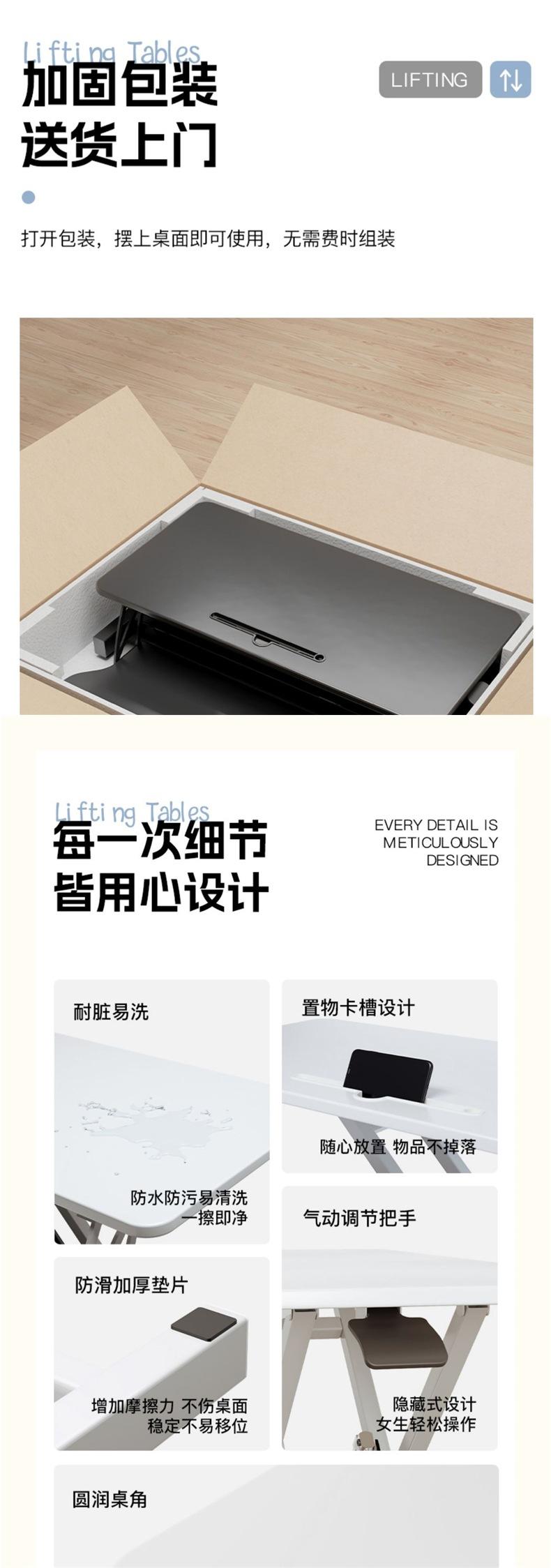 Cloud white [infinite lift] small single-layer pneumatic lift table (small size, small footprint) door-to-door delivery