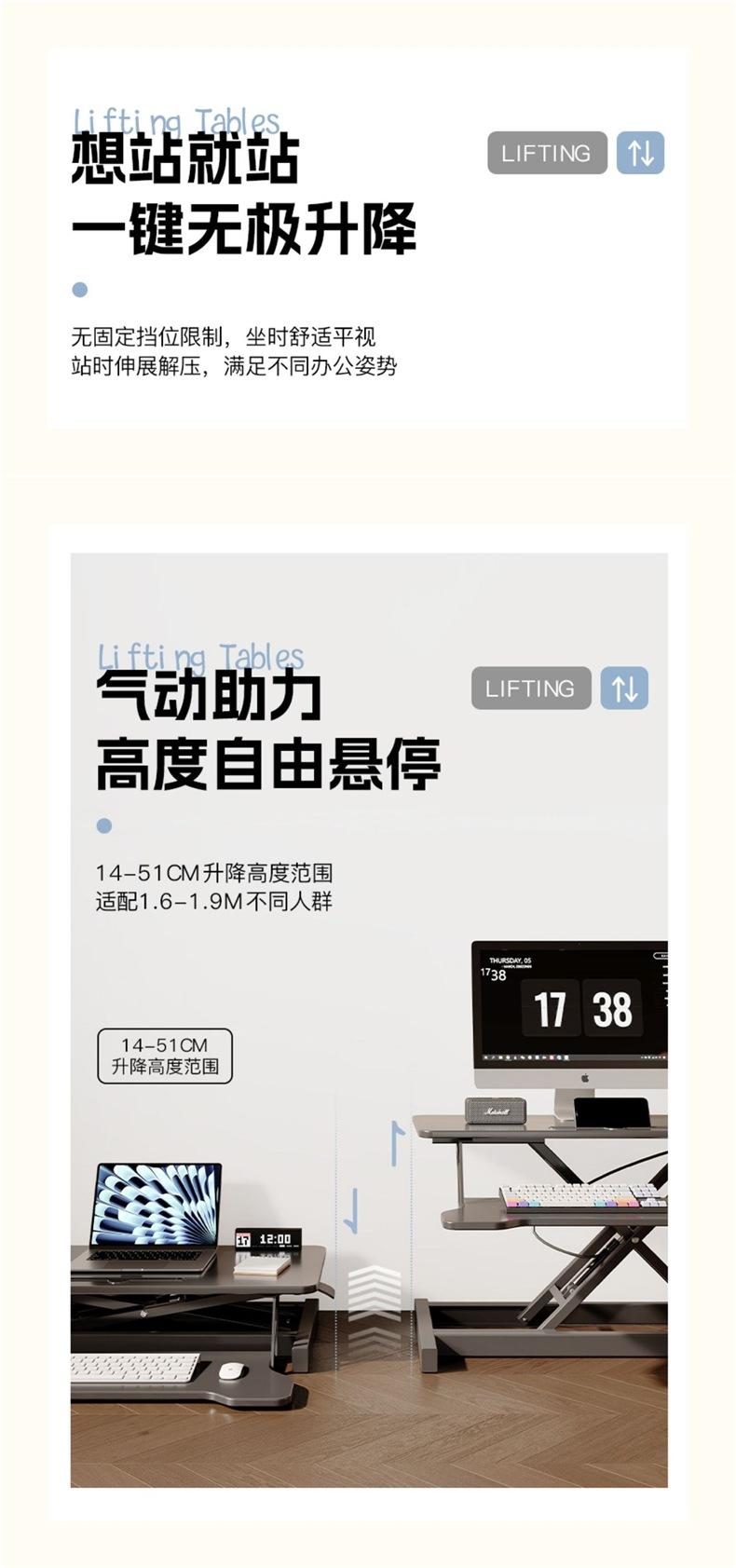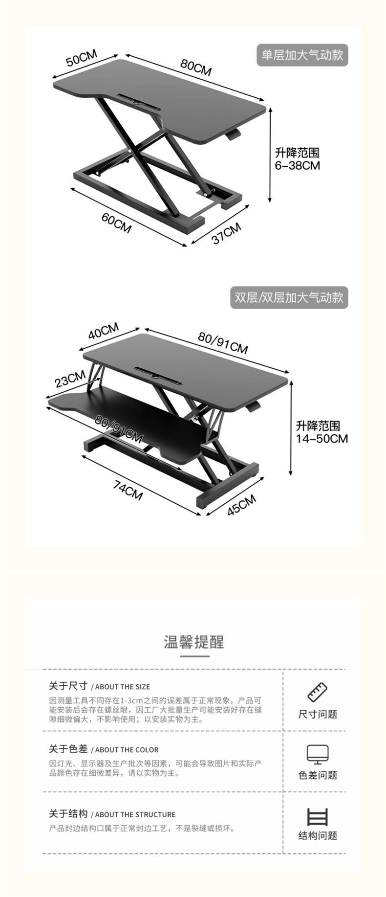【obsidian black】double-layer pneumatic 80*40 (double-layer reinforced stepless height adjustment)