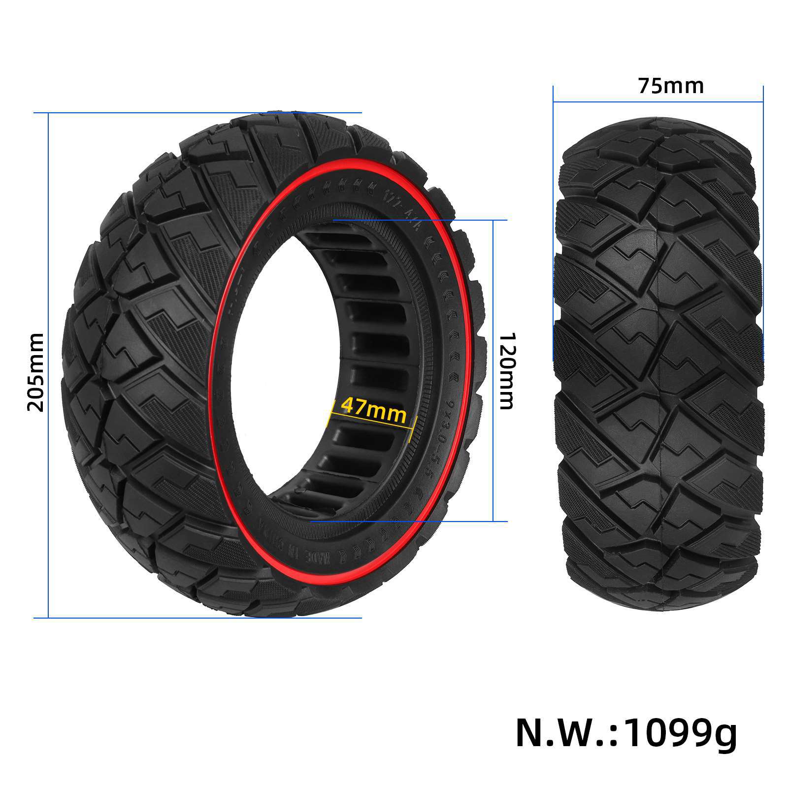 Ulip9*3.0-5.5 red line diamond off-road pattern solid tire