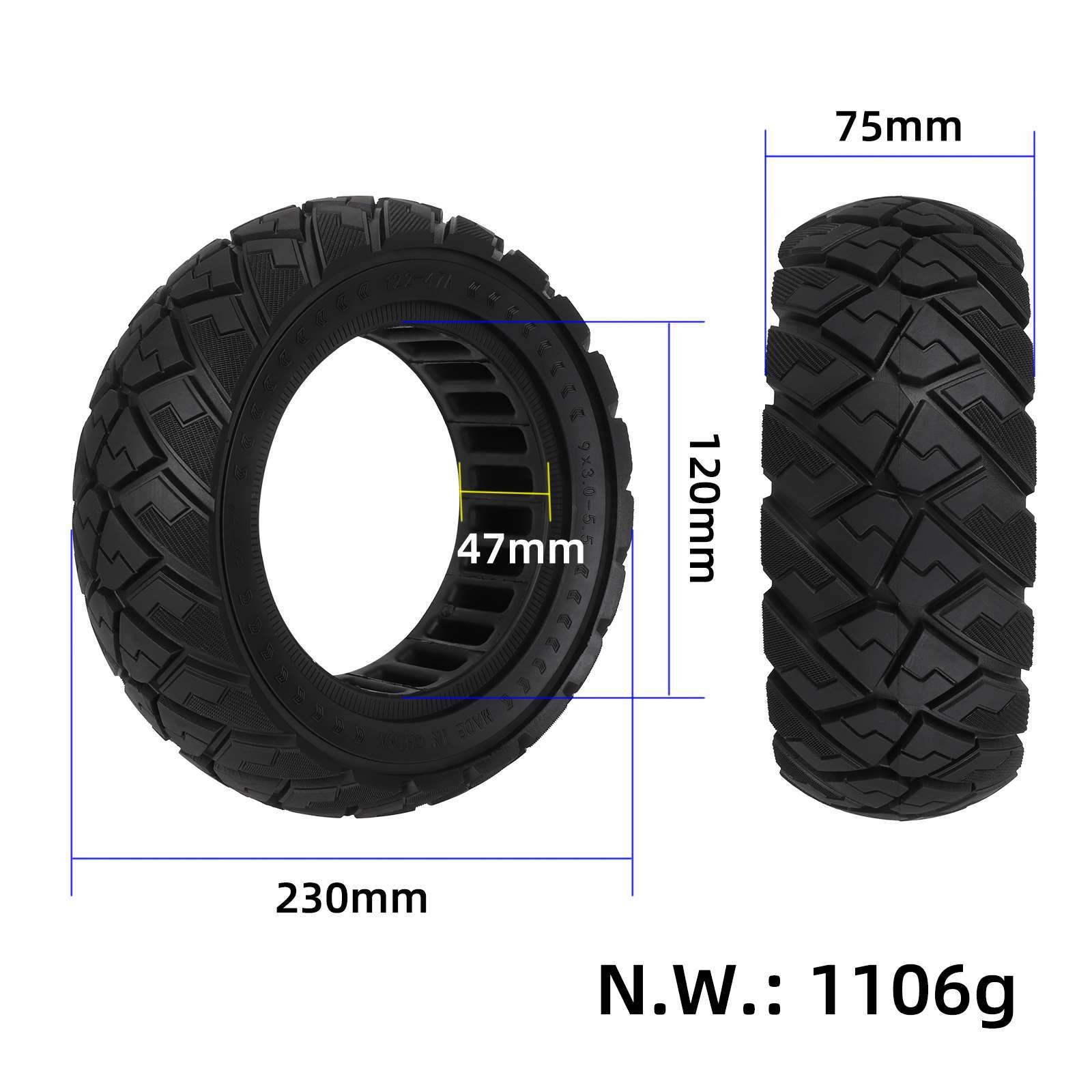 Ulip9*3.0-5.5 diamond off-road pattern solid tire, Ulip9*3.0-5.5 three-color thread diamond off-road pattern s...