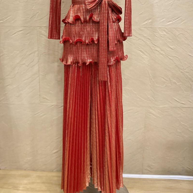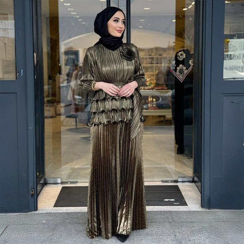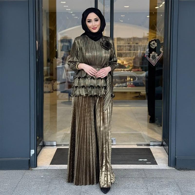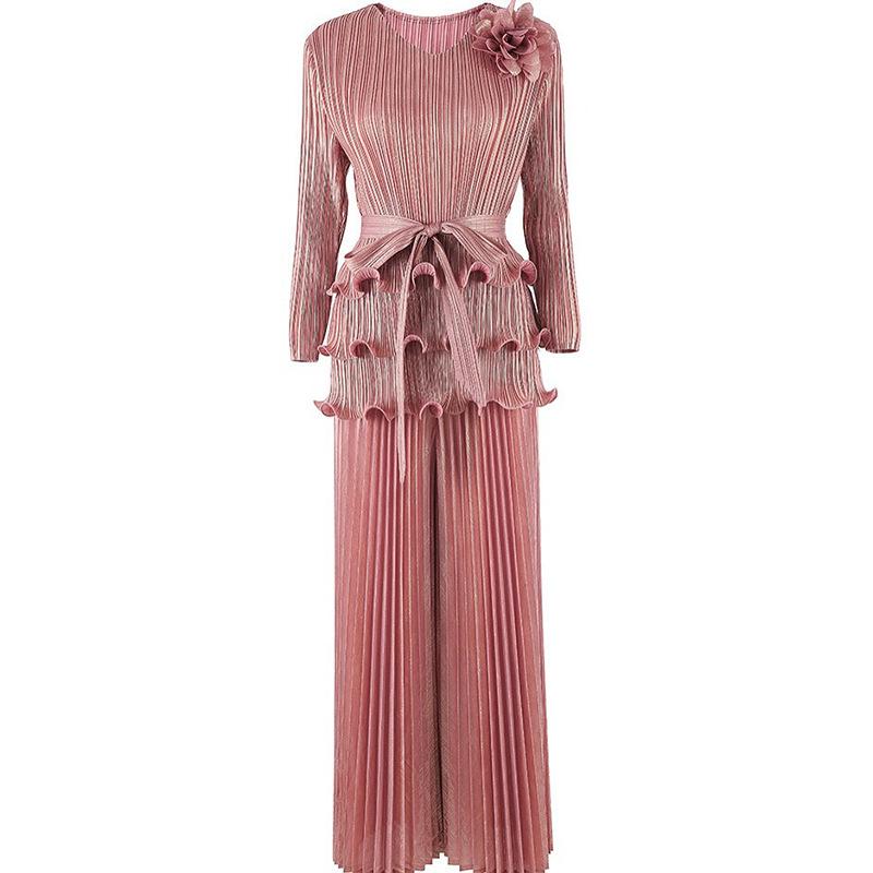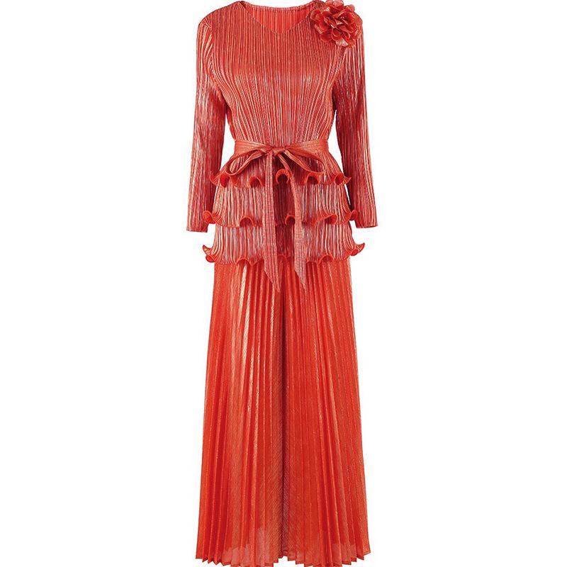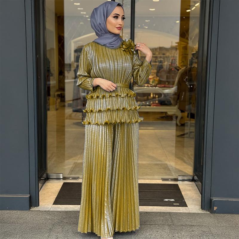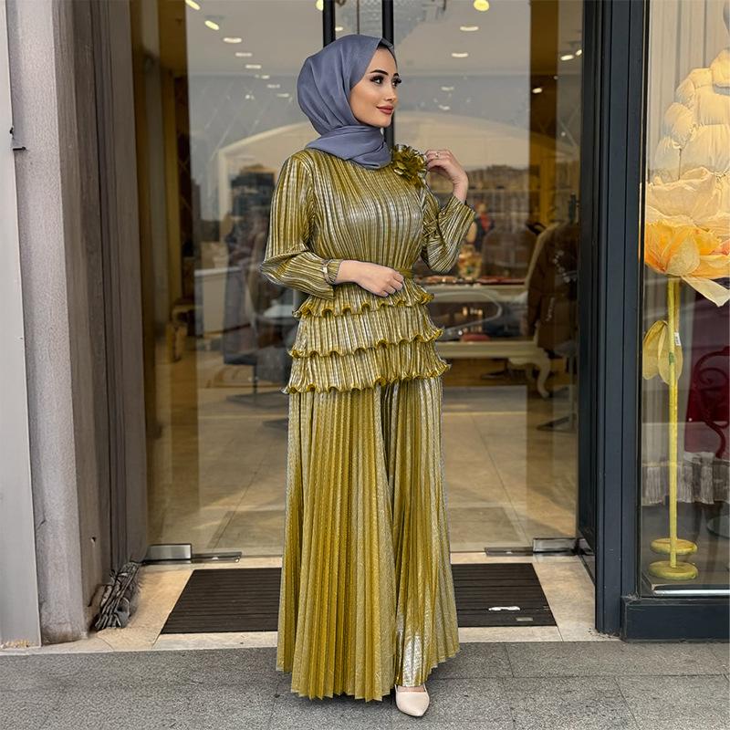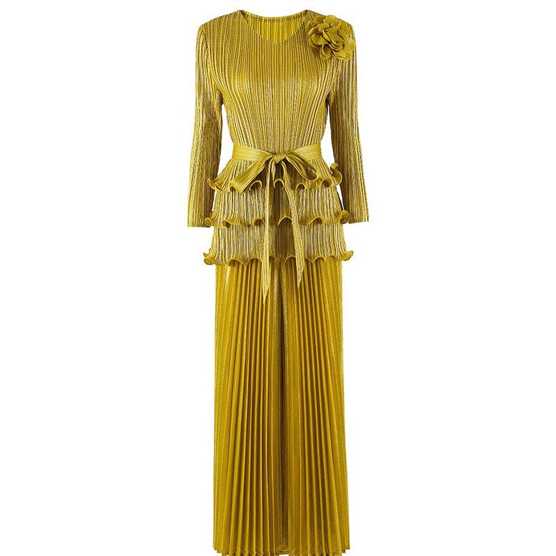 Traje adelgazante para mujer de talla grande Top plisado Miyake de alta gama Vestido largo plisado Falda de dos piezas Oriente Medio
