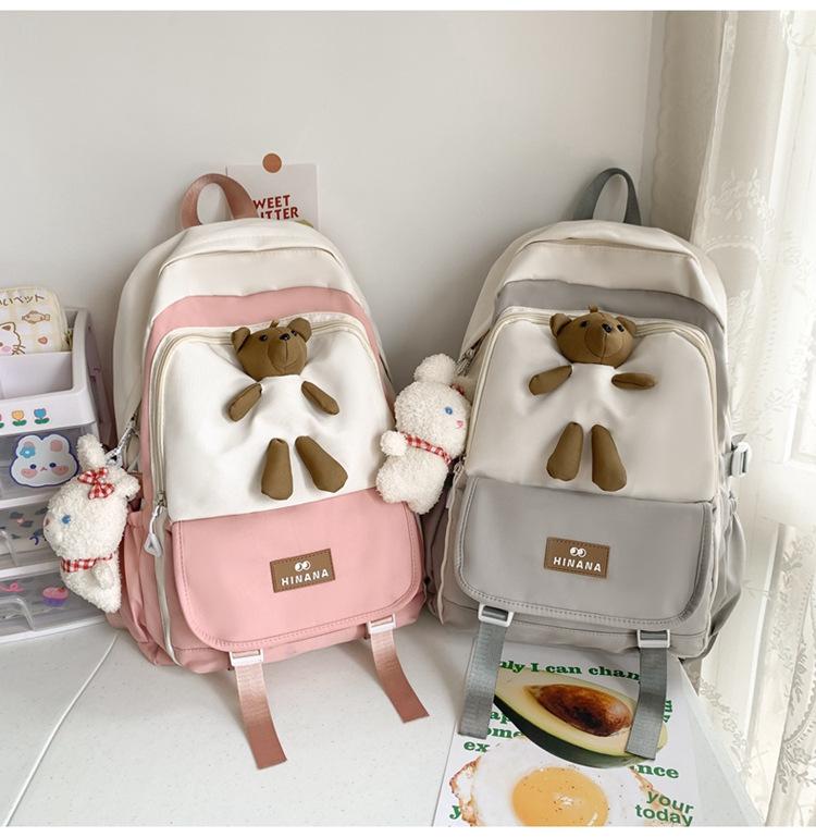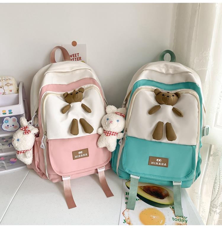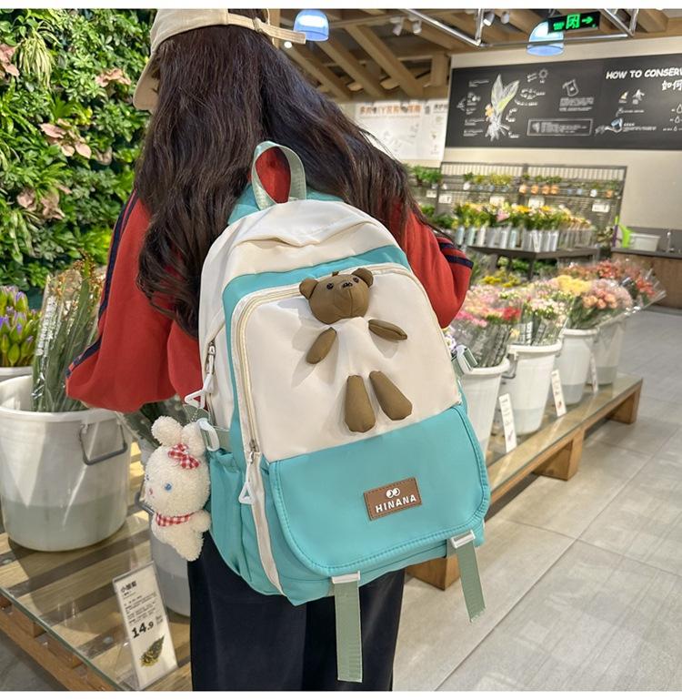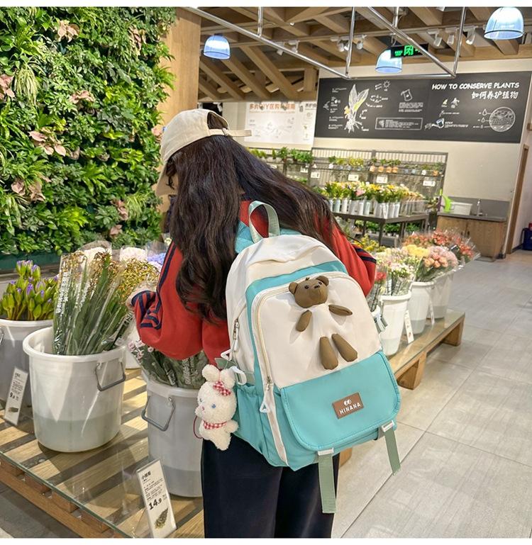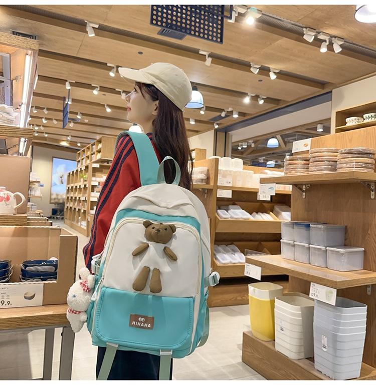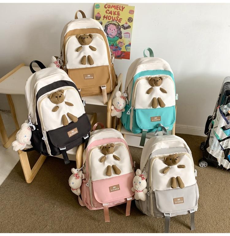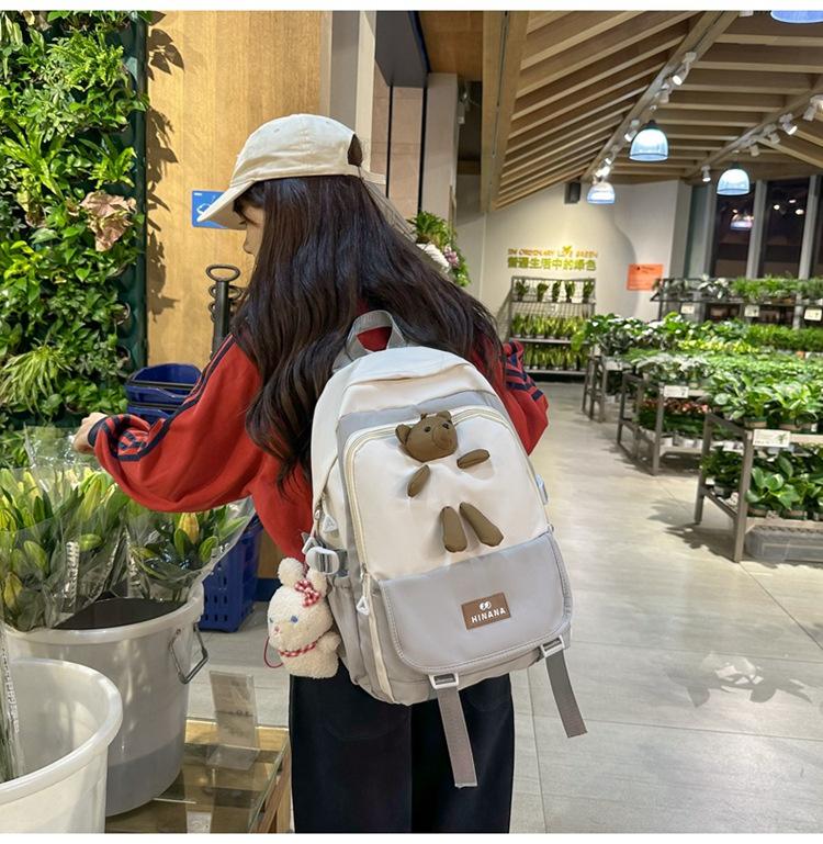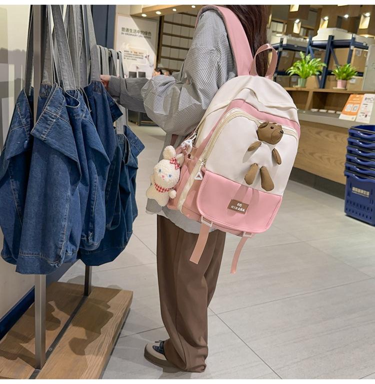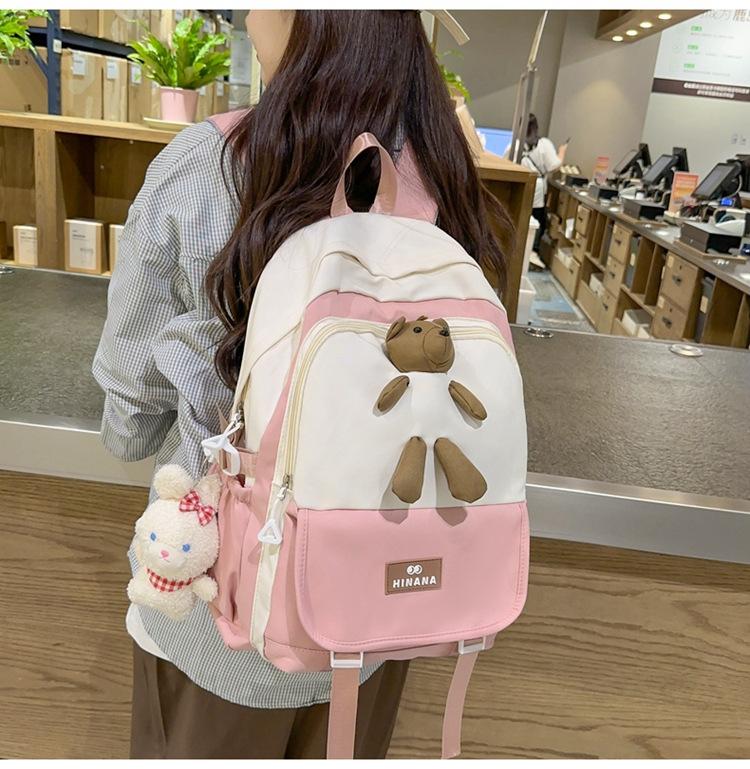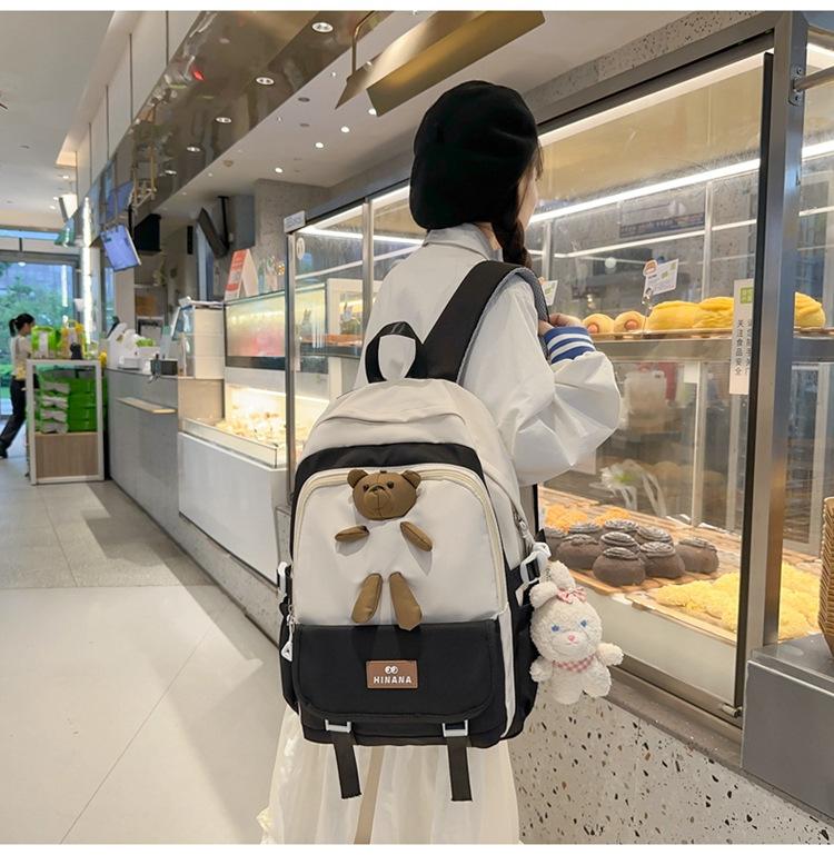 Mochila Ins Nuevo Estilo Coreano Color Contrastante Mochila Linda Moda Versátil Mochila Escuela Primaria Escuela Secundaria Niñas Oso Bolsa Escolar