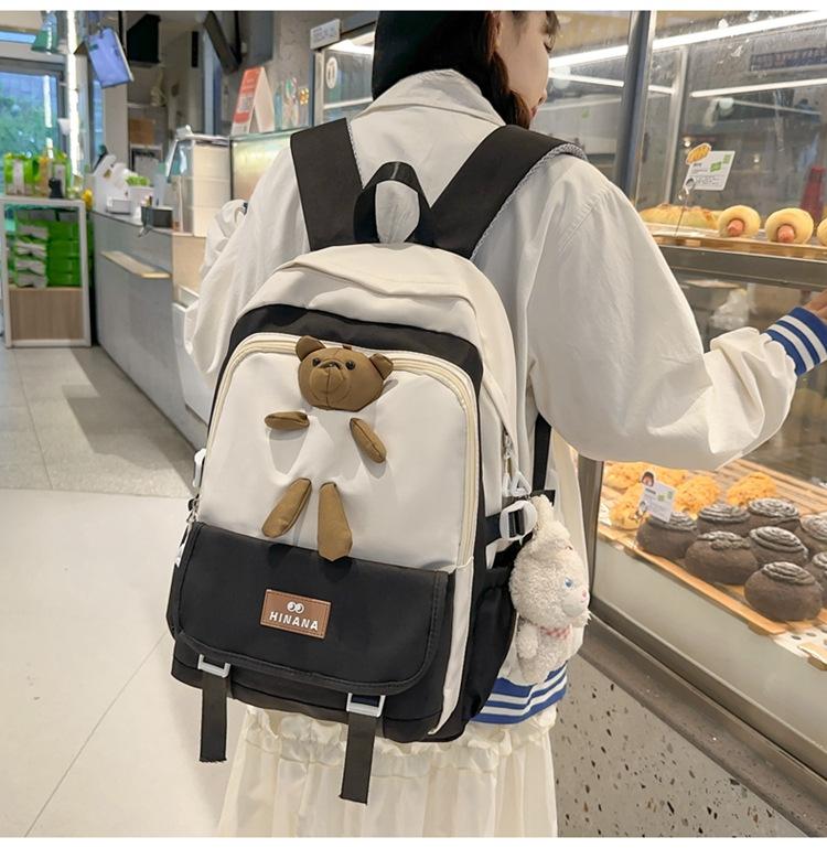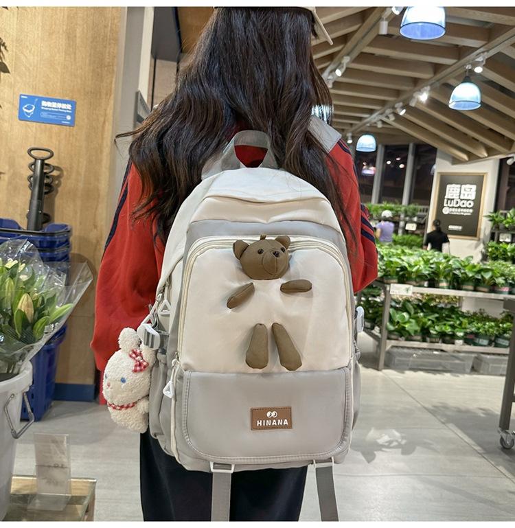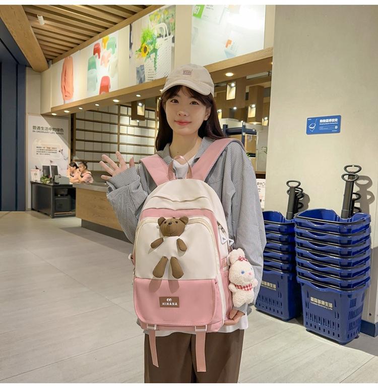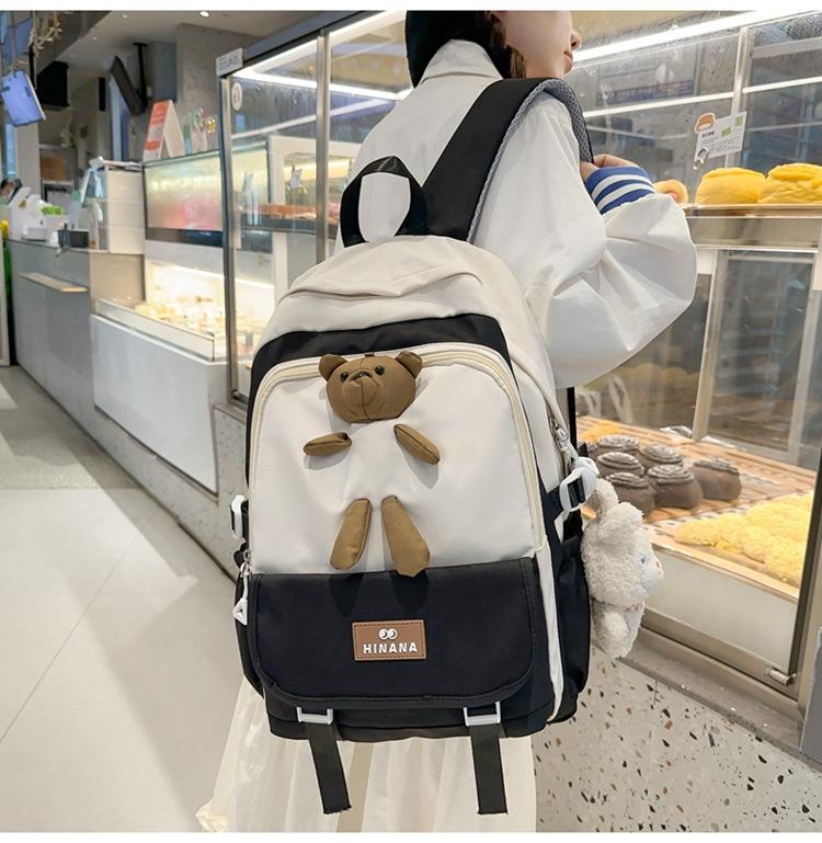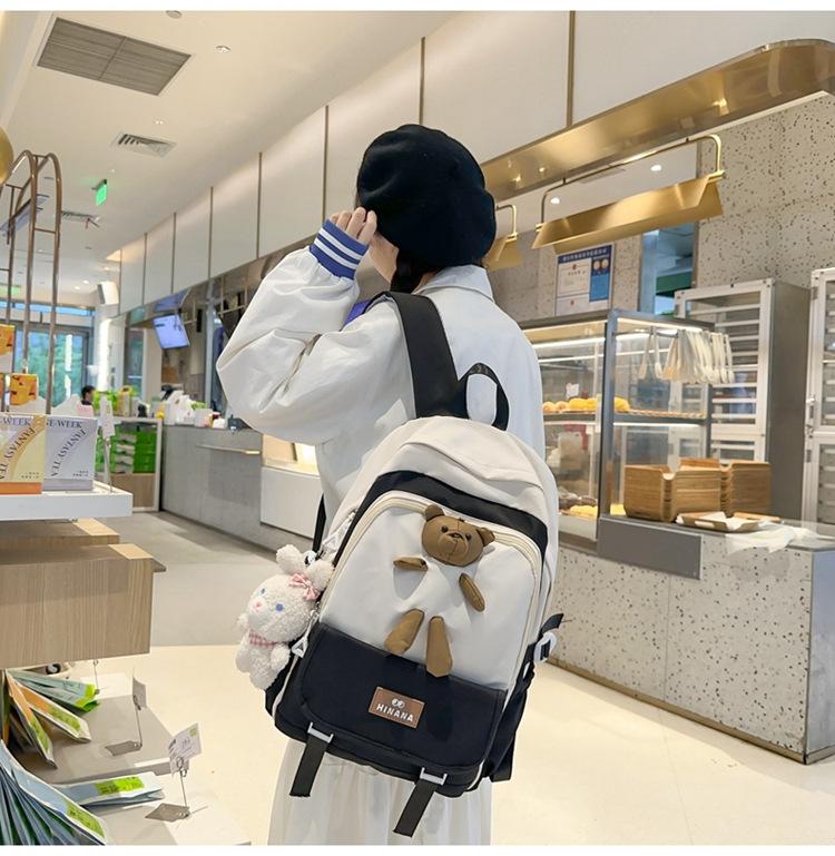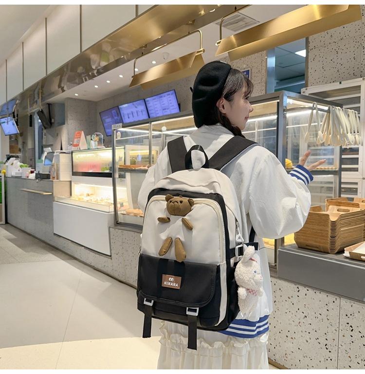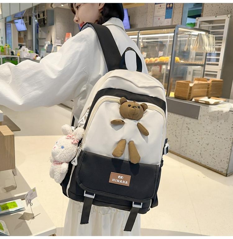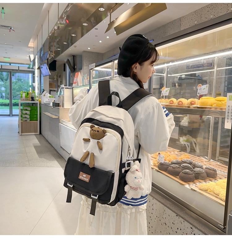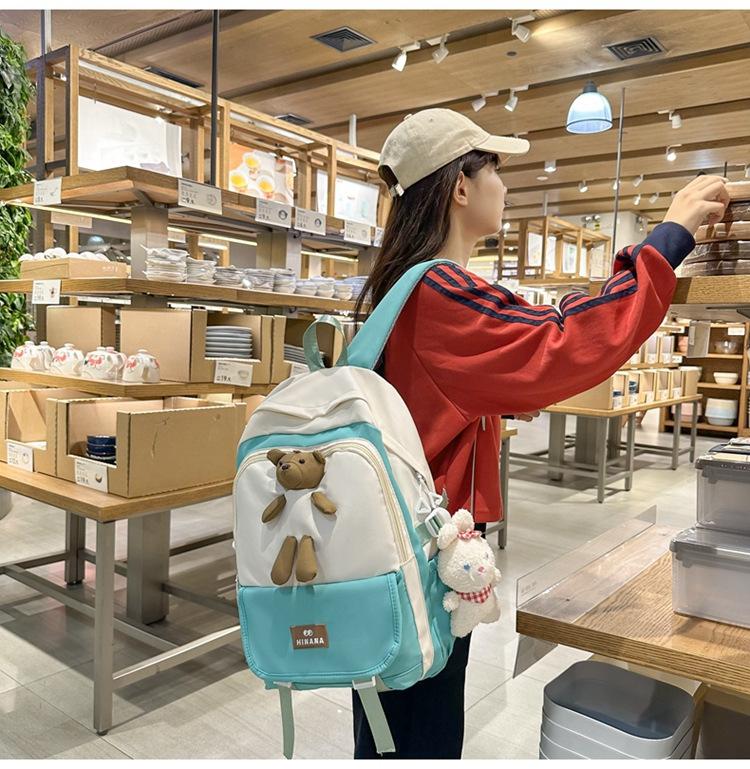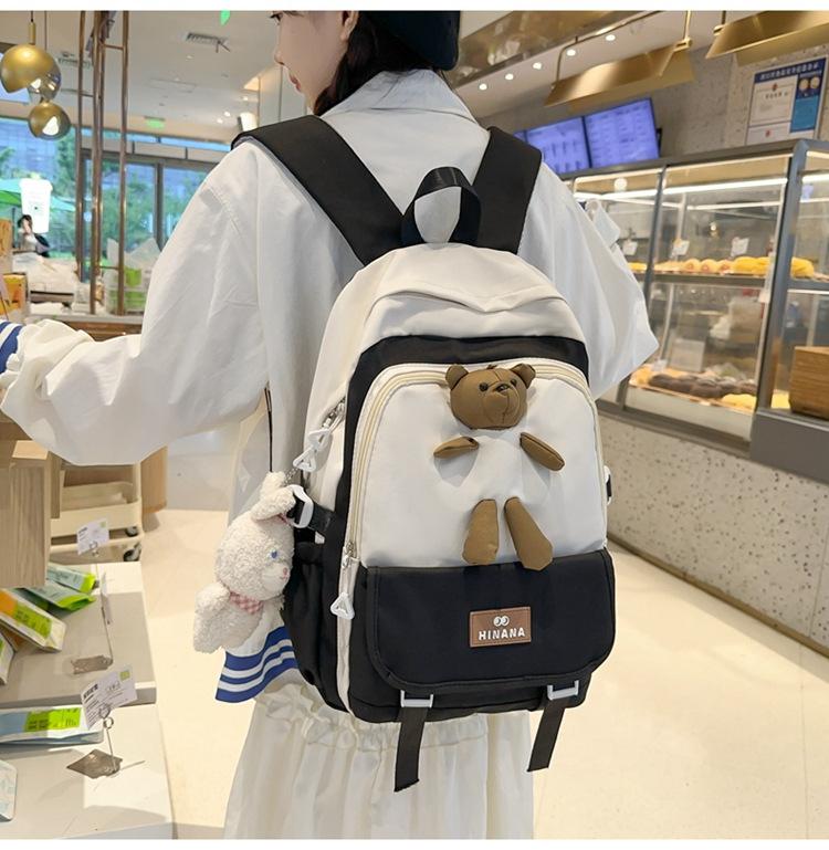 Mochila Ins Nuevo Estilo Coreano Color Contrastante Mochila Linda Moda Versátil Mochila Escuela Primaria Escuela Secundaria Niñas Oso Bolsa Escolar
