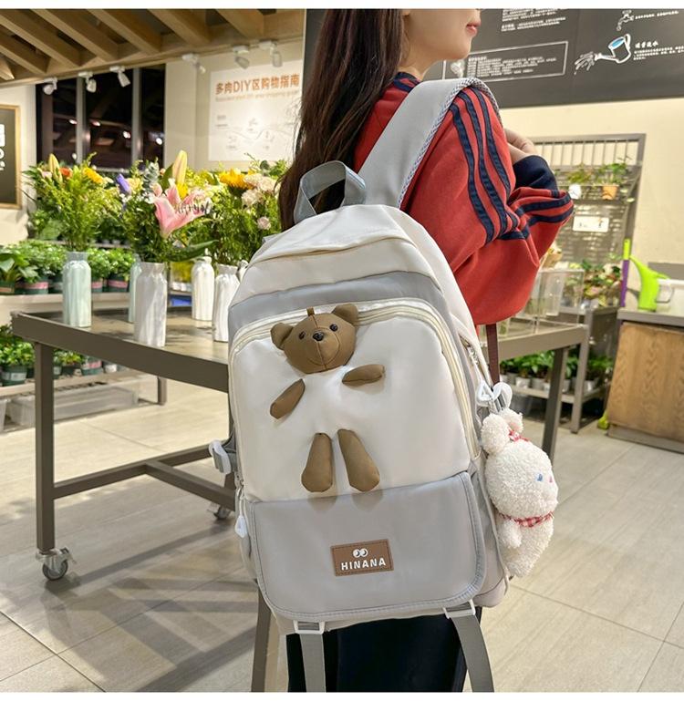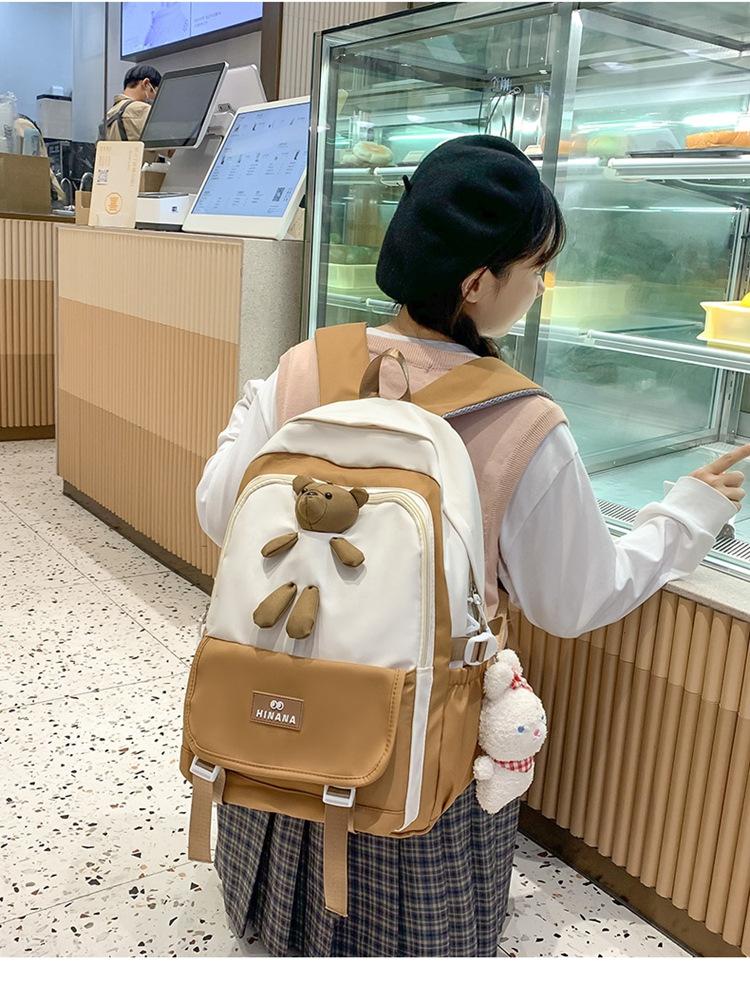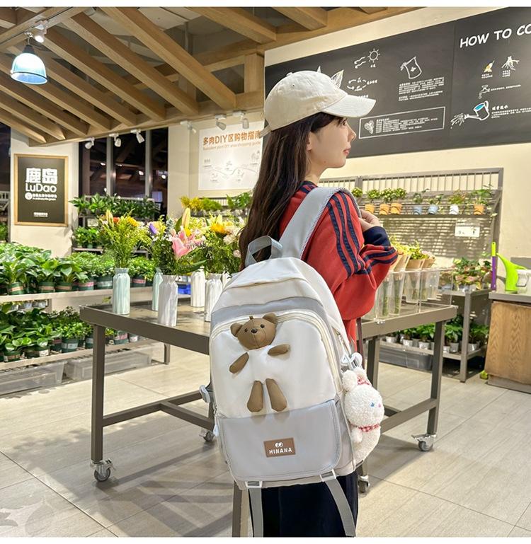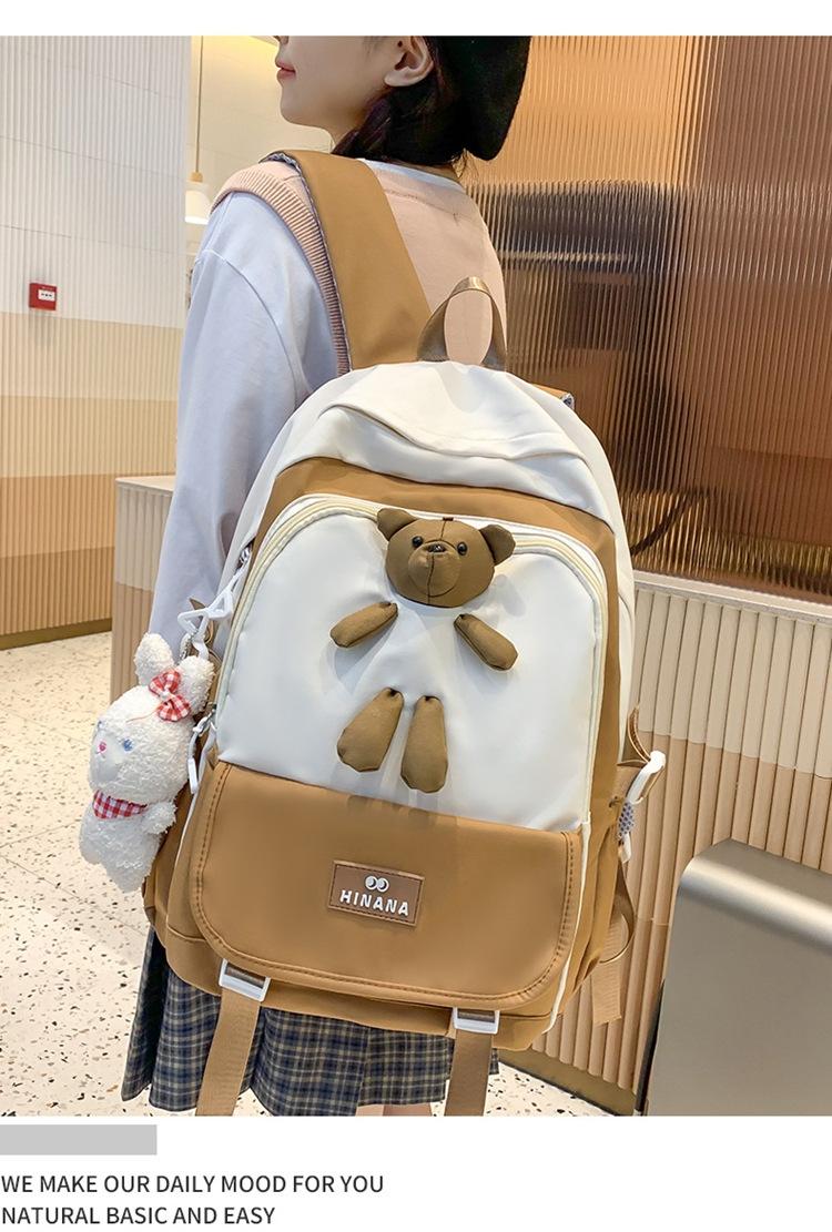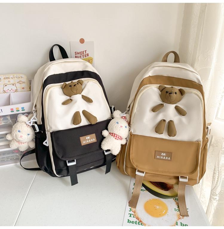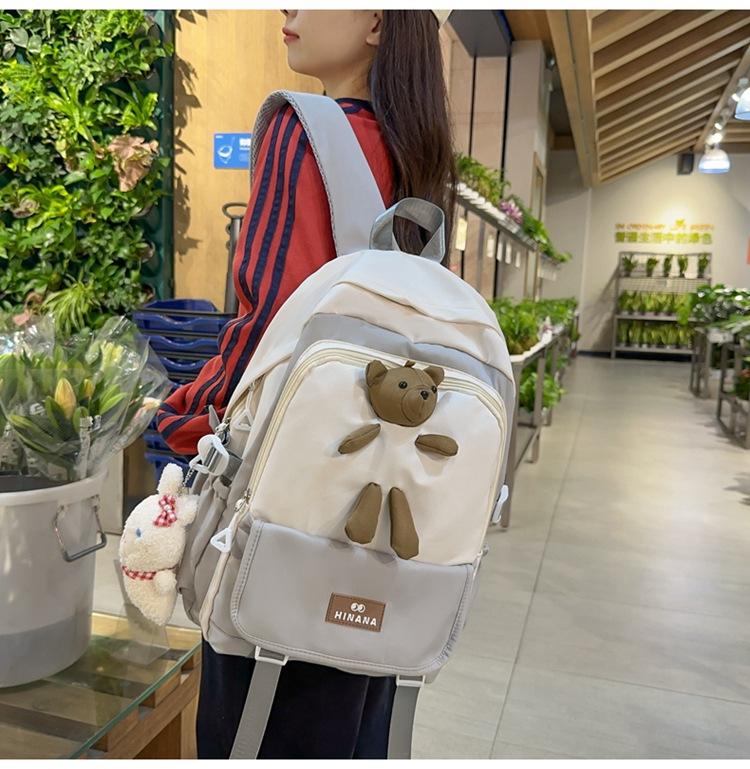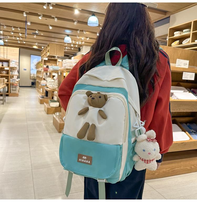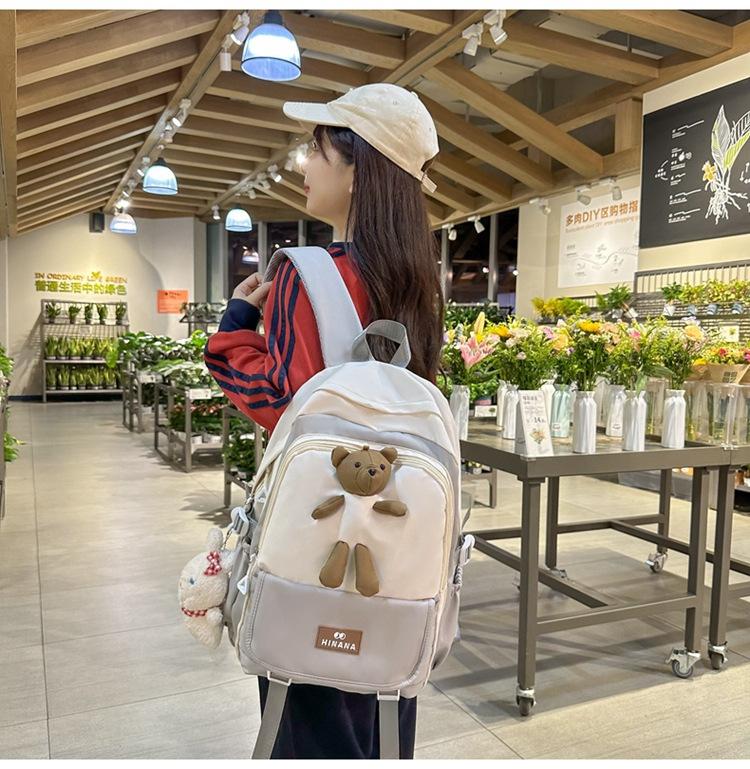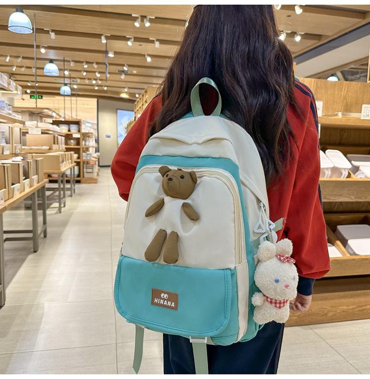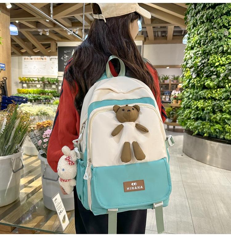 Mochila Ins Nuevo Estilo Coreano Color Contrastante Mochila Linda Moda Versátil Mochila Escuela Primaria Escuela Secundaria Niñas Oso Bolsa Escolar