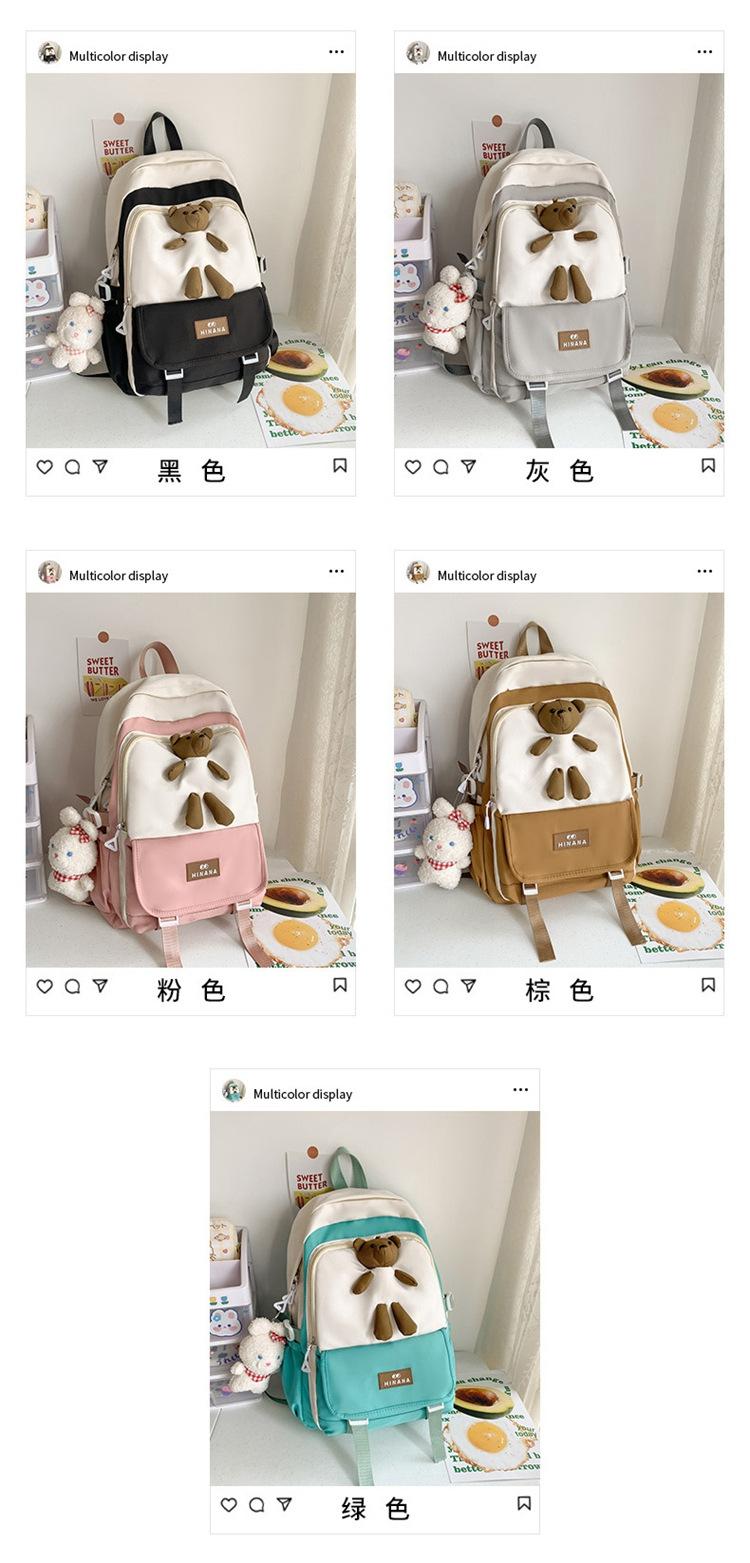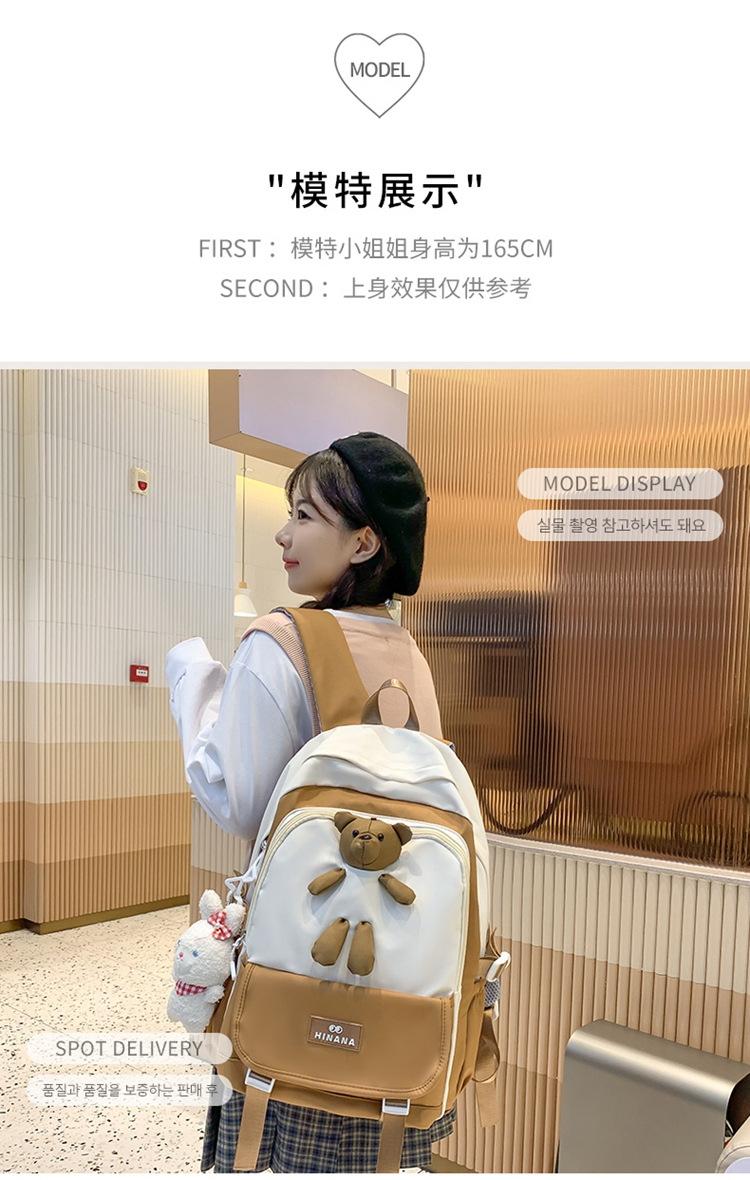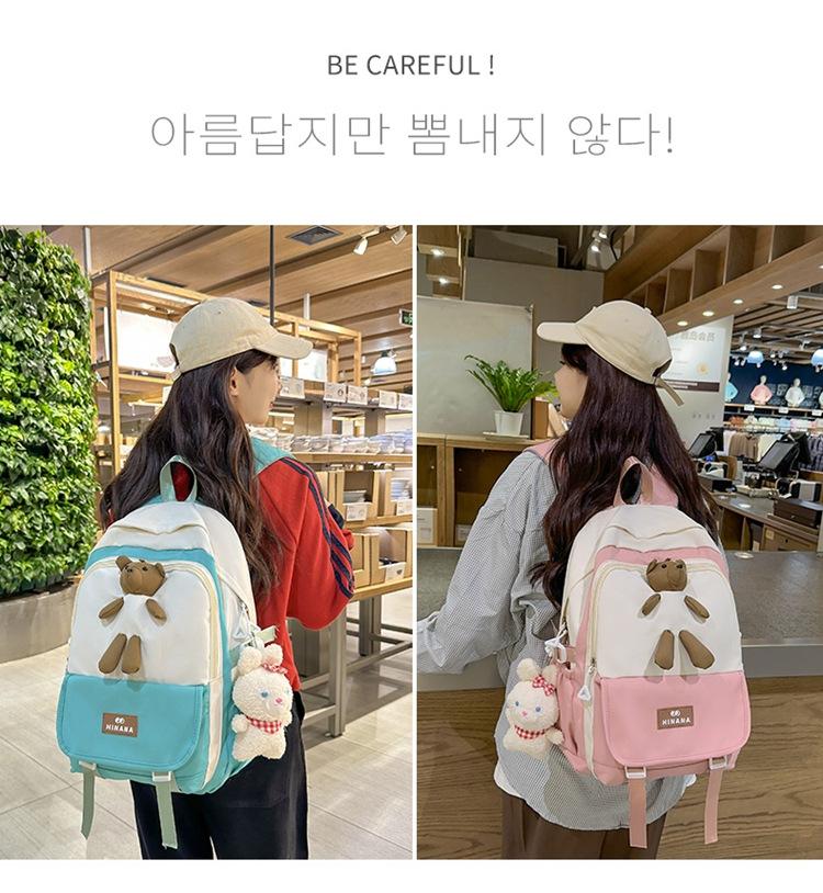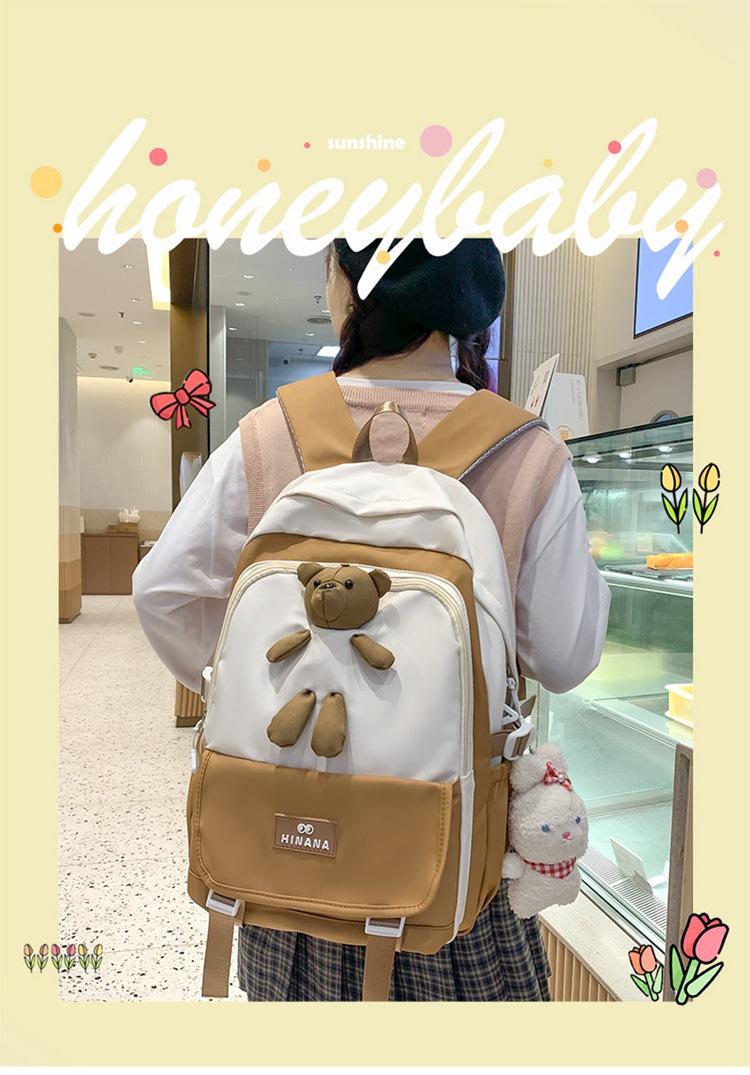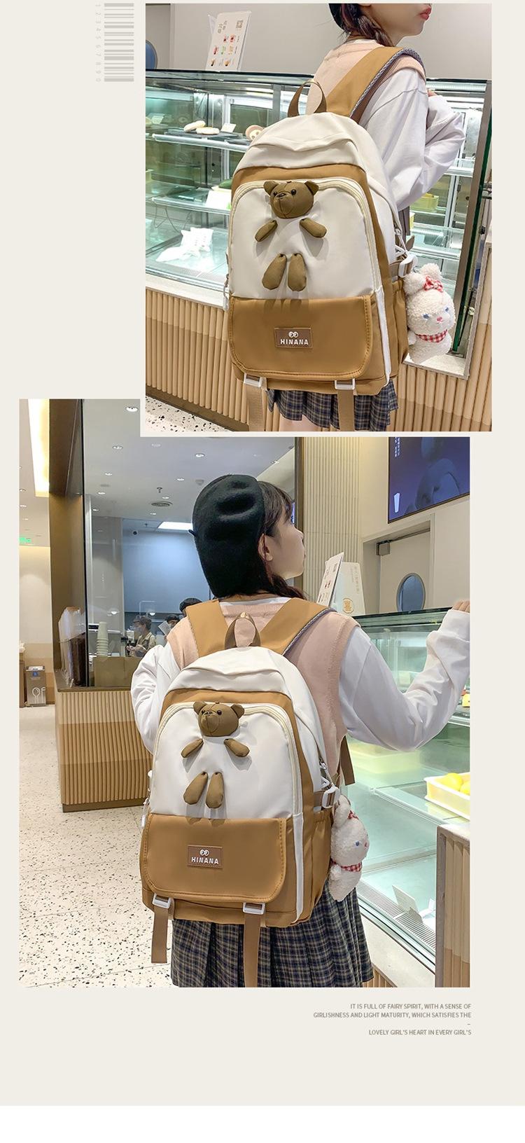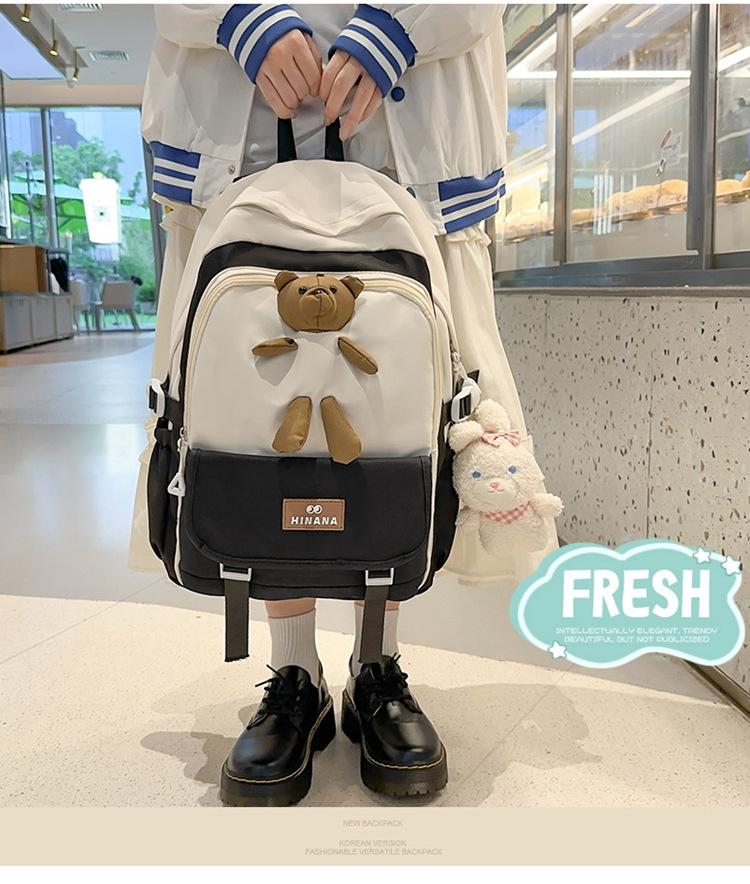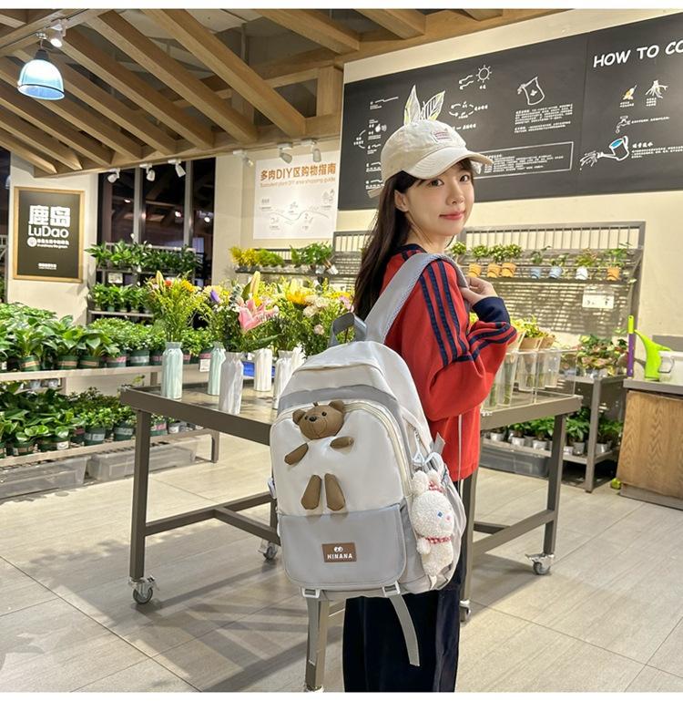 Mochila Ins Nuevo Estilo Coreano Color Contrastante Mochila Linda Moda Versátil Mochila Escuela Primaria Escuela Secundaria Niñas Oso Bolsa Escolar