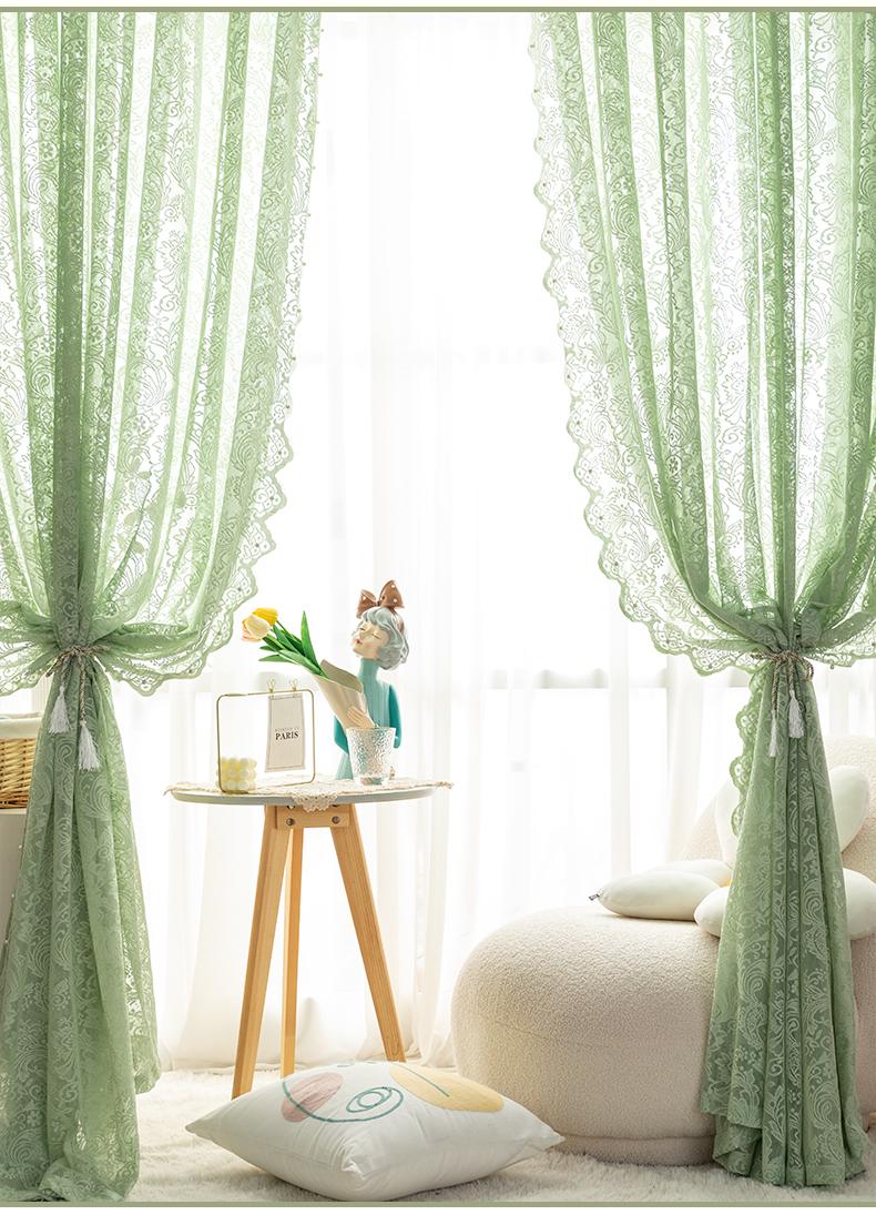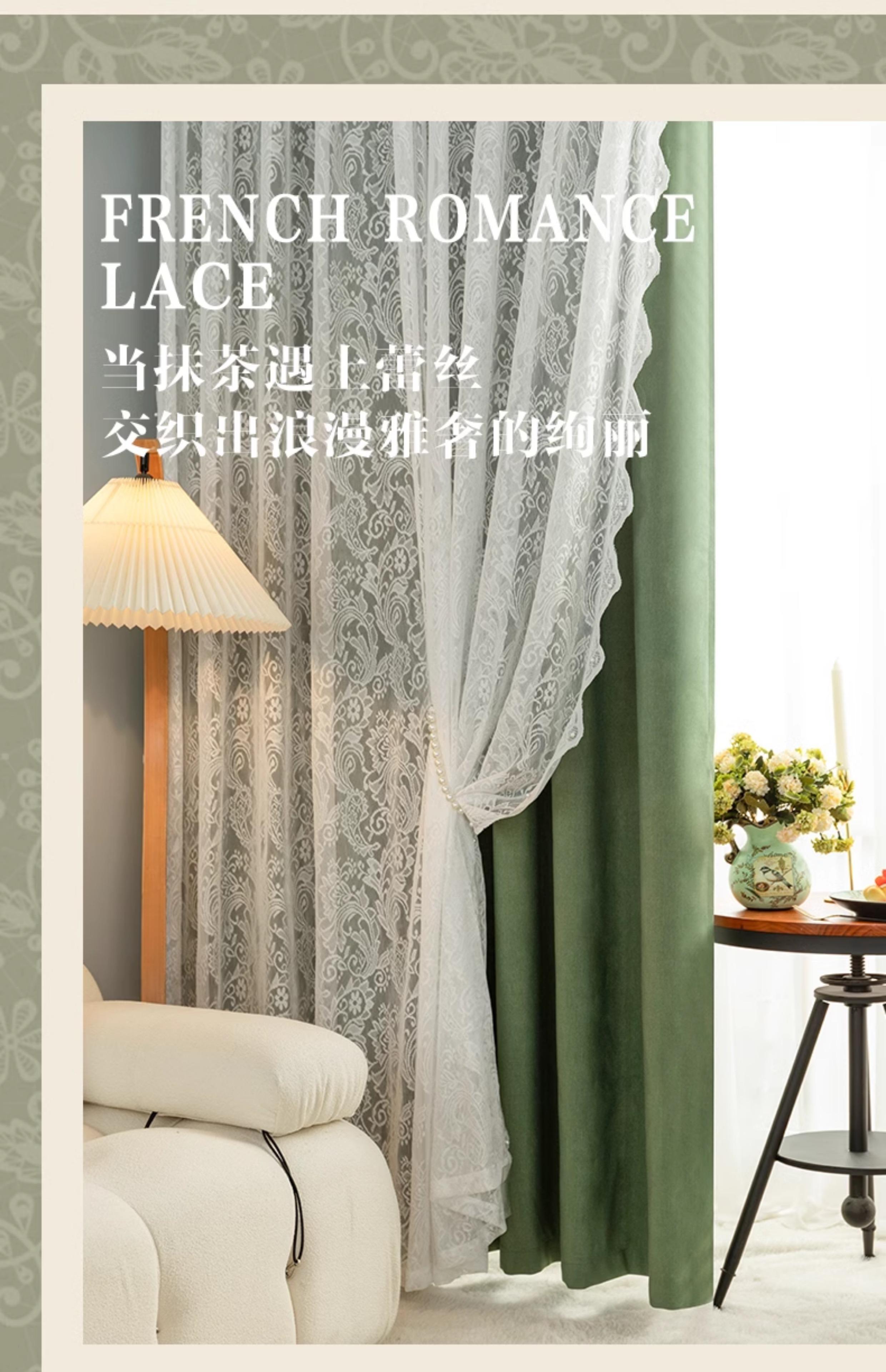 Cortina retro francesa, cortina de encaje, cortina para sala de estar, dormitorio, ventanal, pantalla, cortina divisoria sin perforaciones