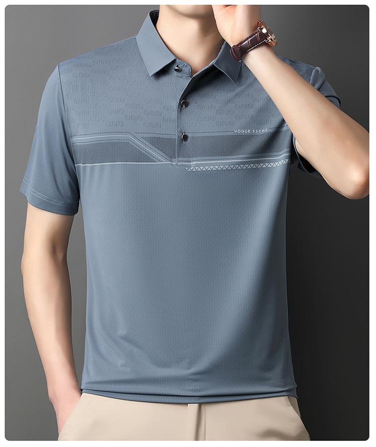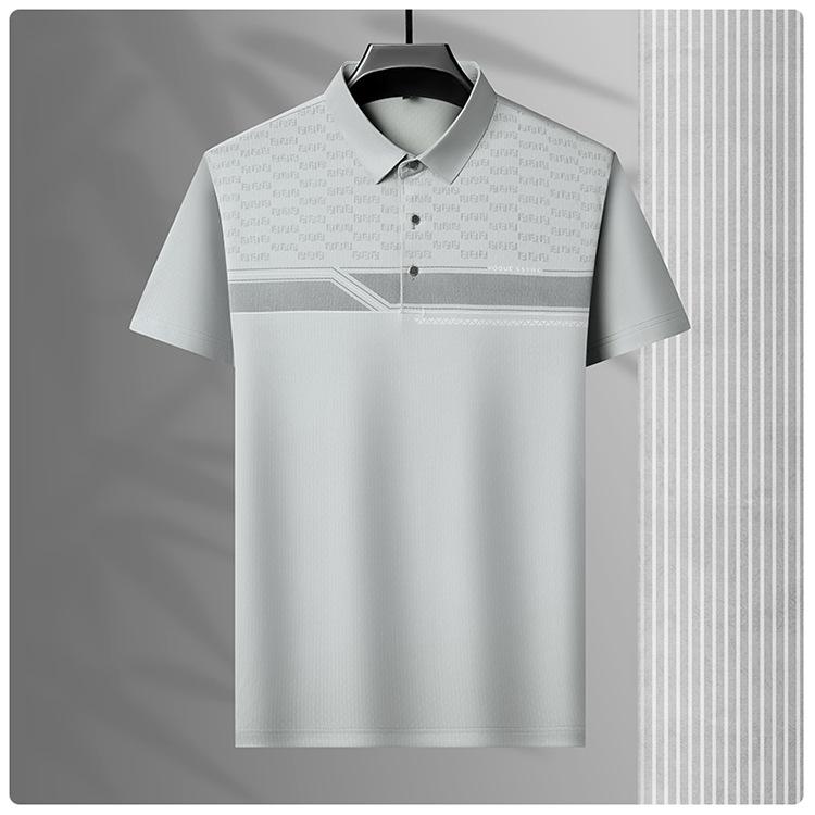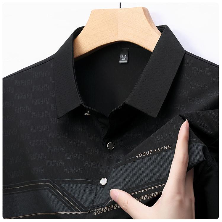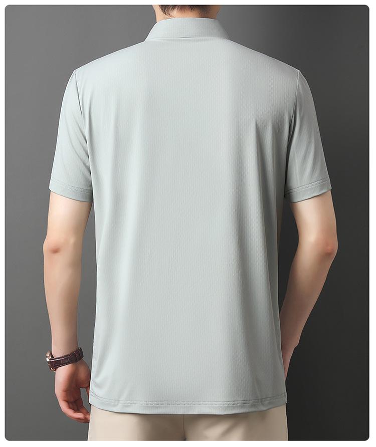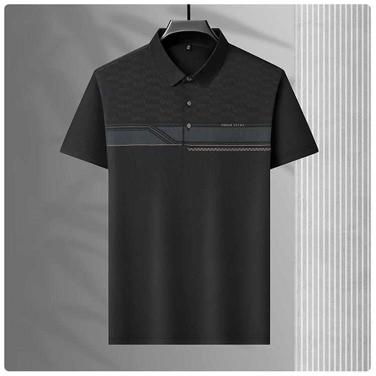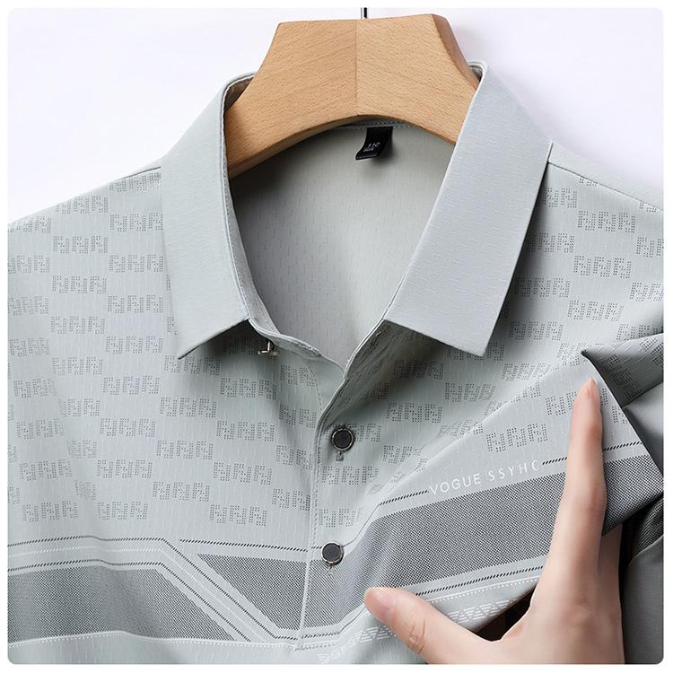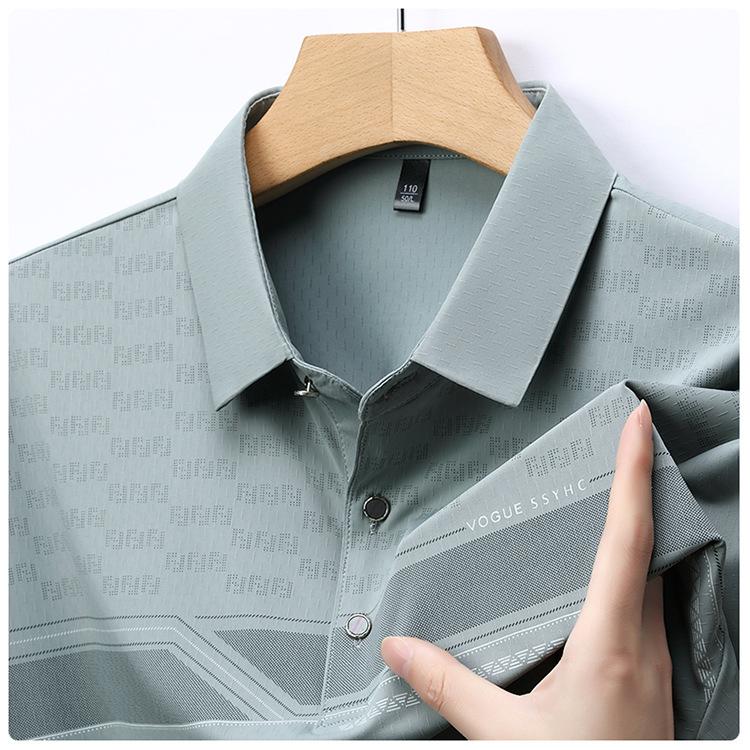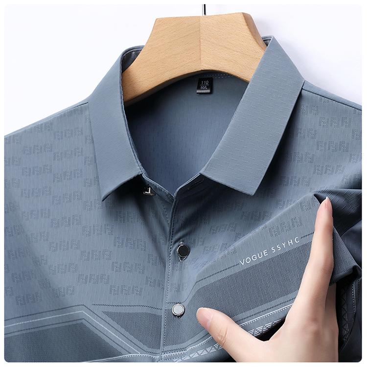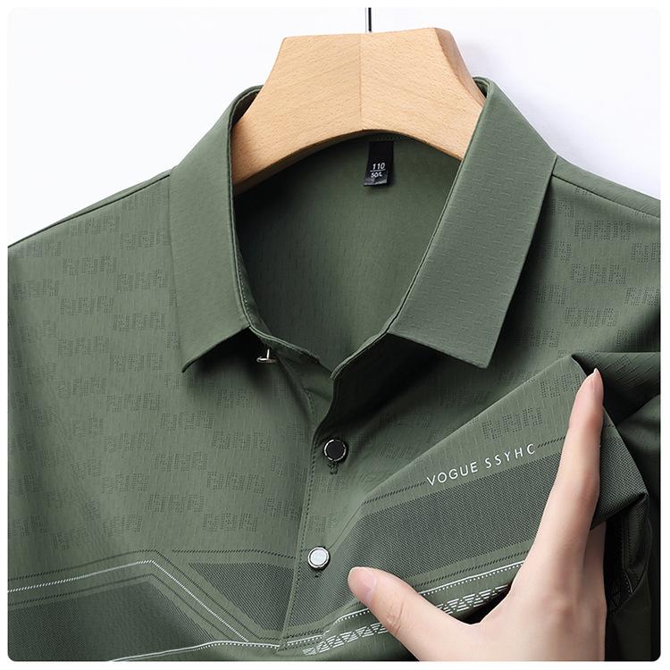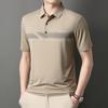 Polo de manga corta con solapa de seda helada para hombre, camiseta informal de negocios de secado rápido, de seda helada, novedad de verano de 2025