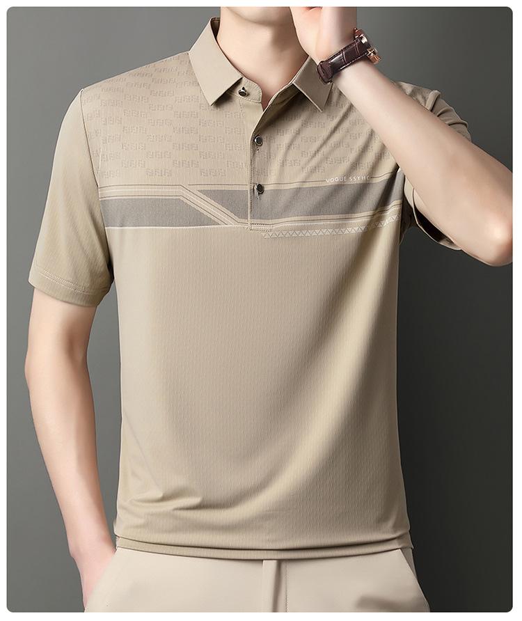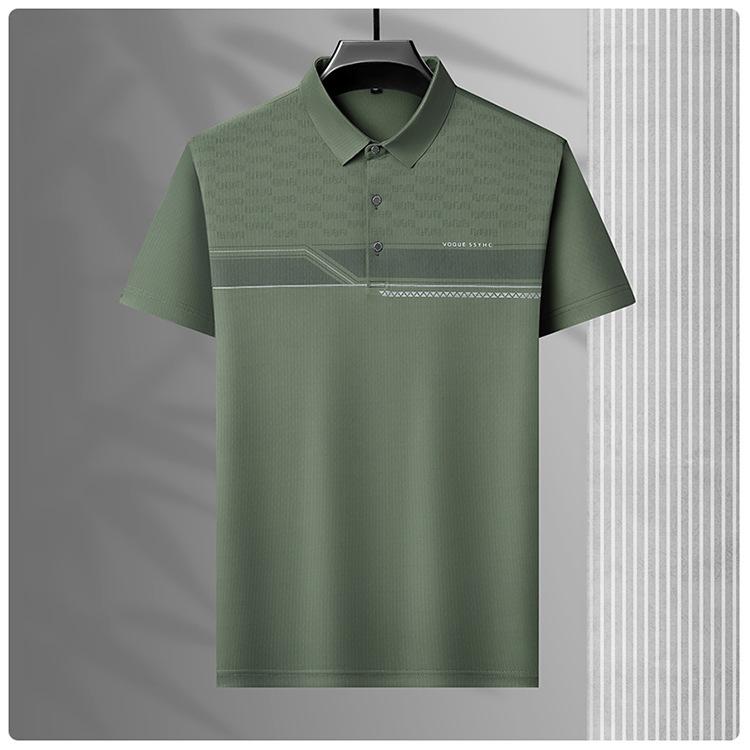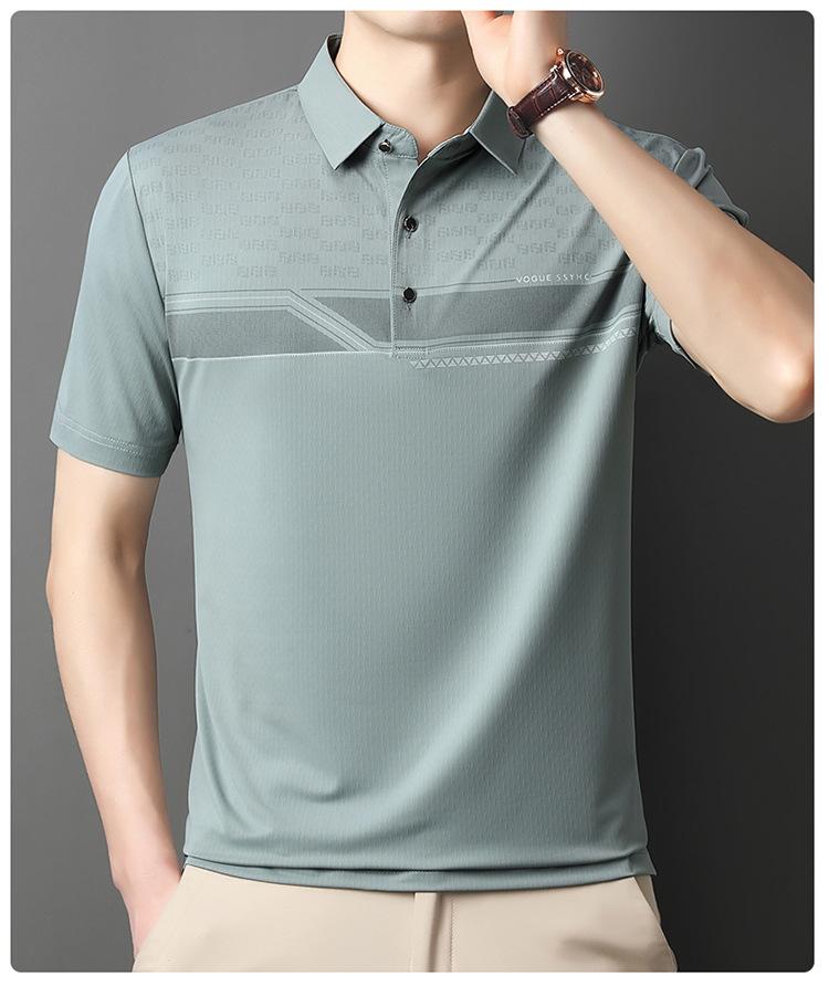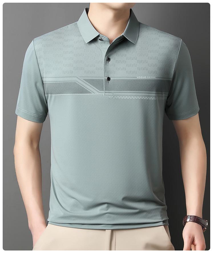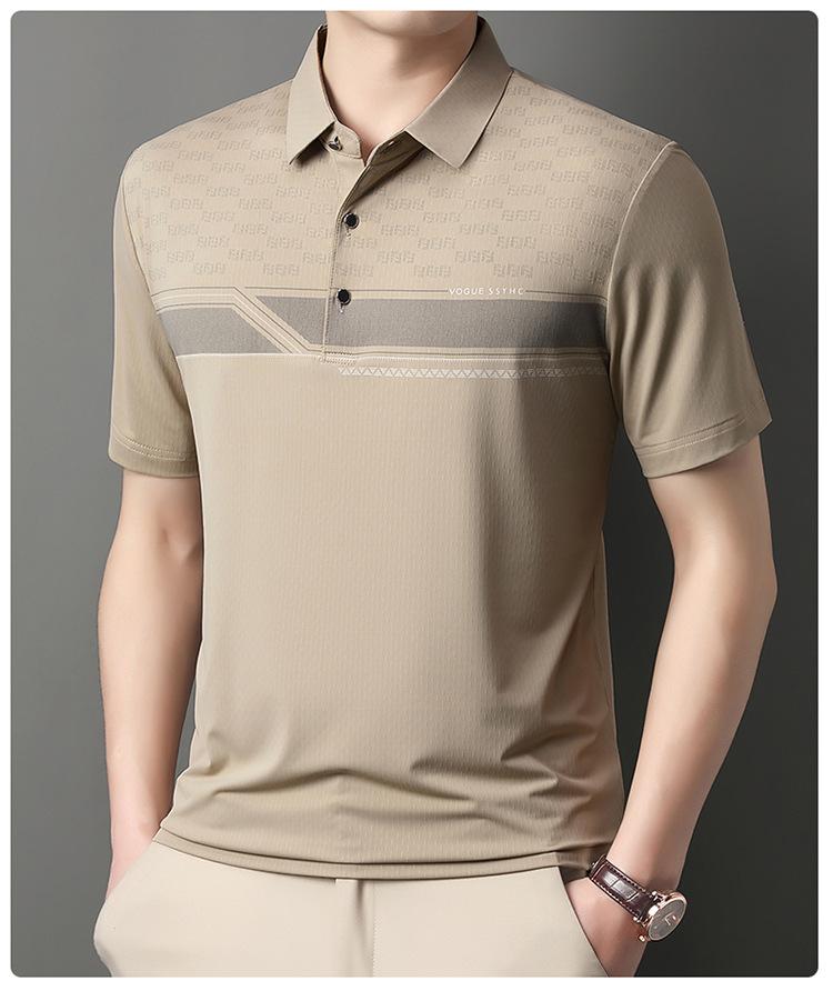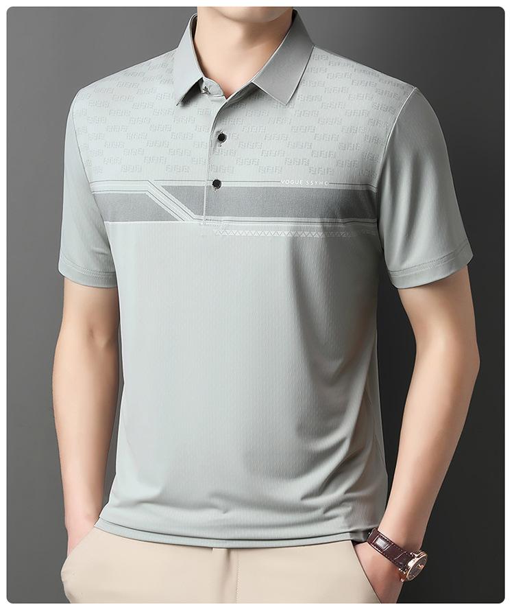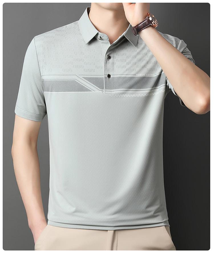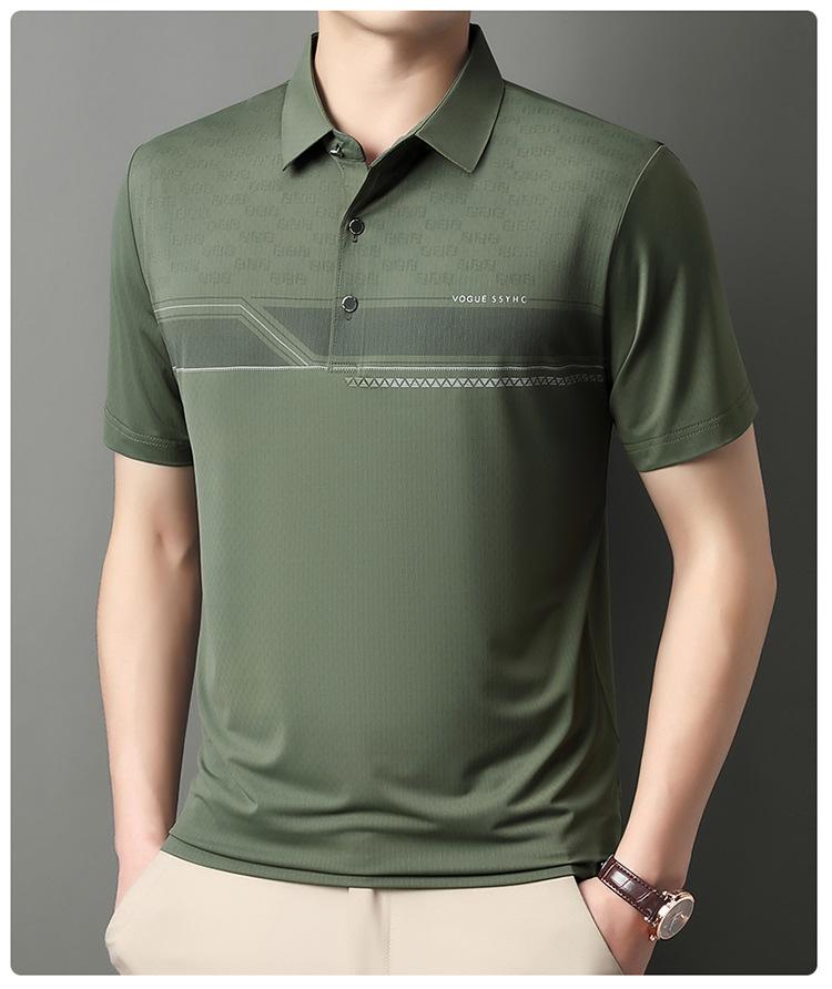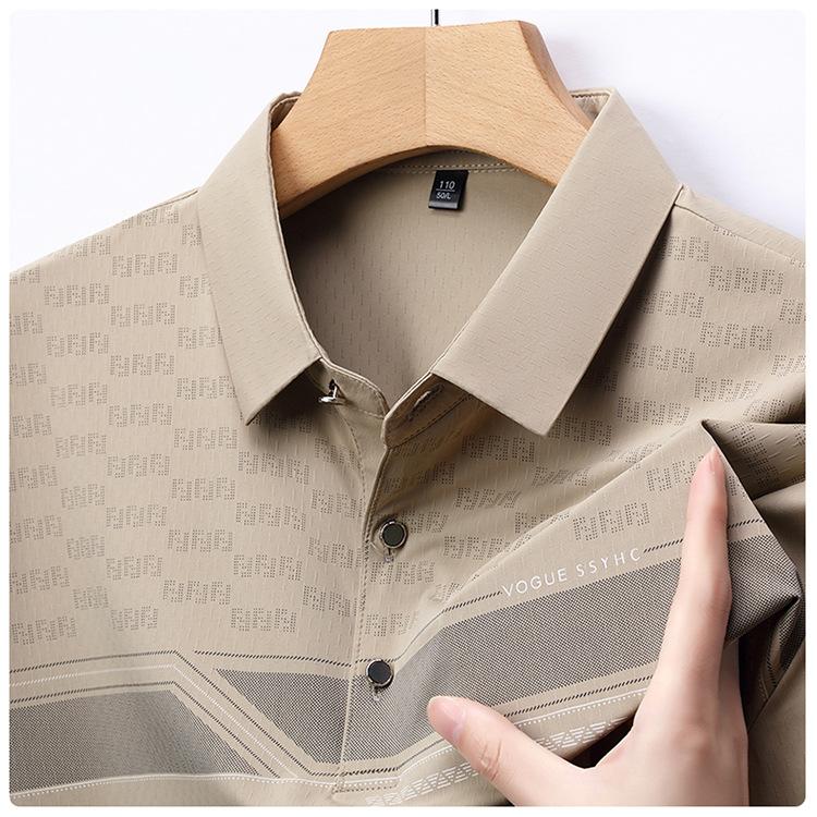 Polo de manga corta con solapa de seda helada para hombre, camiseta informal de negocios de secado rápido, de seda helada, novedad de verano de 2025