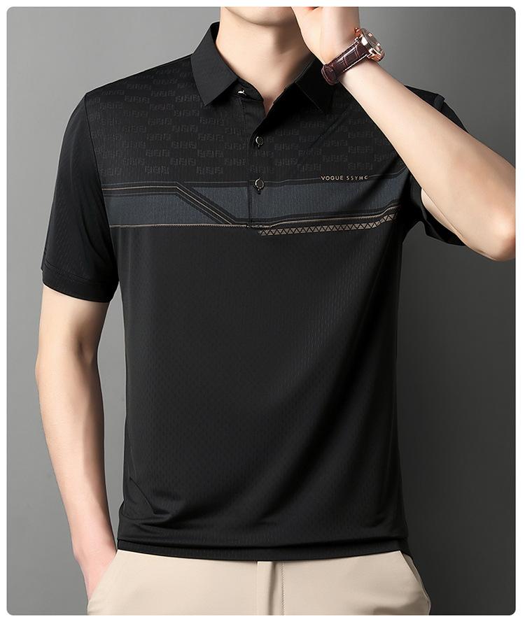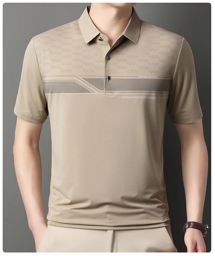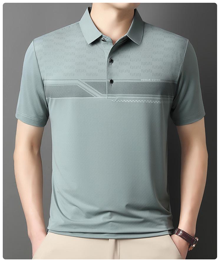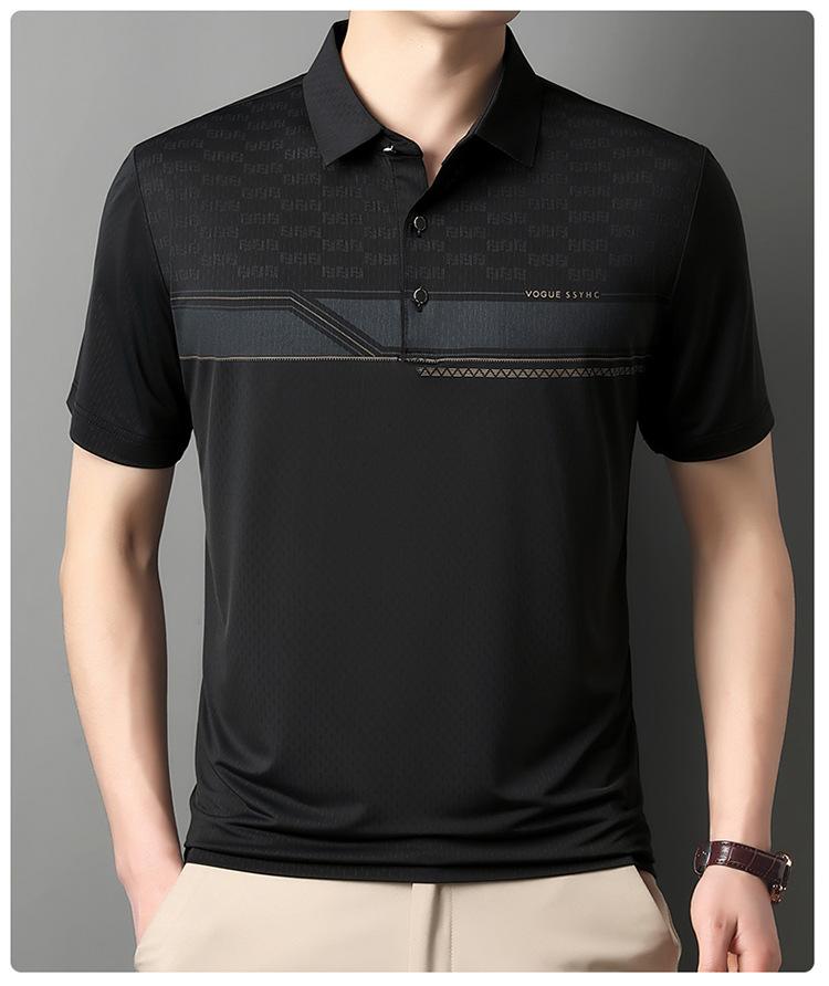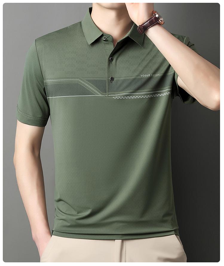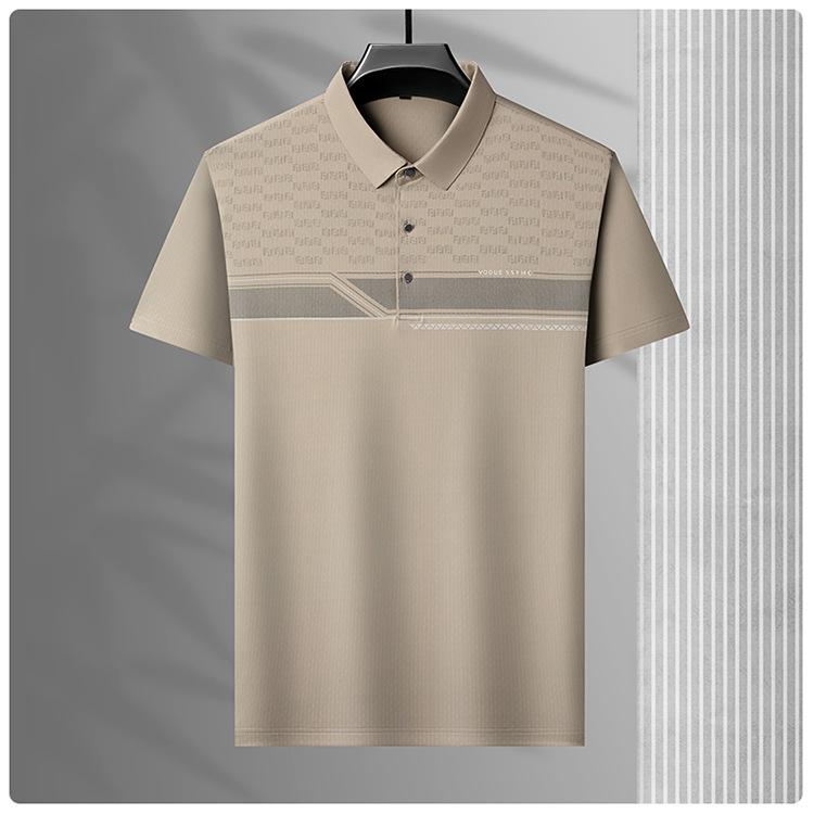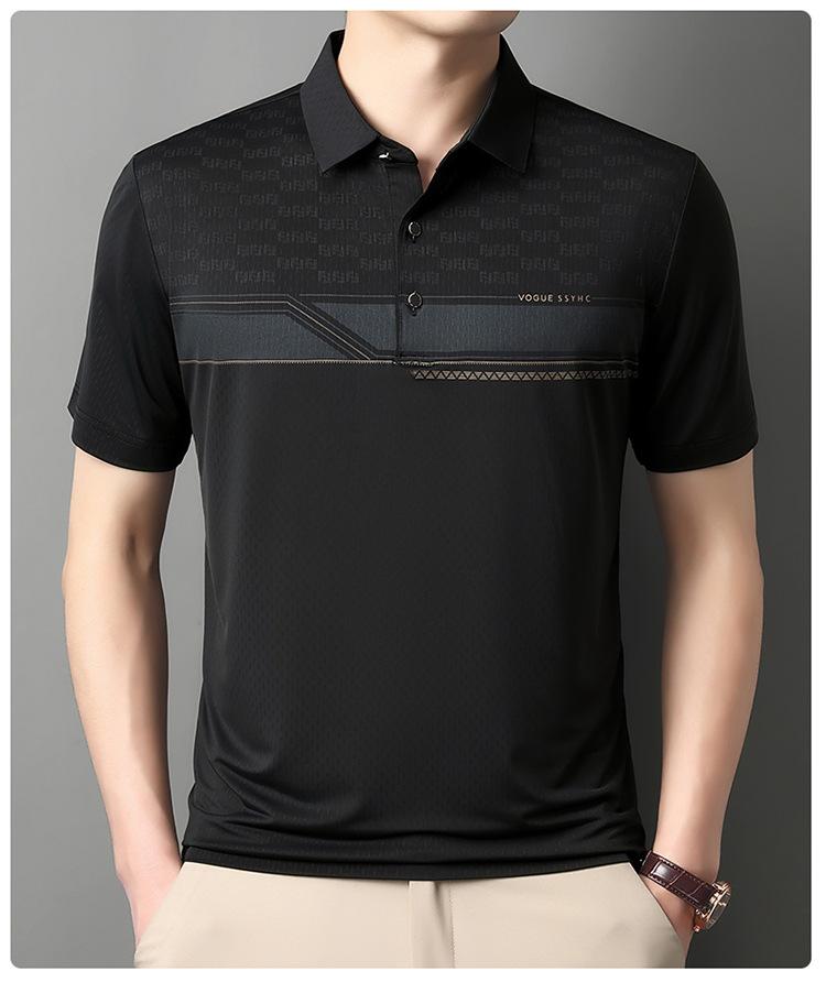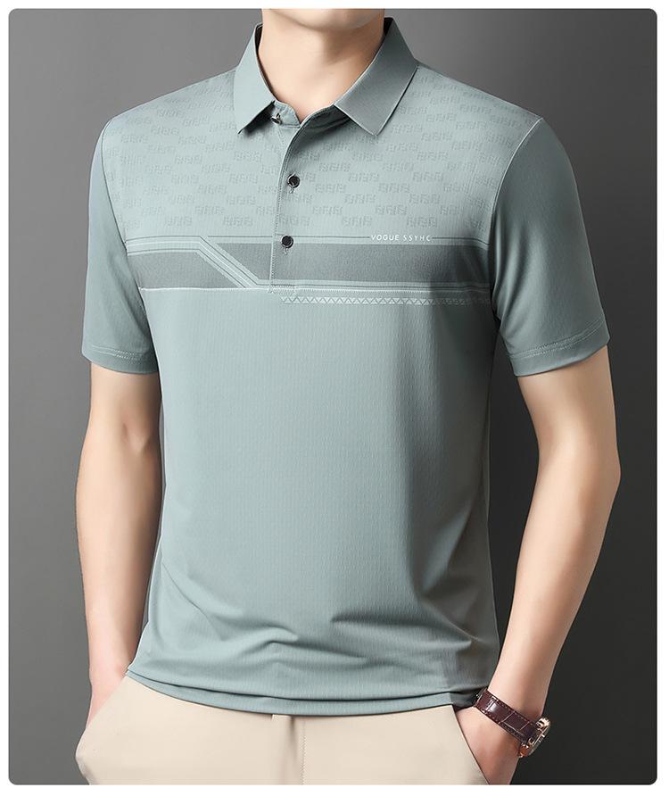 Polo de manga corta con solapa de seda helada para hombre, camiseta informal de negocios de secado rápido, de seda helada, novedad de verano de 2025