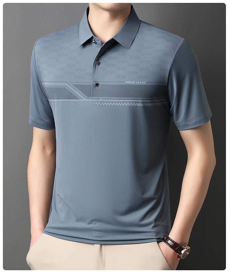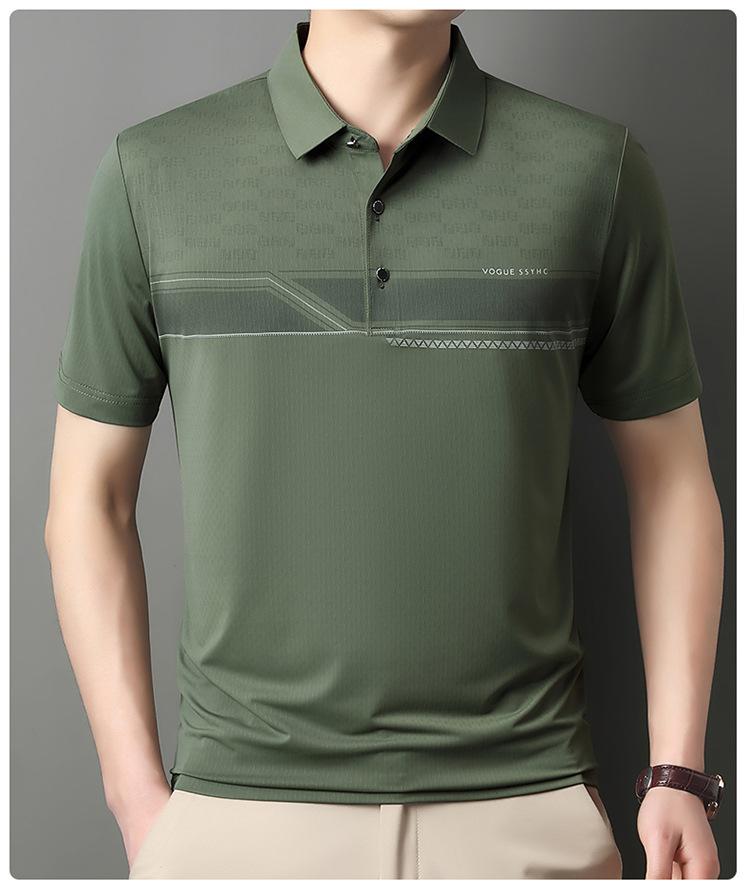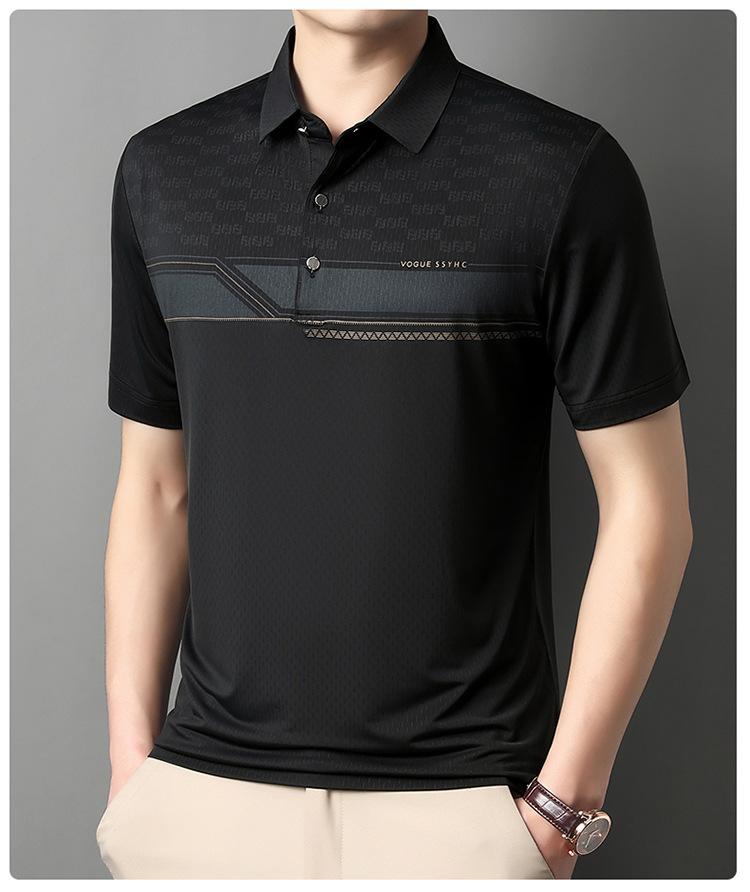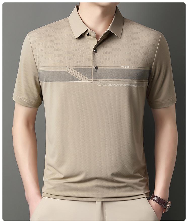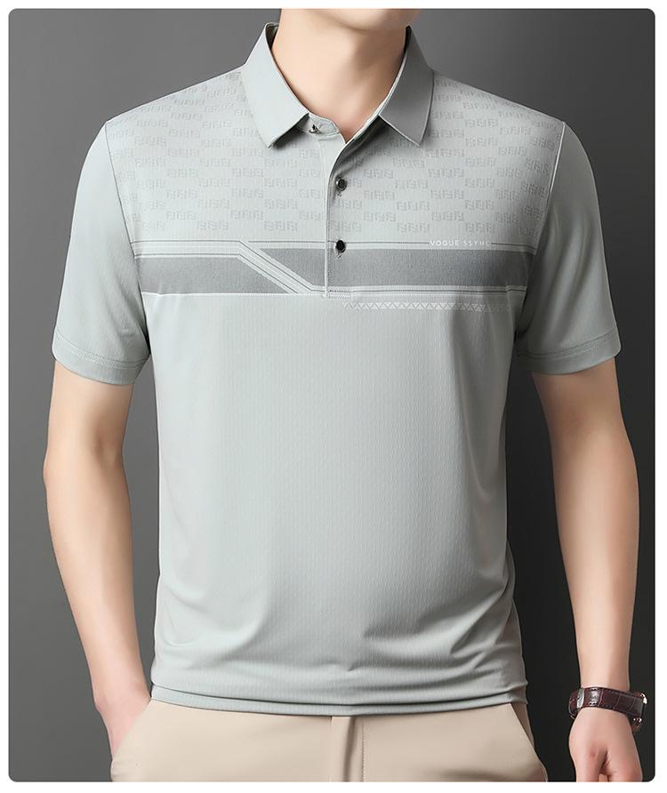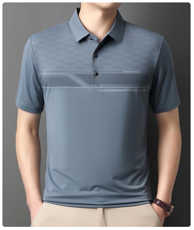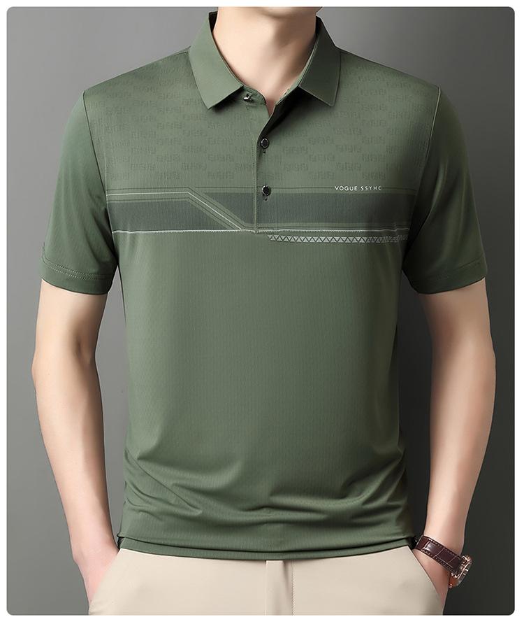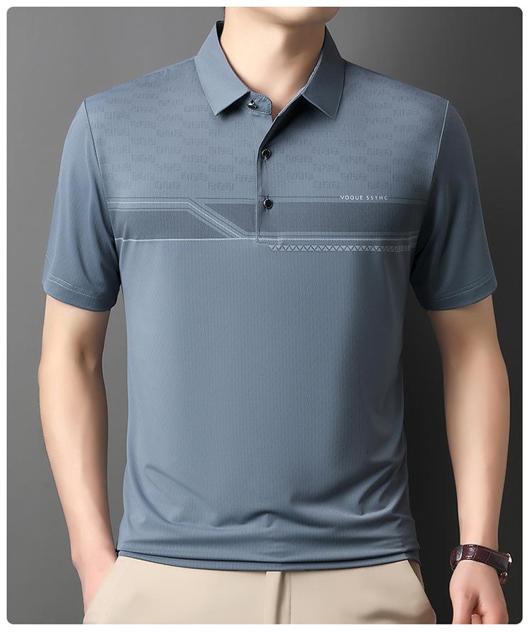 Polo de manga corta con solapa de seda helada para hombre, camiseta informal de negocios de secado rápido, de seda helada, novedad de verano de 2025
