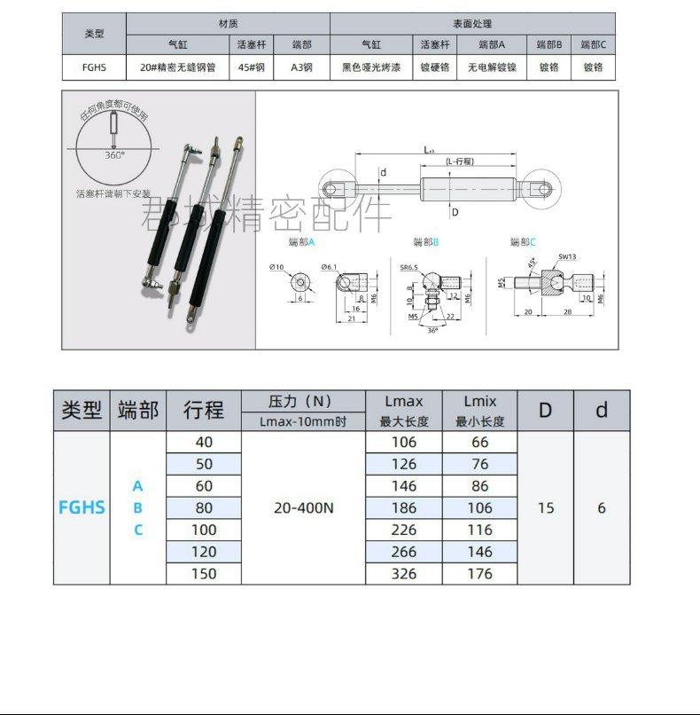 Soporte de resorte de vapor de nitrógeno FHL56-B-40/50/60/80/100/120/150