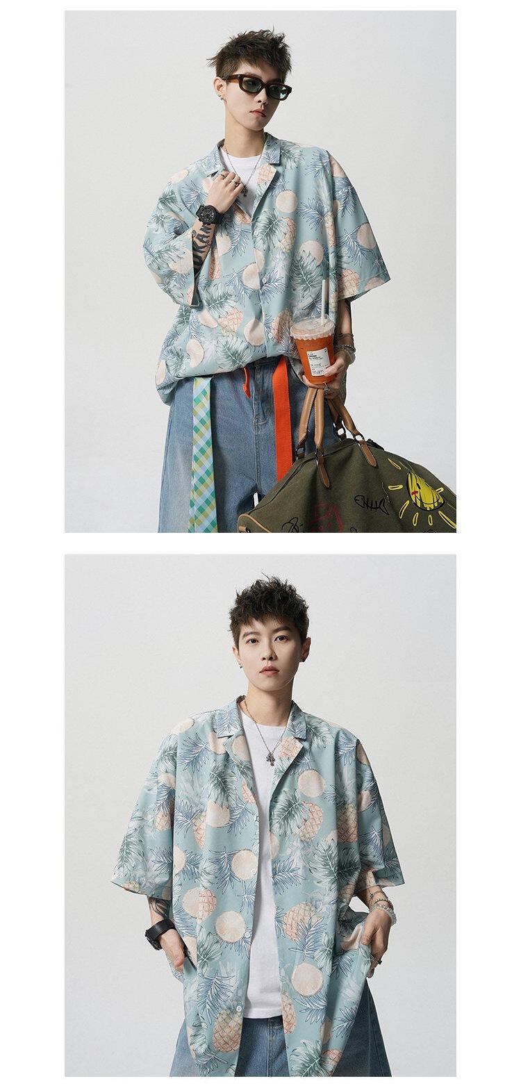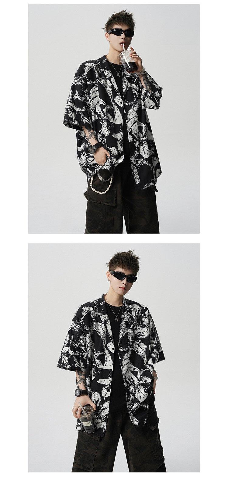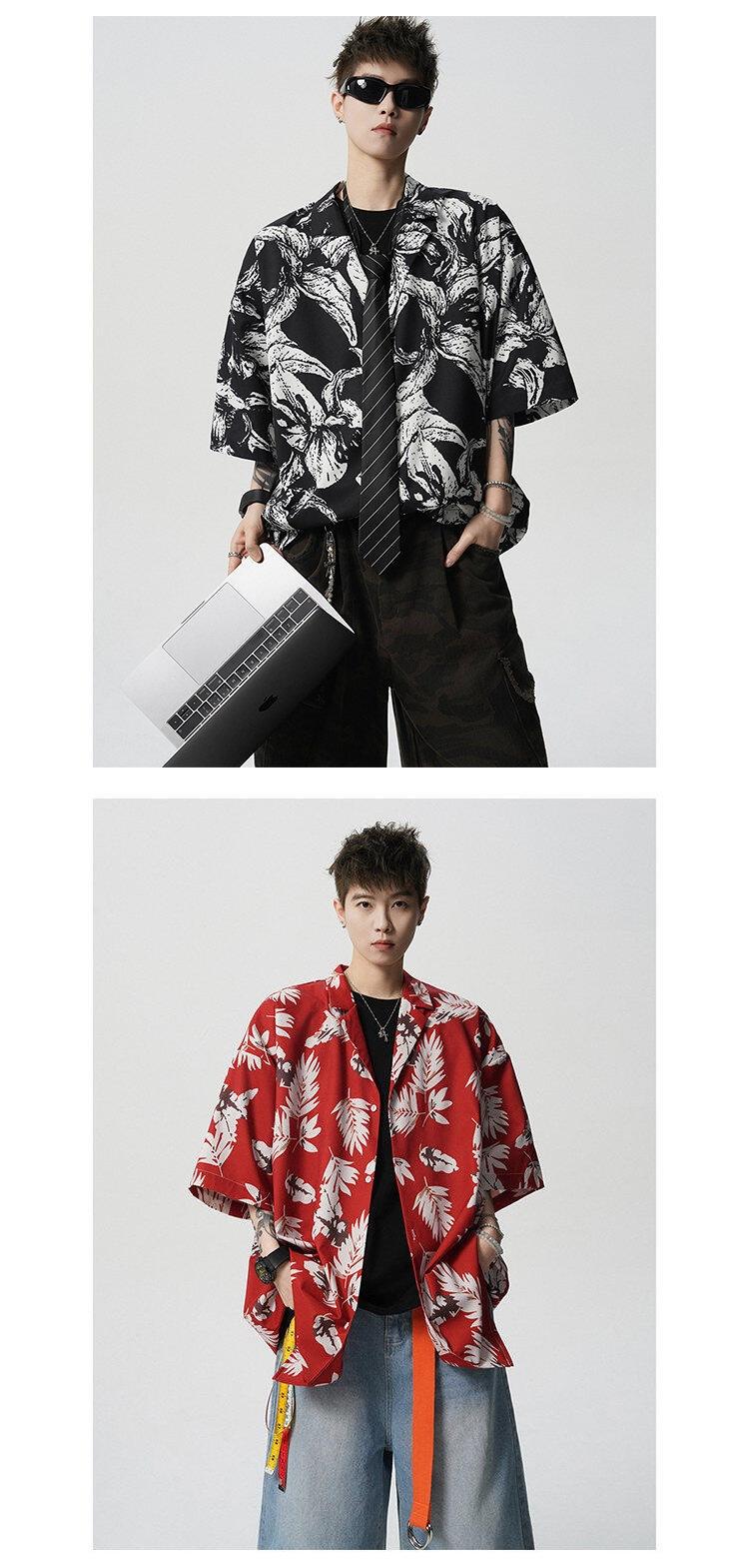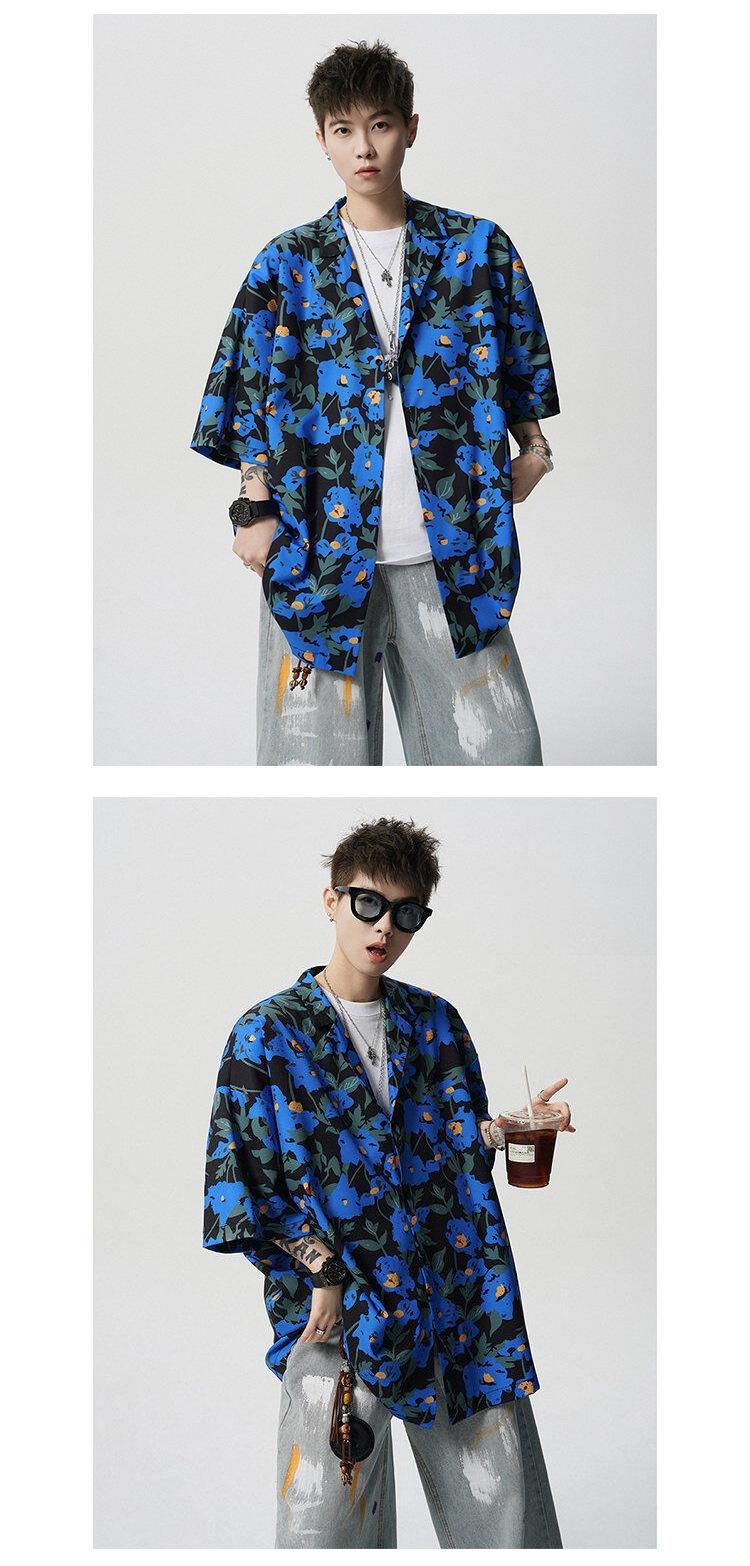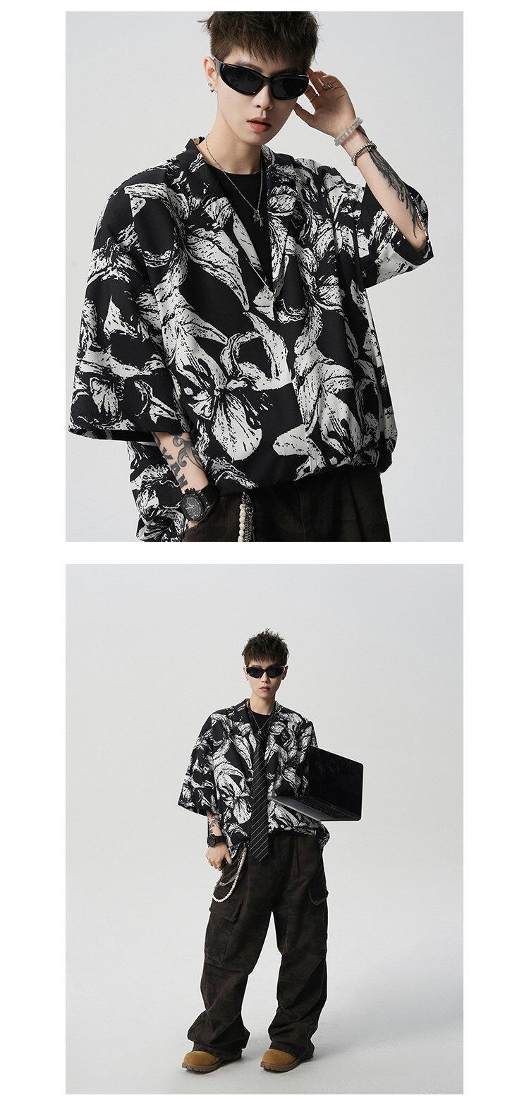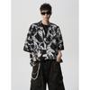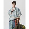 8XL-M Camiseta Fresca de Seda de Hielo Camiseta Drapeada Transpirable Patrón Retro Holgada para Hombre Manga Corta