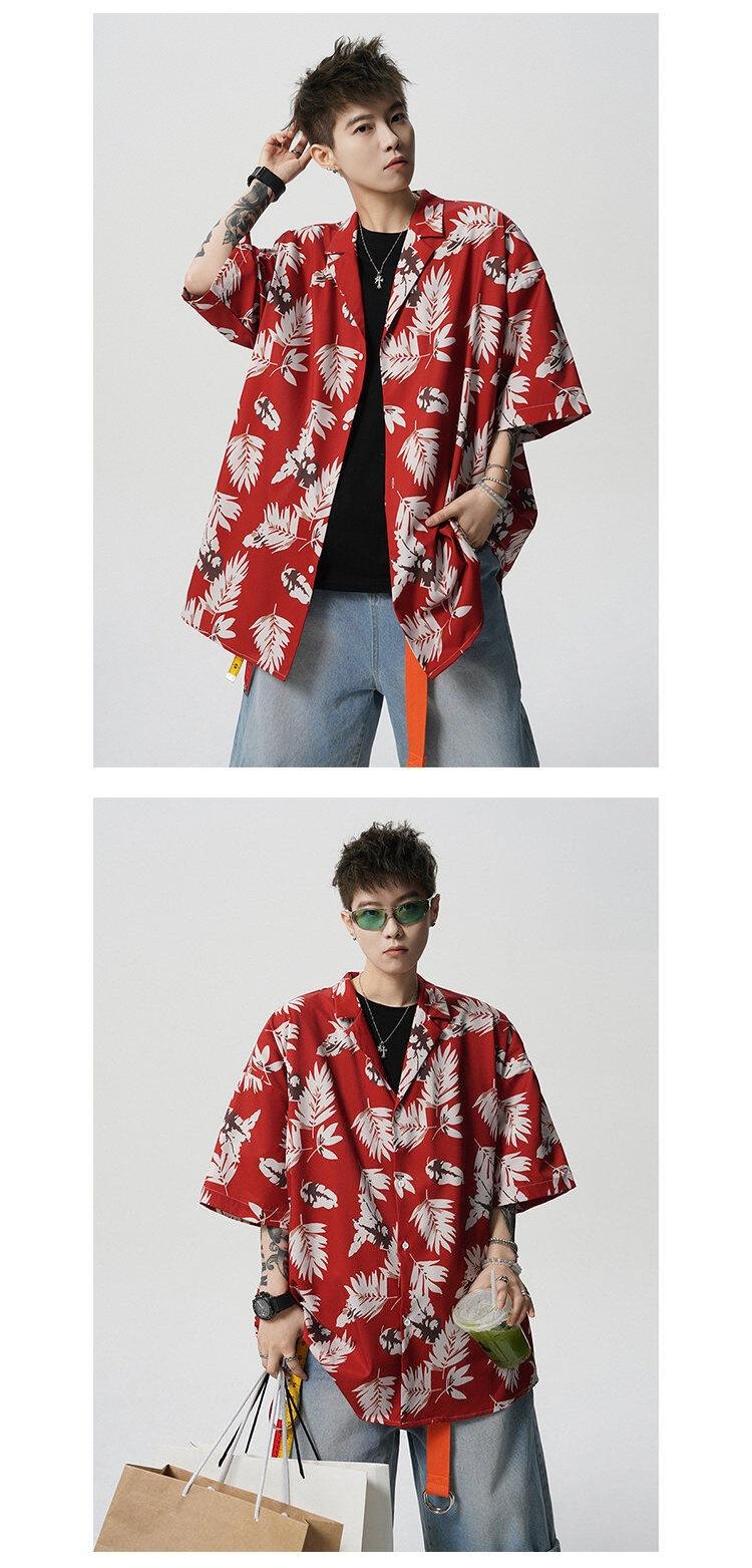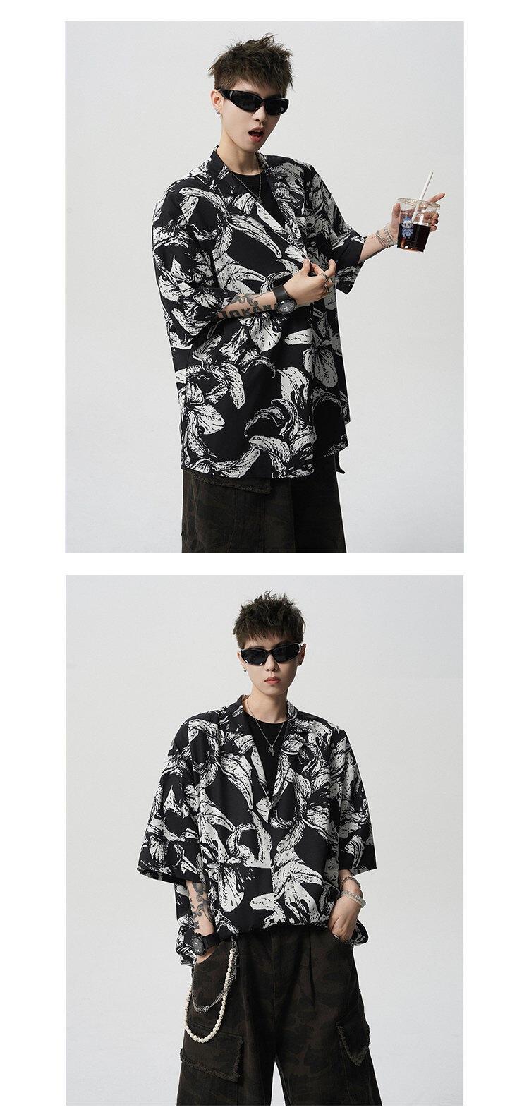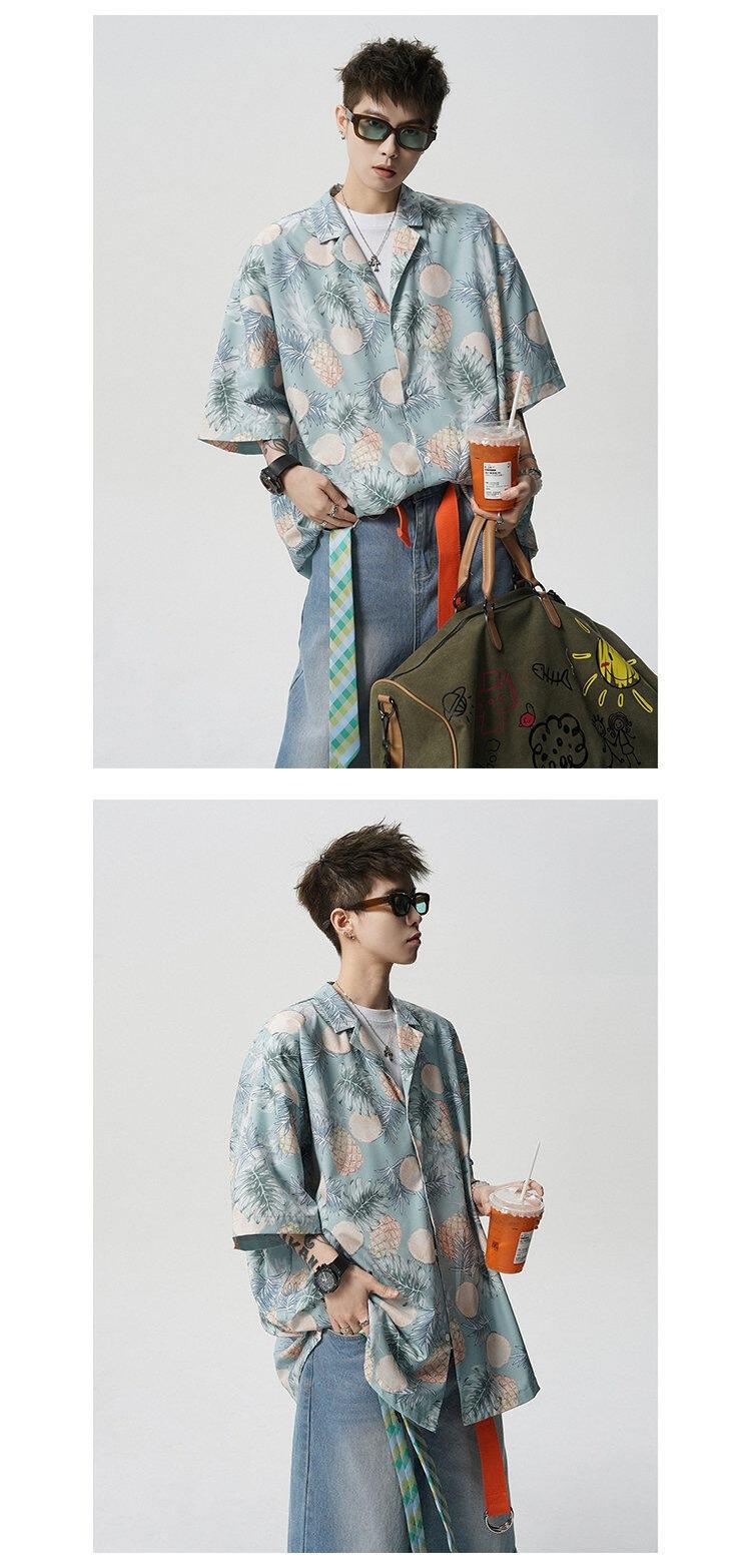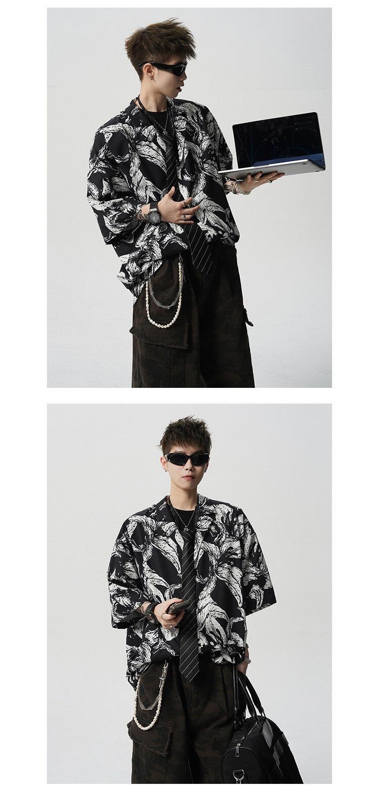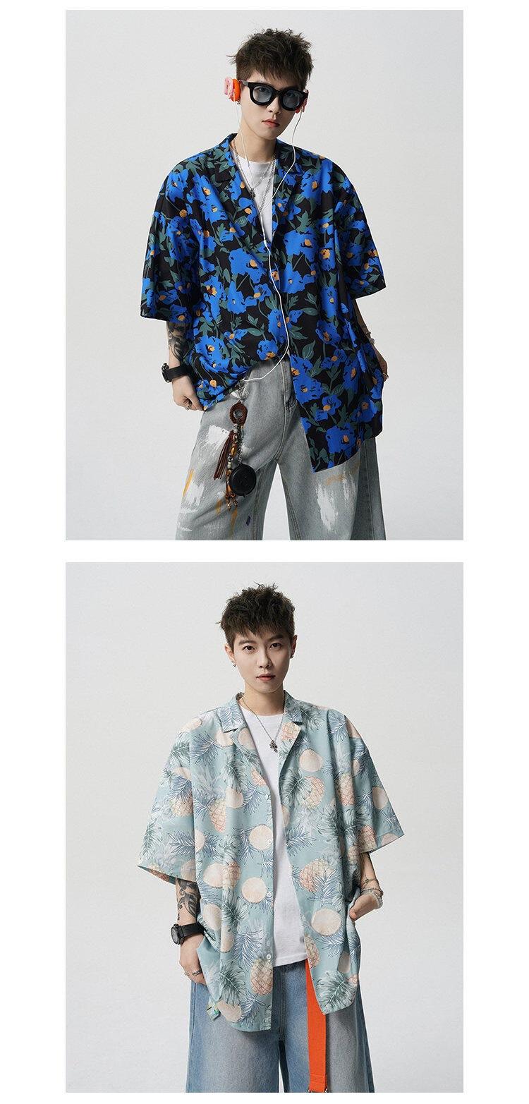 8XL-M Camiseta Fresca de Seda de Hielo Camiseta Drapeada Transpirable Patrón Retro Holgada para Hombre Manga Corta
