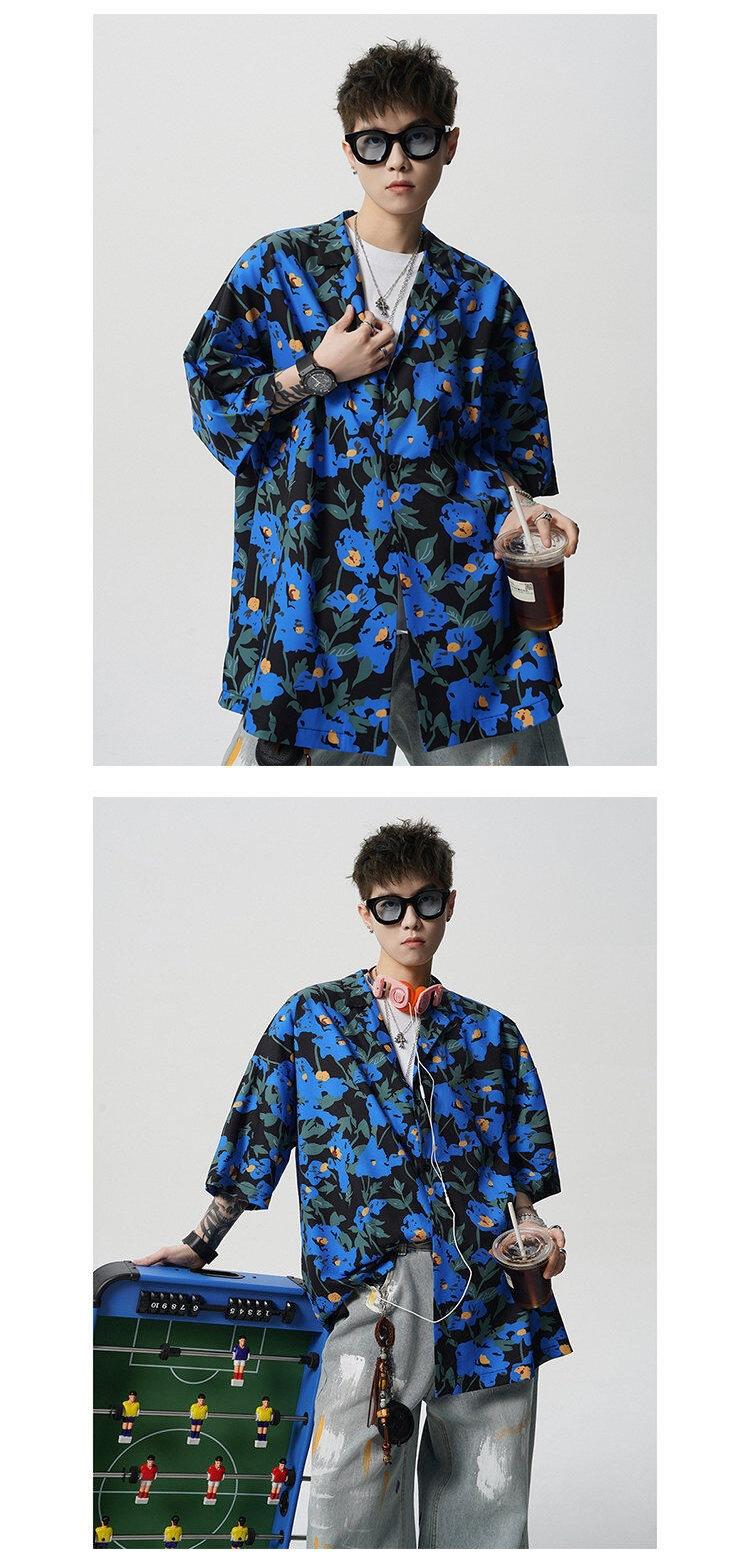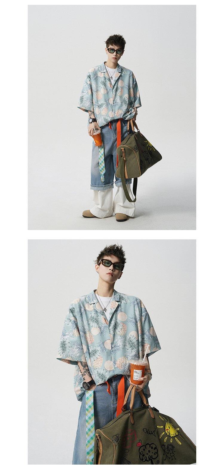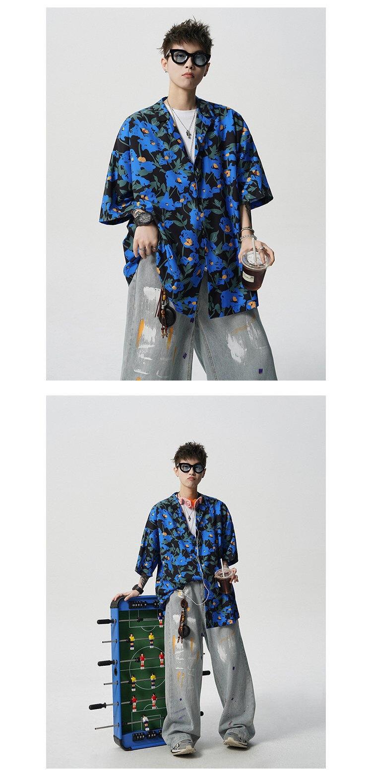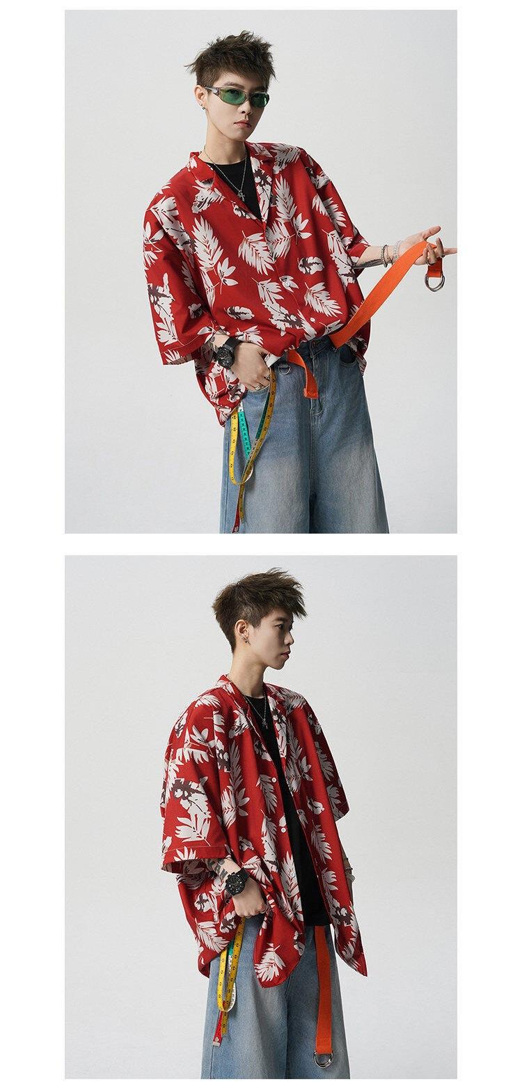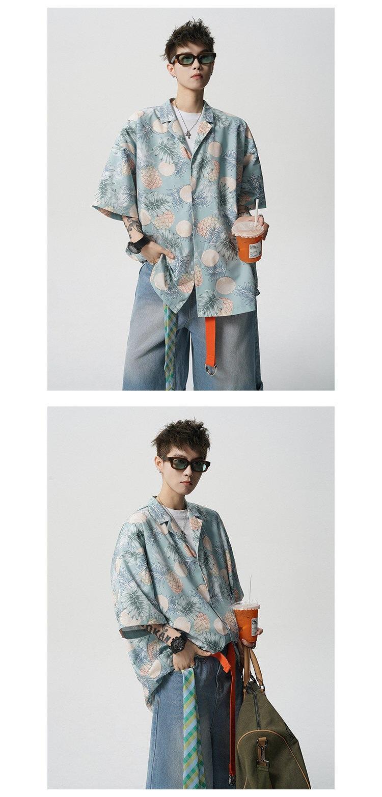 8XL-M Camiseta Fresca de Seda de Hielo Camiseta Drapeada Transpirable Patrón Retro Holgada para Hombre Manga Corta