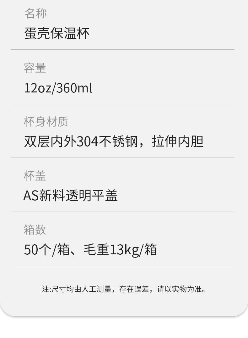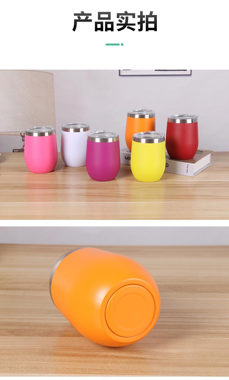Taza de cáscara de huevo de 12 oz transfronteriza de acero inoxidable 304 de doble capa, taza termo al vacío, copa de vino tinto en forma de U, taza de vientre swig