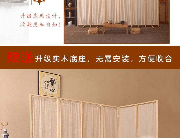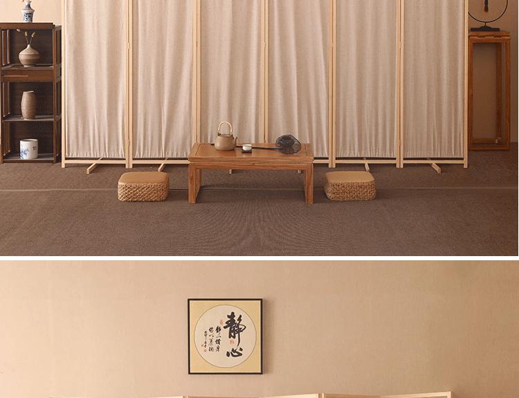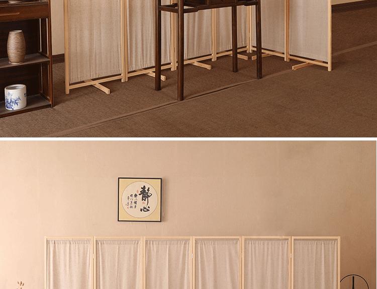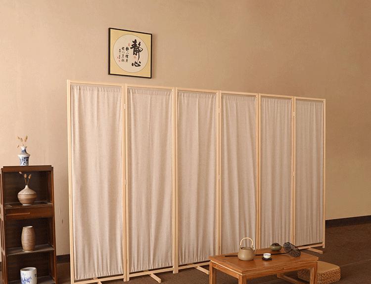 Biombo de tela de lino y madera maciza chino al por mayor para dividir el hogar, la sala de estar, la entrada, tela pastoral moderna y sencilla.