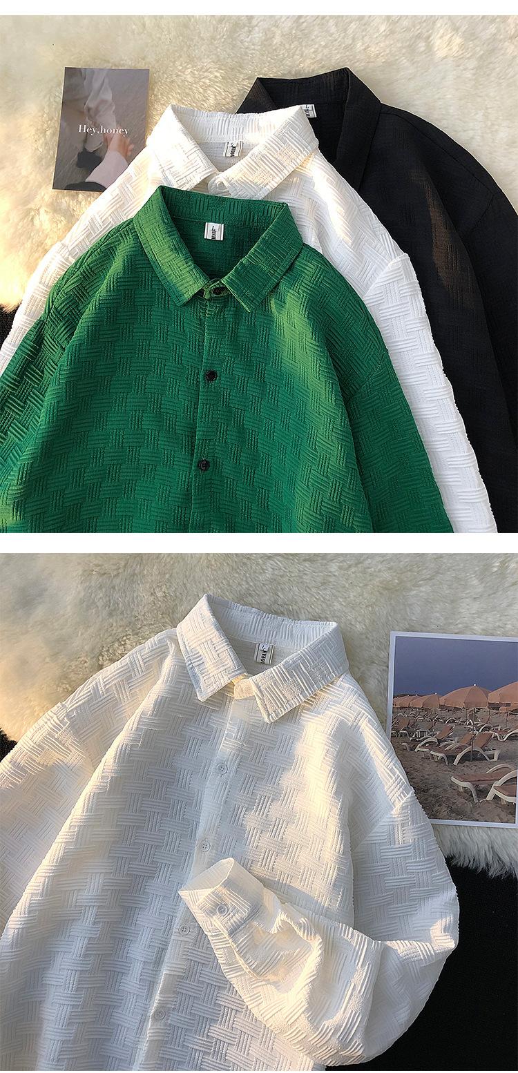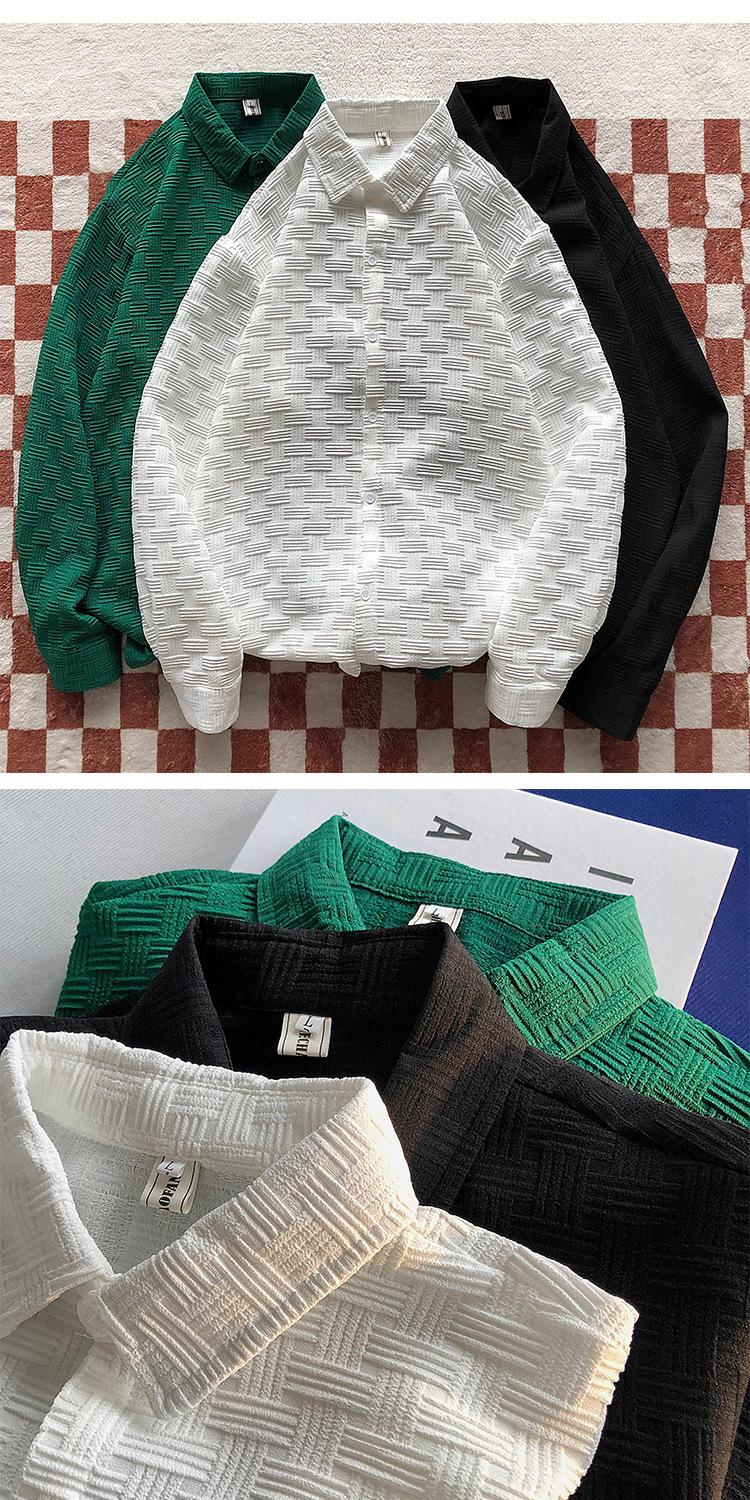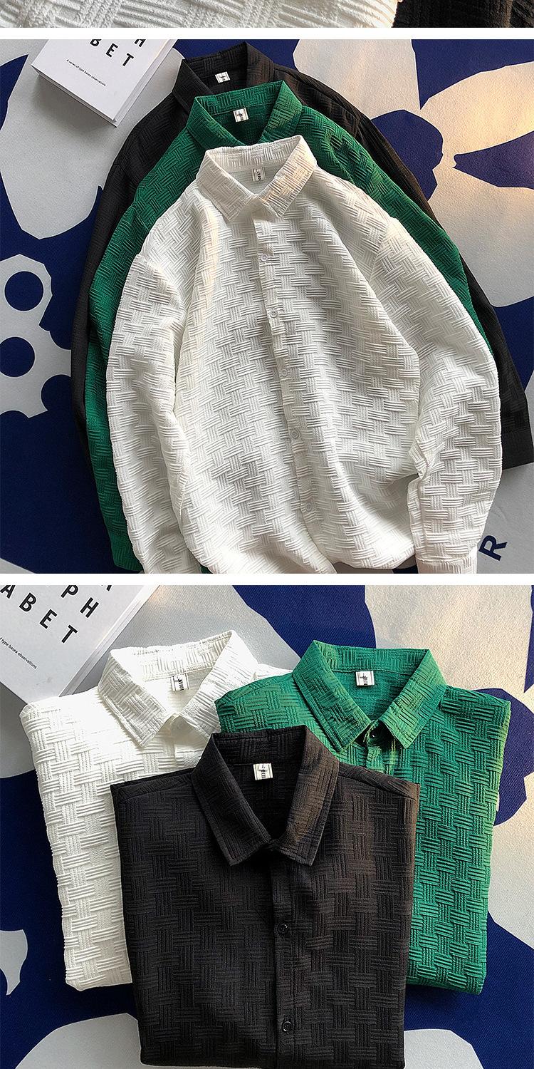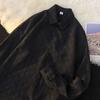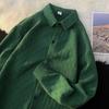 Camisa de manga larga tipo gofre para hombre, de primavera y otoño, holgada, sin planchado, informal, negra, americana, con solapa, para otoño