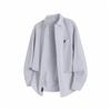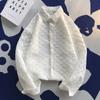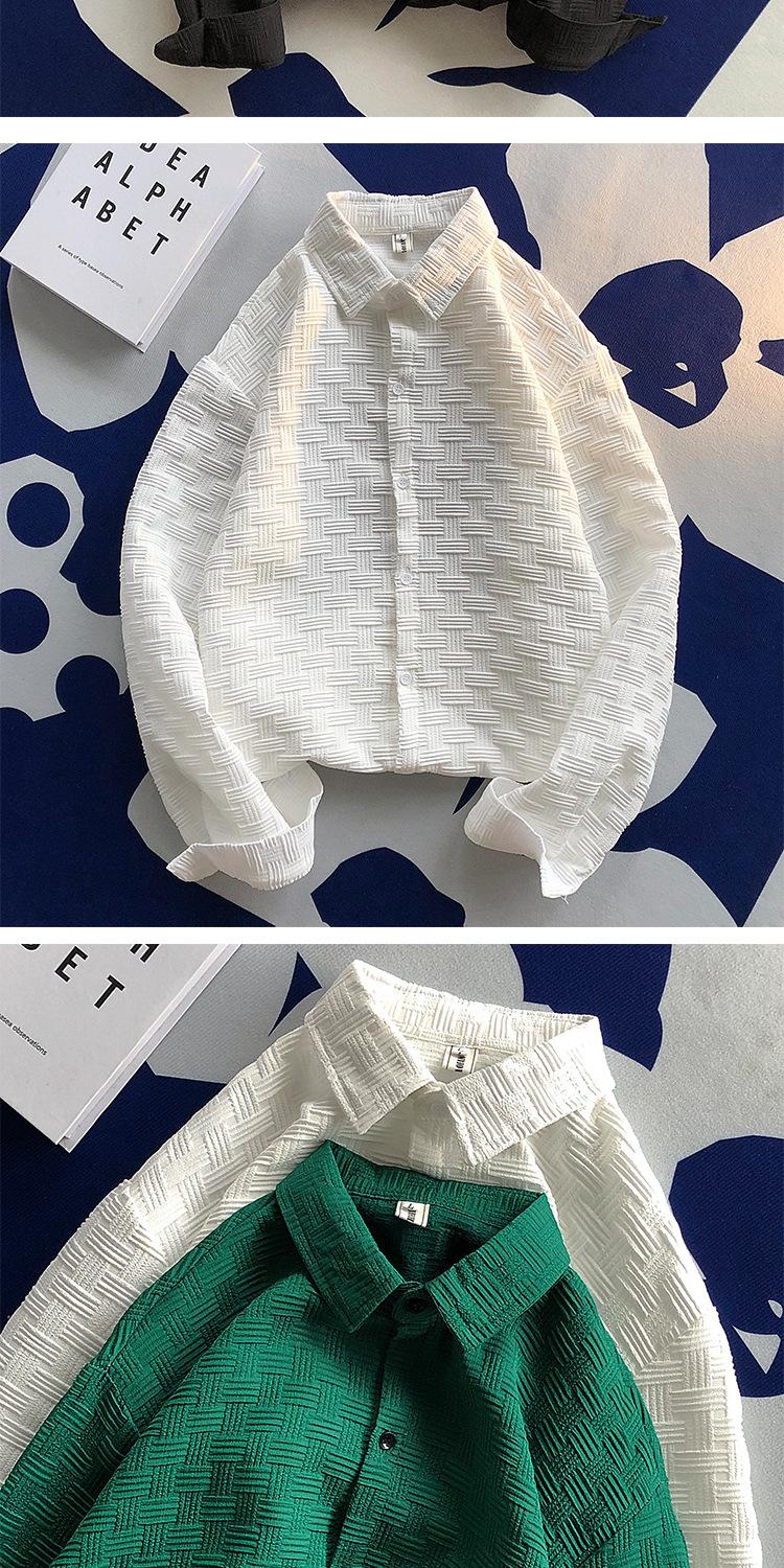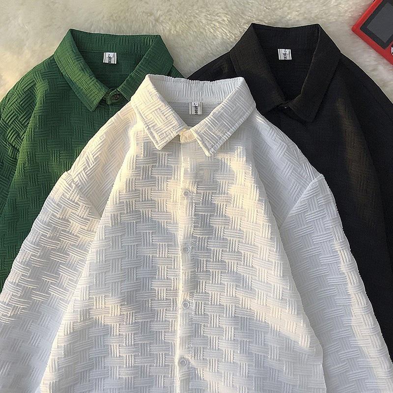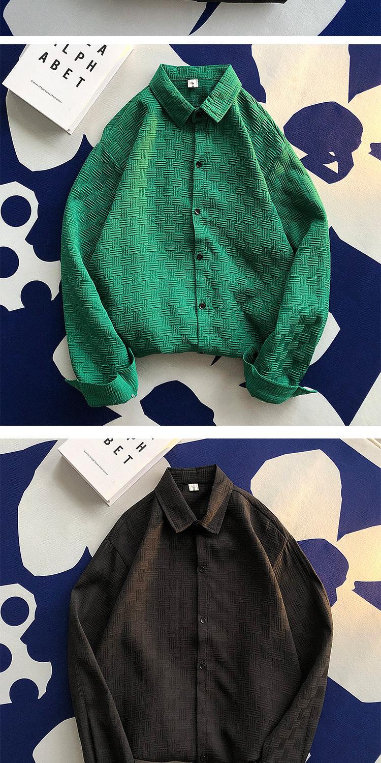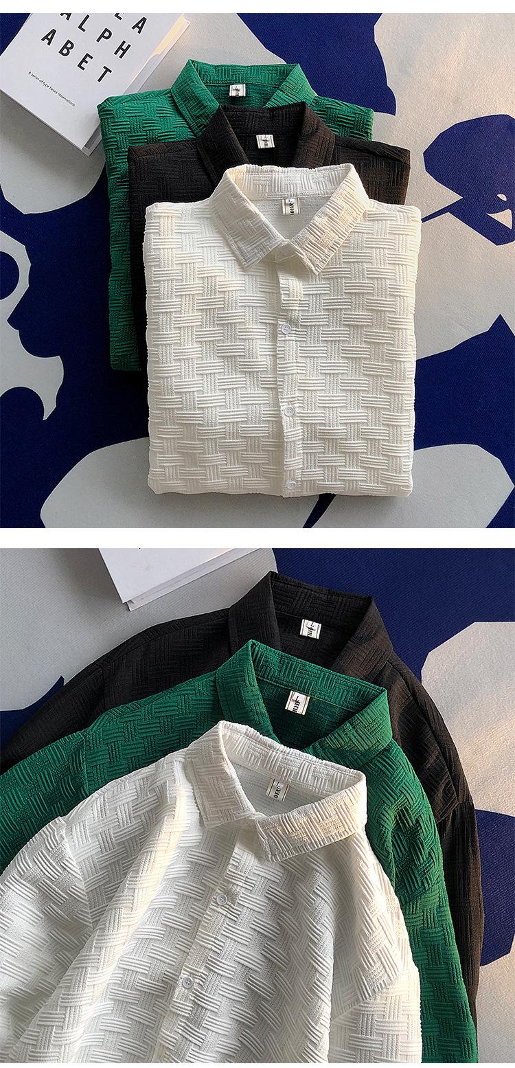 Camisa de manga larga tipo gofre para hombre, de primavera y otoño, holgada, sin planchado, informal, negra, americana, con solapa, para otoño