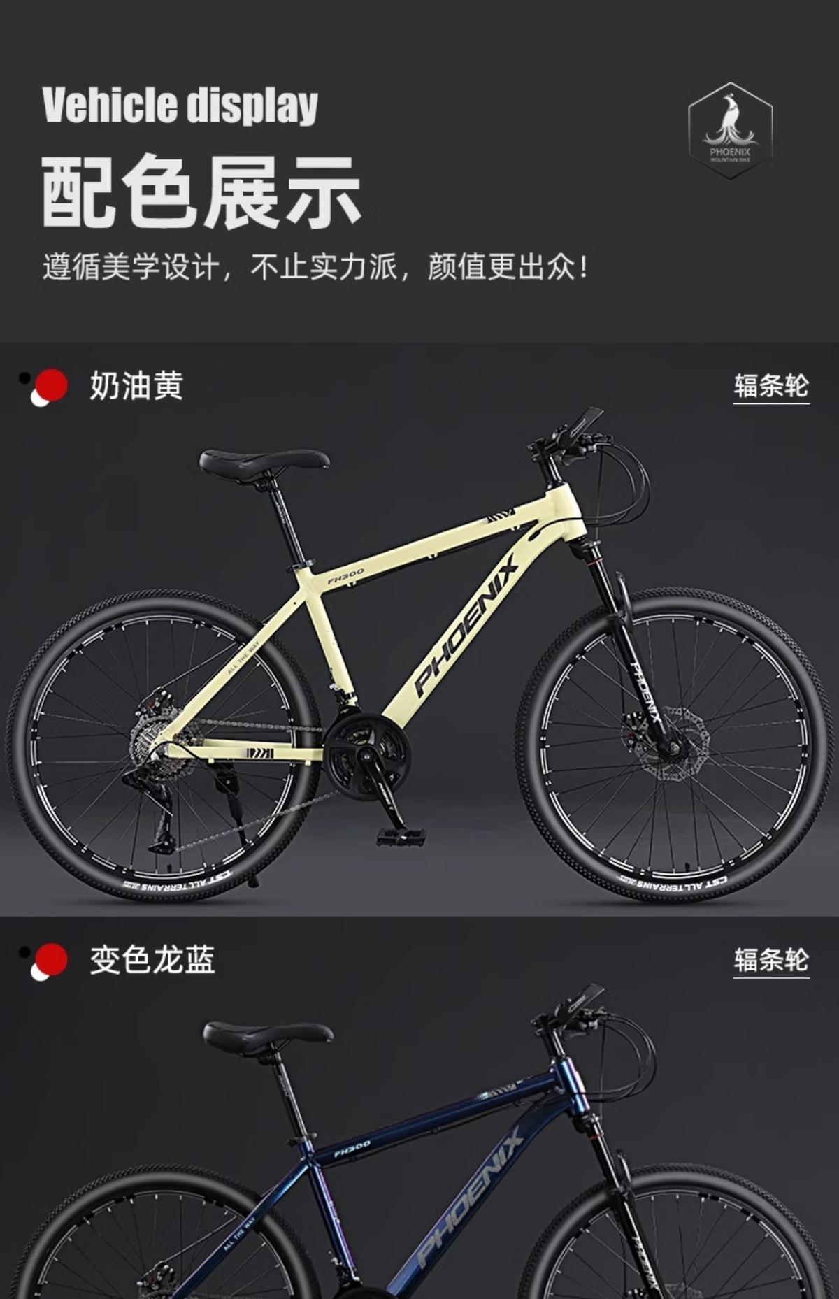 Bicicleta de Montaña Phoenix 24 Pulgadas 26 Pulgadas Todoterreno Velocidades Variables Freno de Disco Aleación de Aluminio Bicicleta de Carreras para Hombres y Mujeres Adultos Estudiantes
