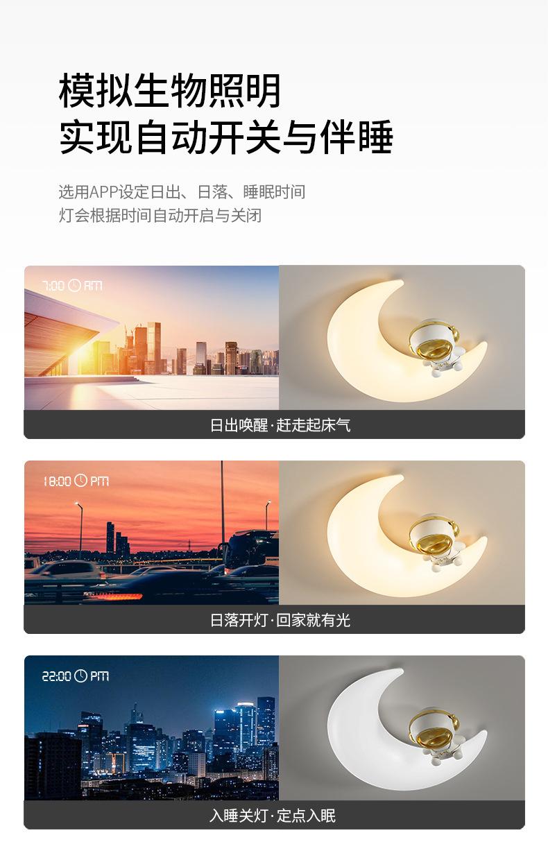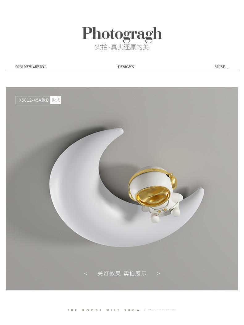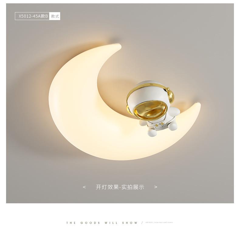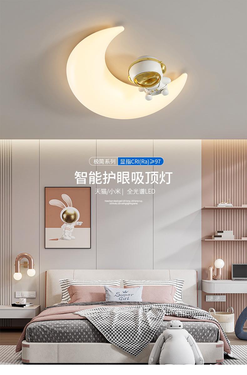 Lámpara de habitación infantil con dibujos animados creativos de astronauta y luna, luz crema, viento, espectro completo, protección ocular, lámpara de techo para dormitorio