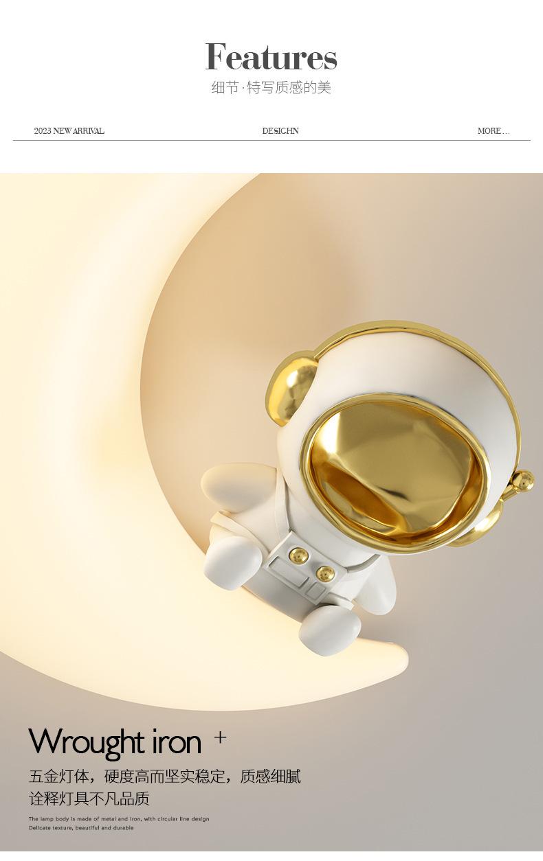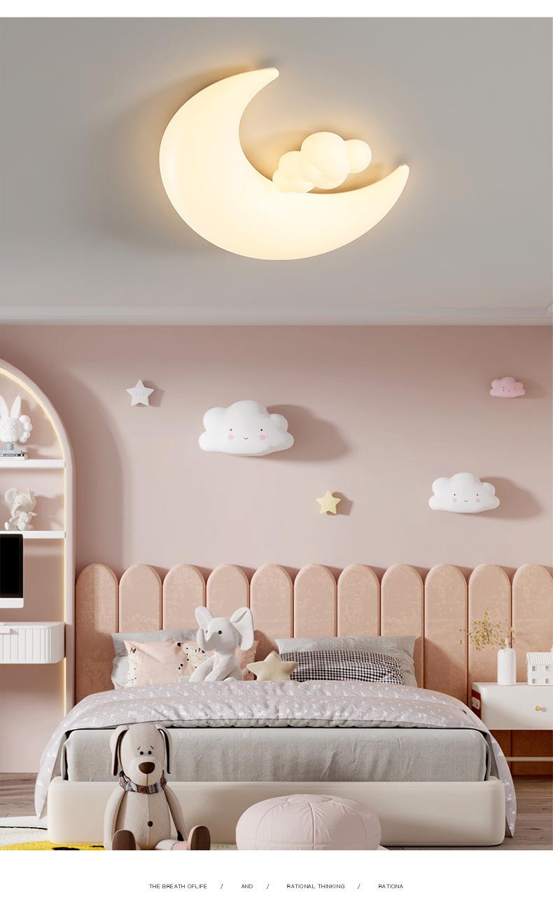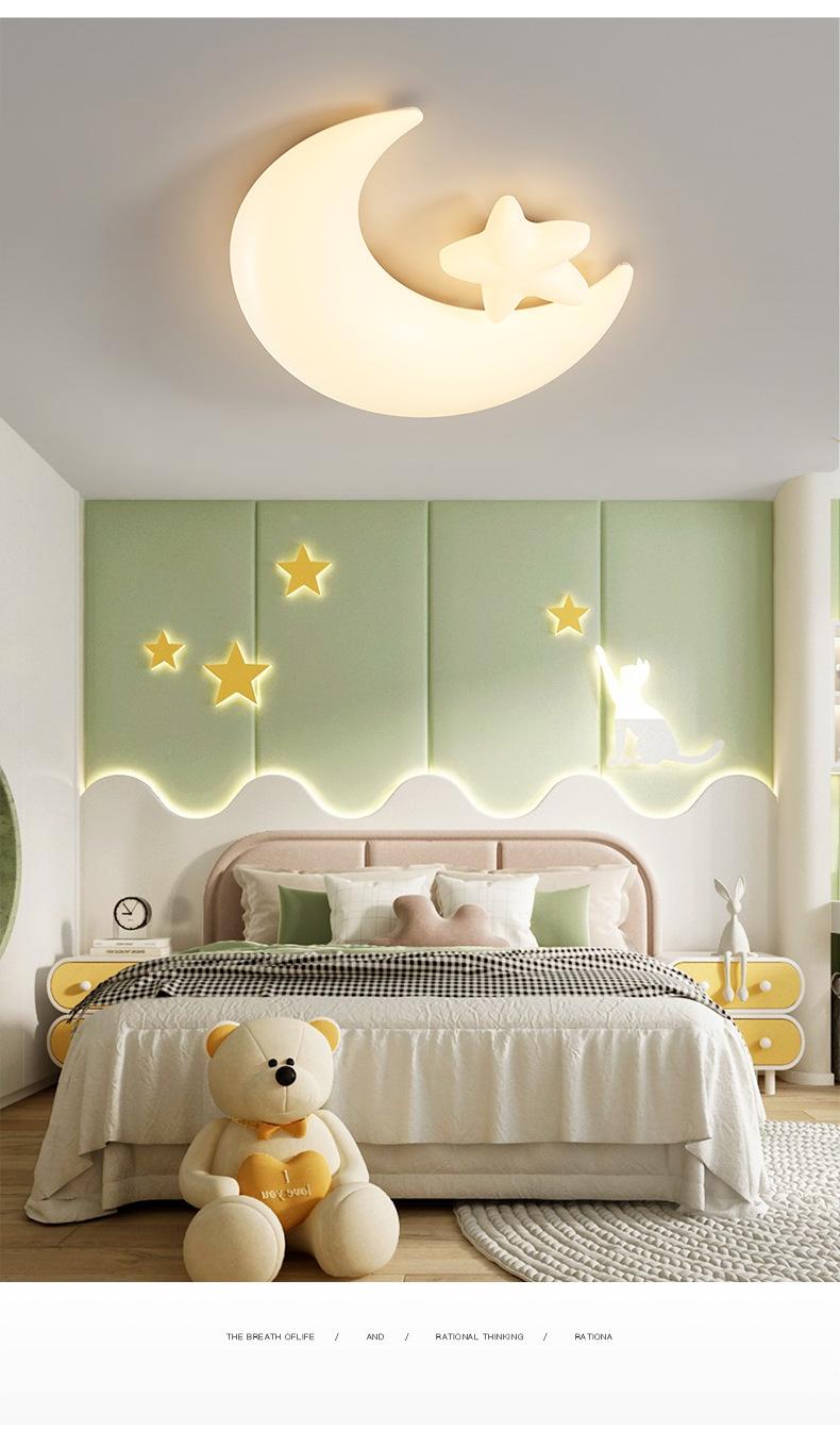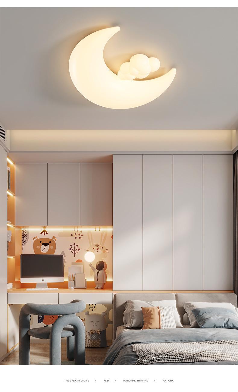 Lámpara de habitación infantil con dibujos animados creativos de astronauta y luna, luz crema, viento, espectro completo, protección ocular, lámpara de techo para dormitorio