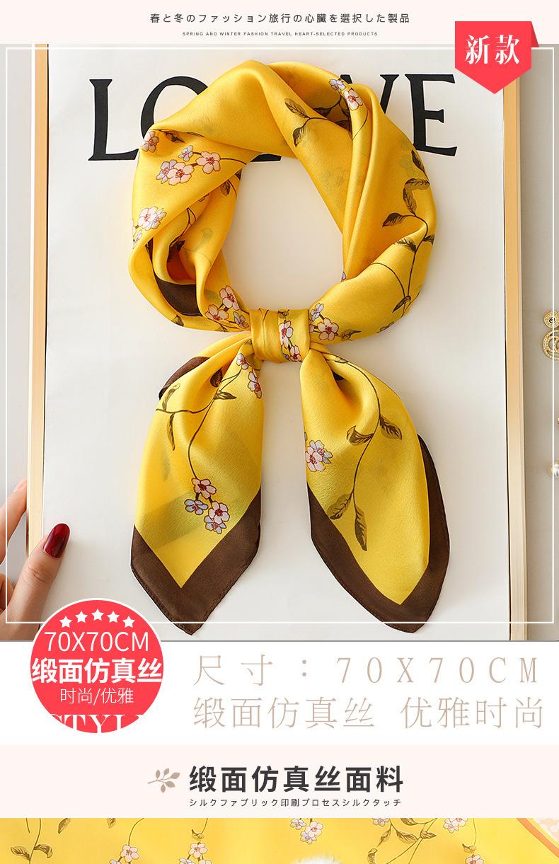 Bufanda cuadrada pequeña amarilla para mujer, para primavera, otoño e invierno, protección para el cuello, fina, a juego con camisa, 70 x 70