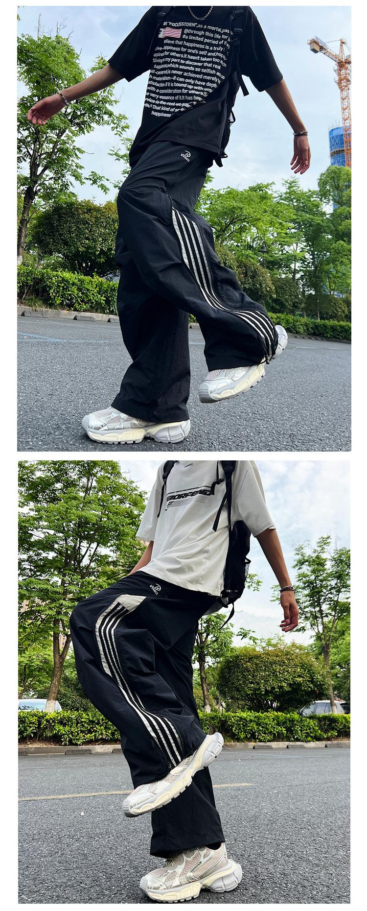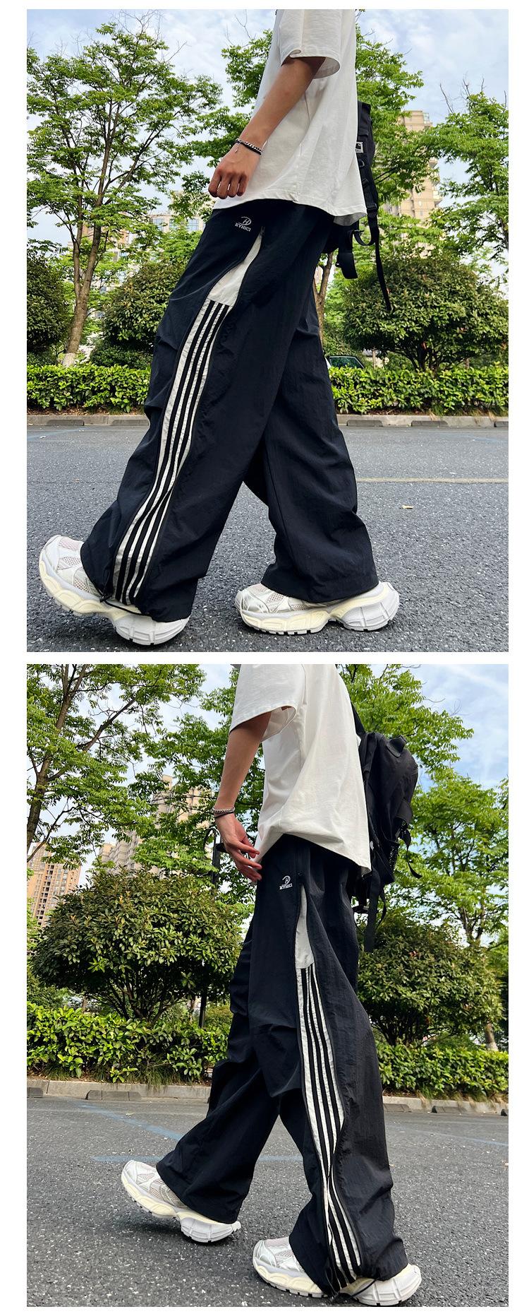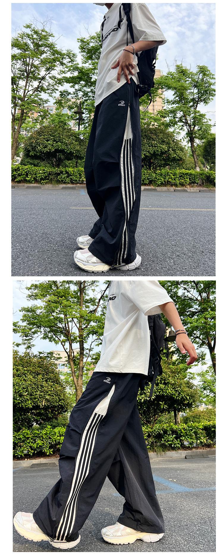 Pantalones para Hombre Verano 2024 Nuevo Estilo Americano High Street Marca Trendy Delgados Secado Rápido Tres Barras Sueltos Rectos Casuales