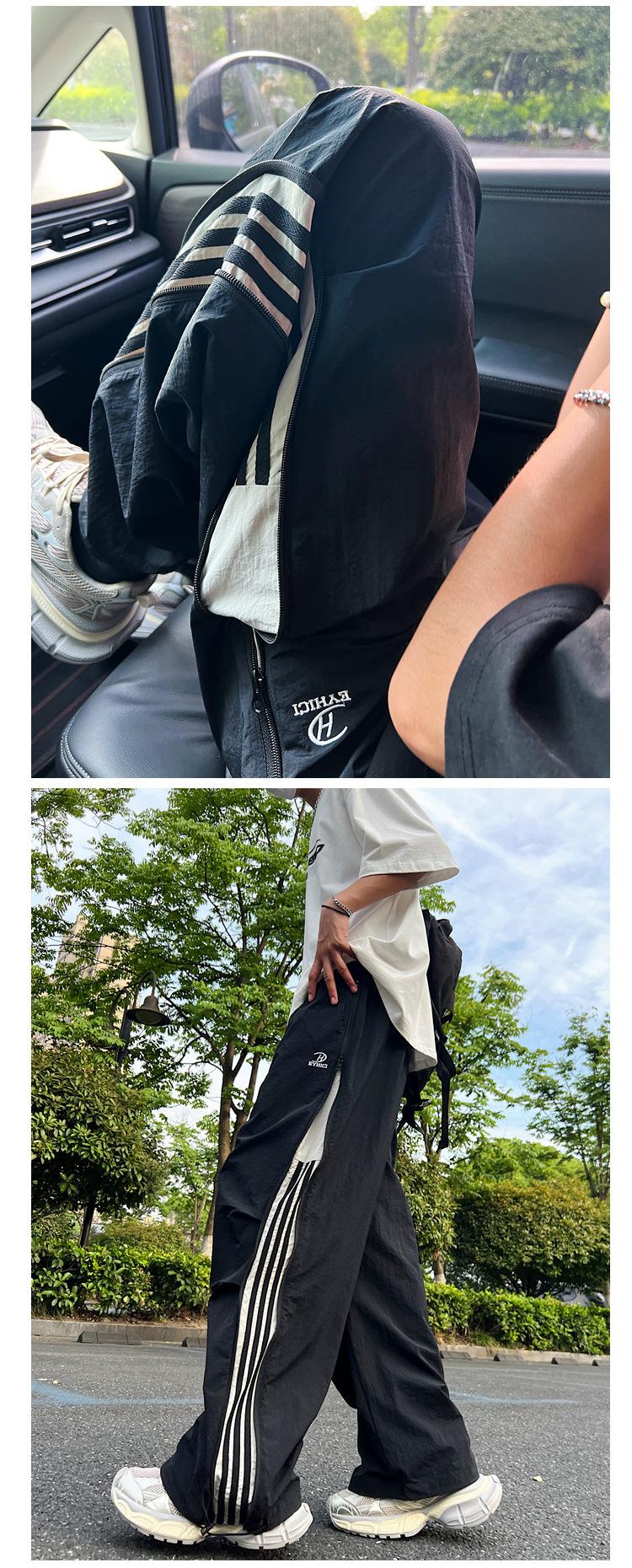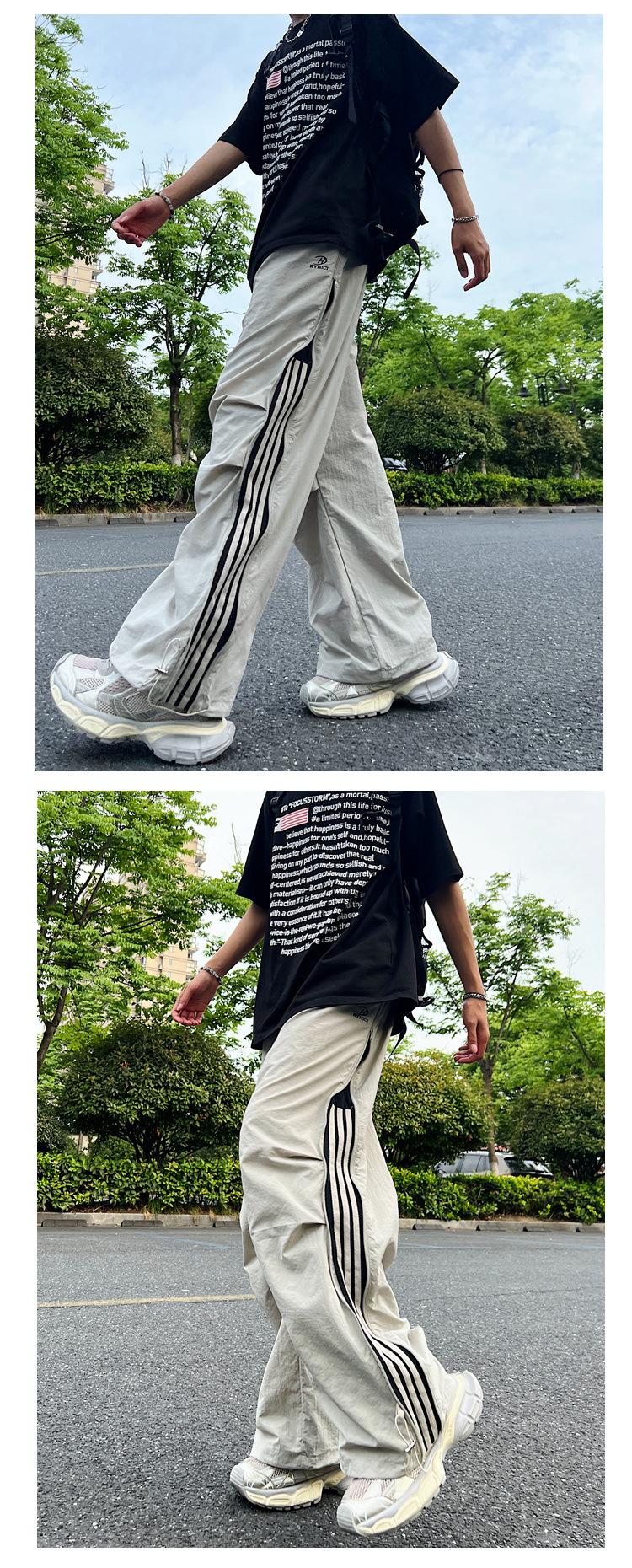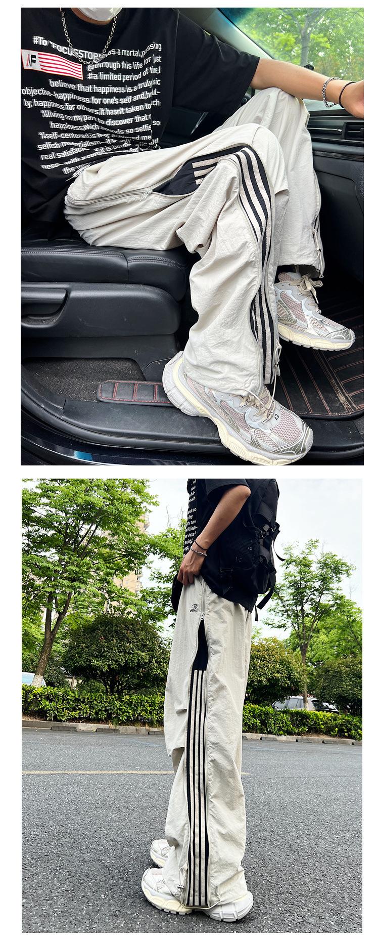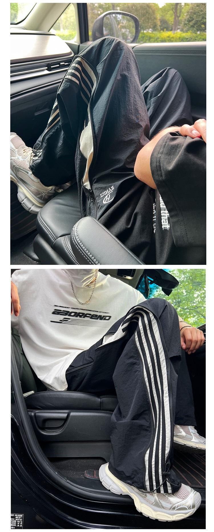 Pantalones para Hombre Verano 2024 Nuevo Estilo Americano High Street Marca Trendy Delgados Secado Rápido Tres Barras Sueltos Rectos Casuales