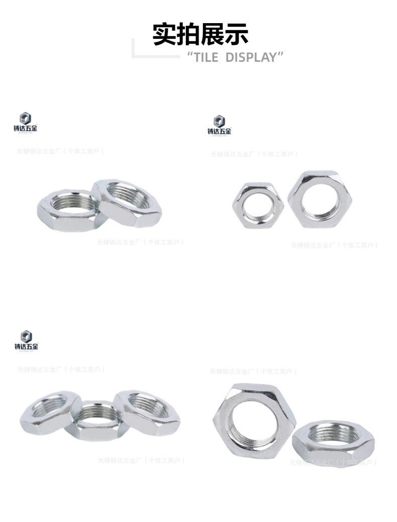Compra Tuerca Hexagonal de Acero al Carbono Delgada Grado 4.8 Color Natural Tuerca M6M8M10M11M12M14M16M18M20 al por mayor en Joom.pro