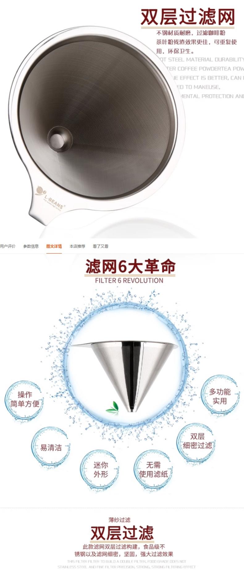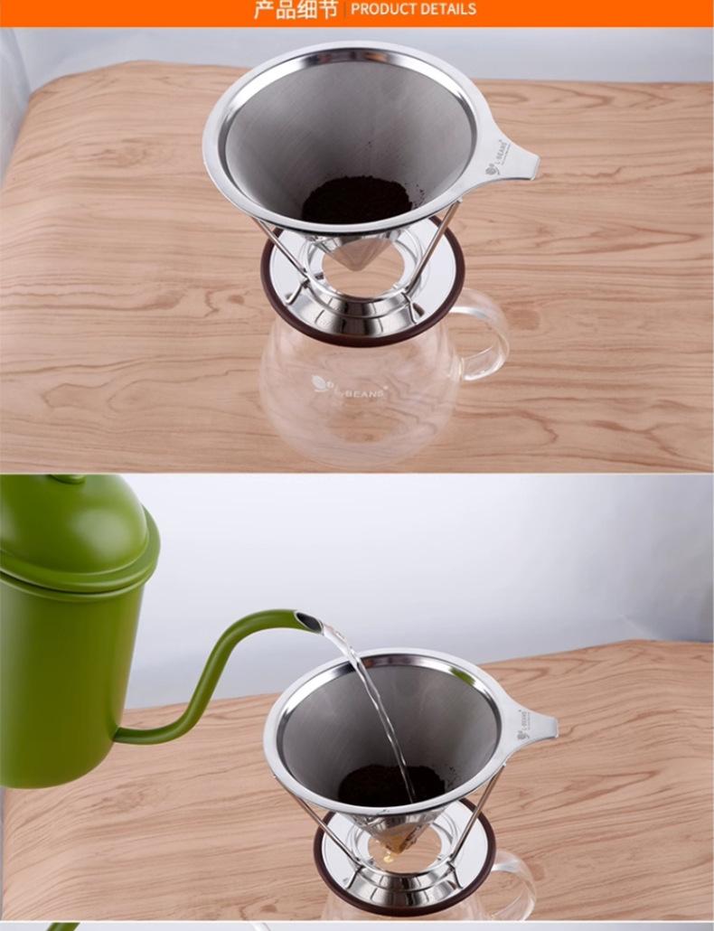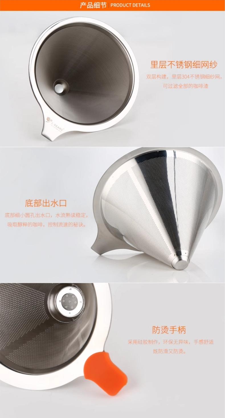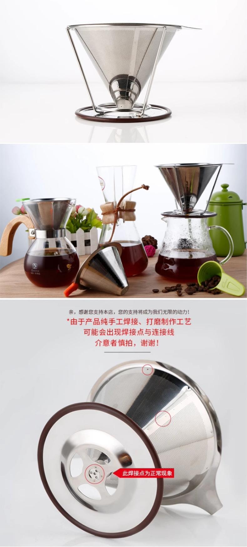 Filtro de acero inoxidable de una pieza de doble capa sin papel de filtro taza de filtro embudo para filtro de café transfronterizo