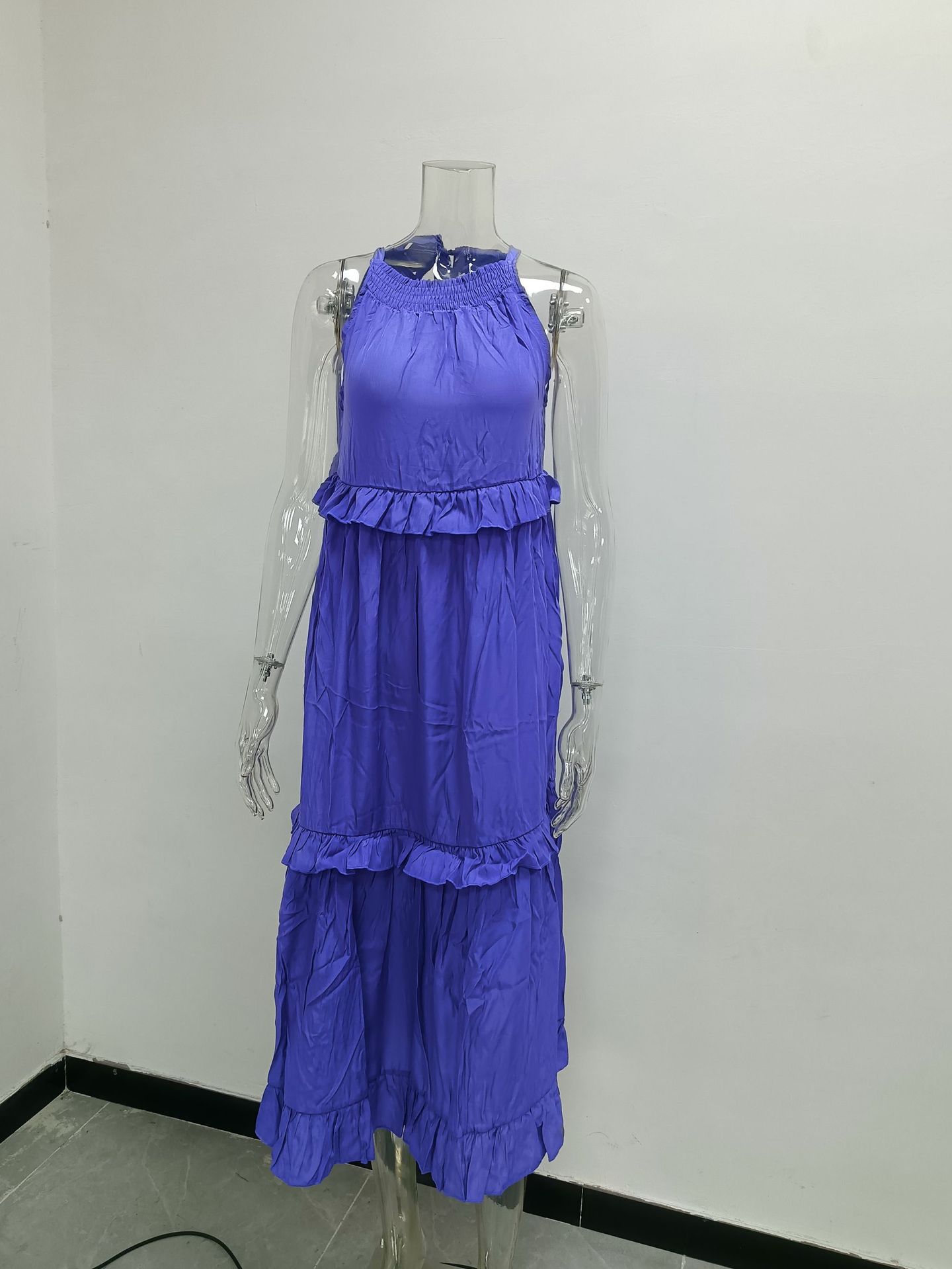 Vestido de verano Nuevo Pastel Irregular Trapeador Amazon Manga Corta Europeo y Americano para Mujer Vacaciones Vestido Largo
