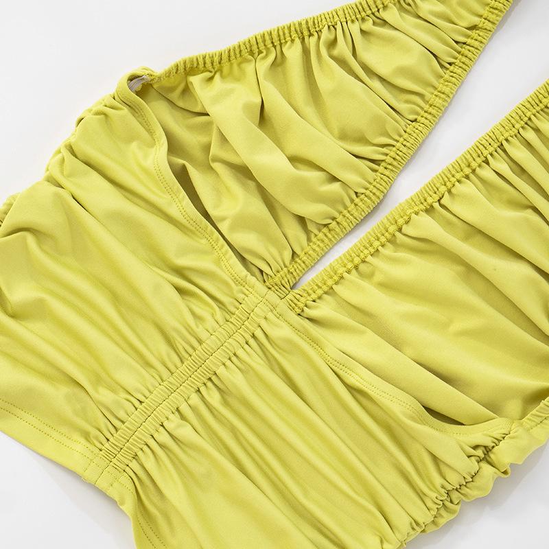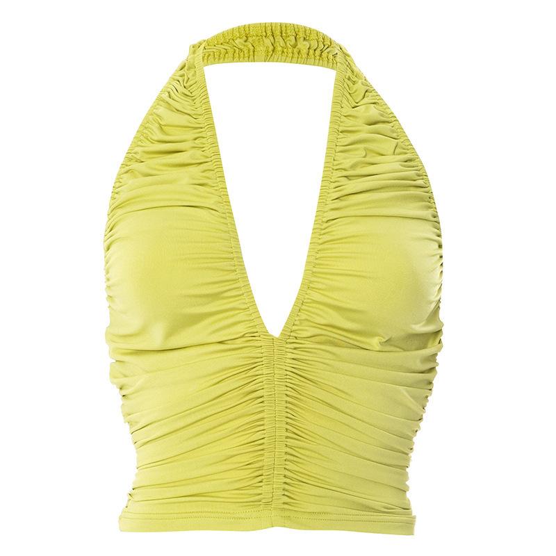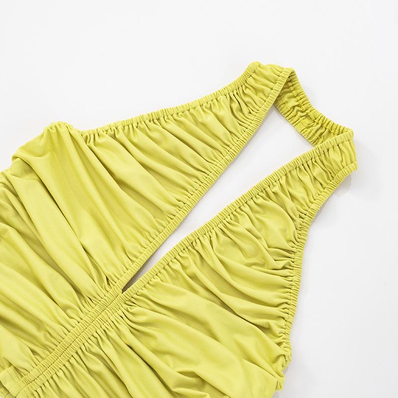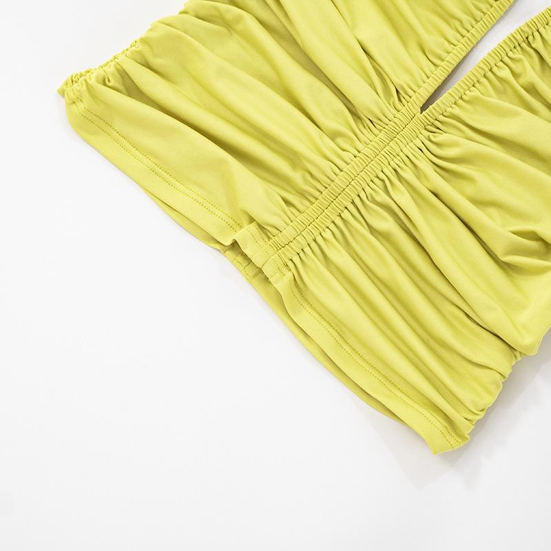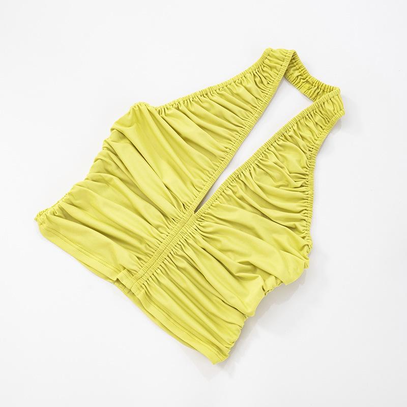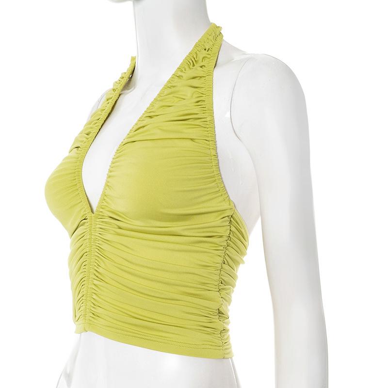 Europeo y Americano Transfronterizo de Verano para Mujer Amazon Nuevo Color Sólido Cuello V Plisado Sin Espalda Camisola