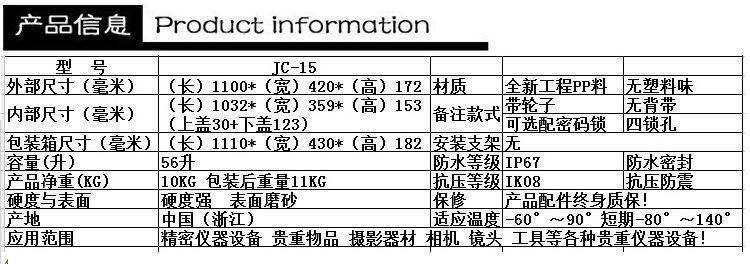 Seguridad JC-15 con caja de protección de seguridad de esponja, caja de herramientas, caja de equipo a prueba de golpes, caja de instrumentos sellada a prueba de agua