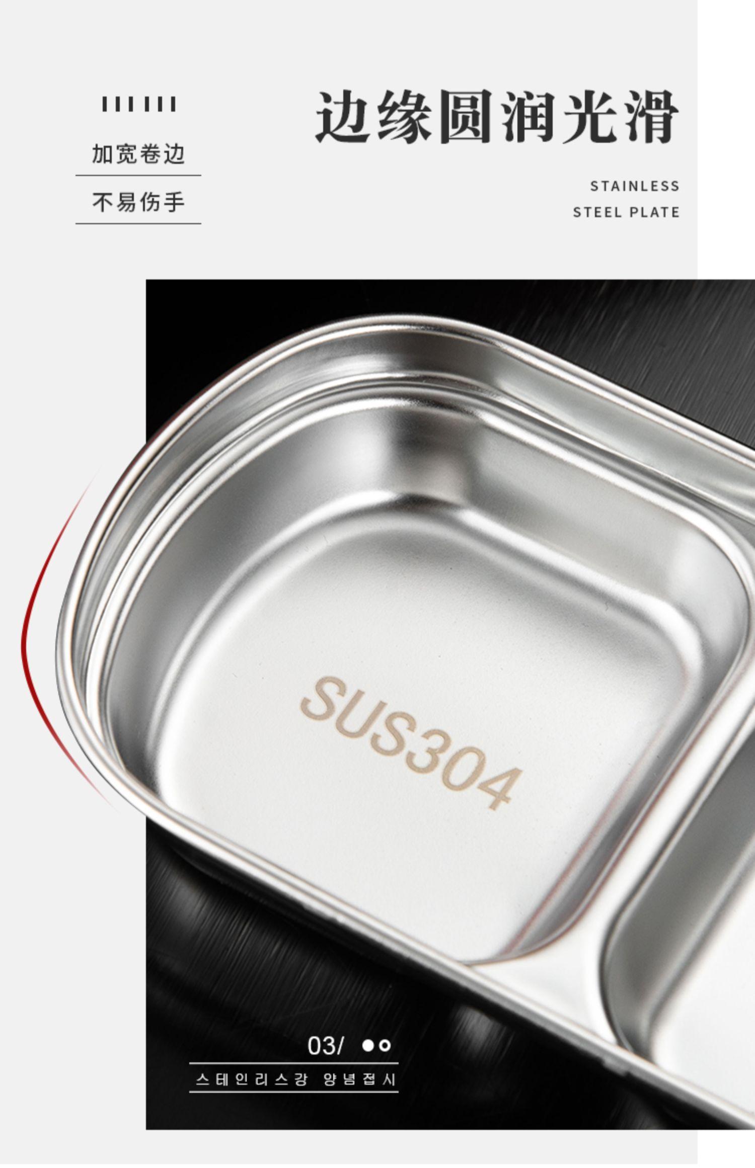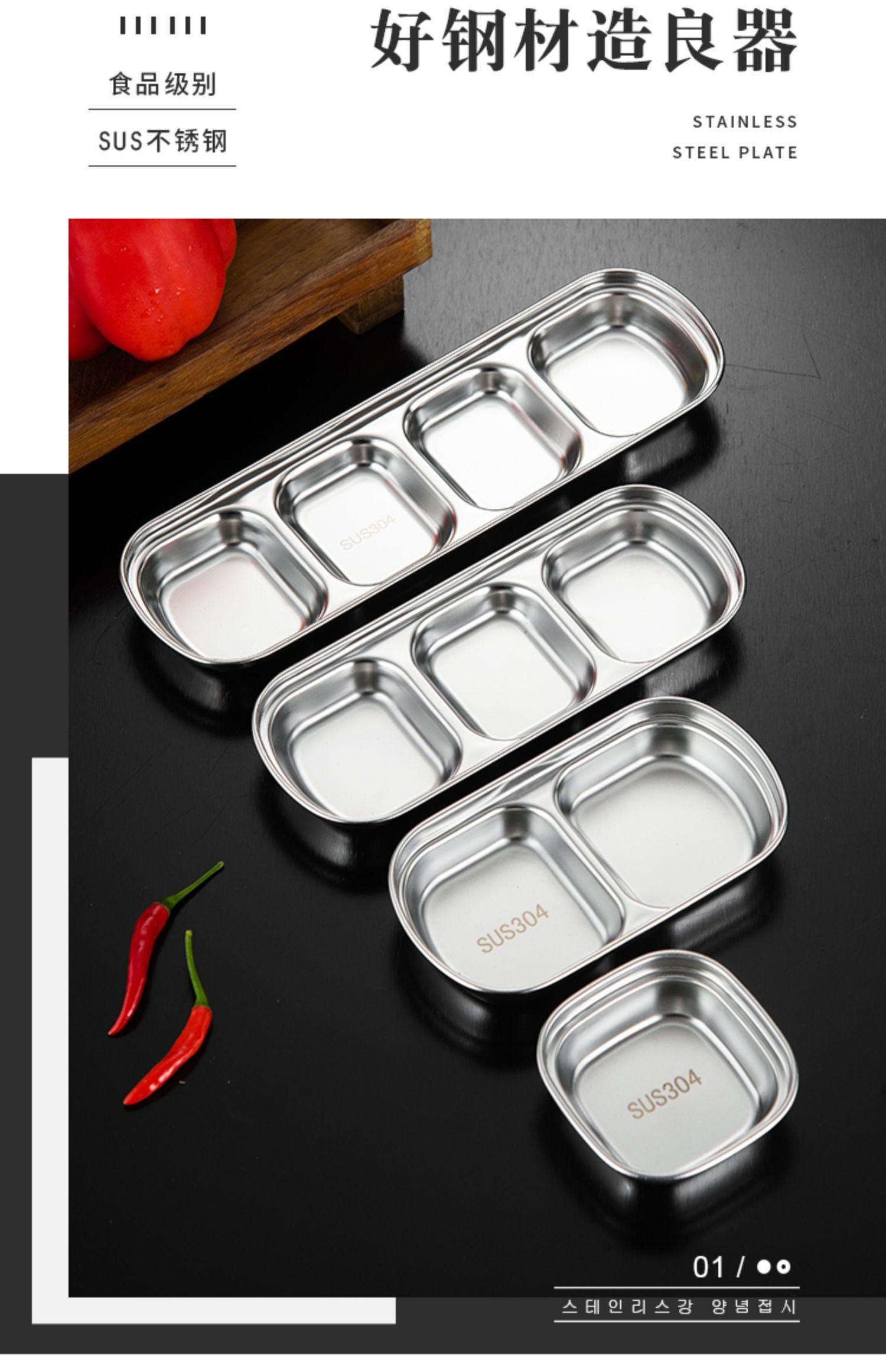 Plato de acero inoxidable 304 con sabor a estilo coreano, vajilla para barbacoa, plato para salsas, ollas calientes, condimentos, plato para encurtidos, dos compartimentos y tres compartimentos.