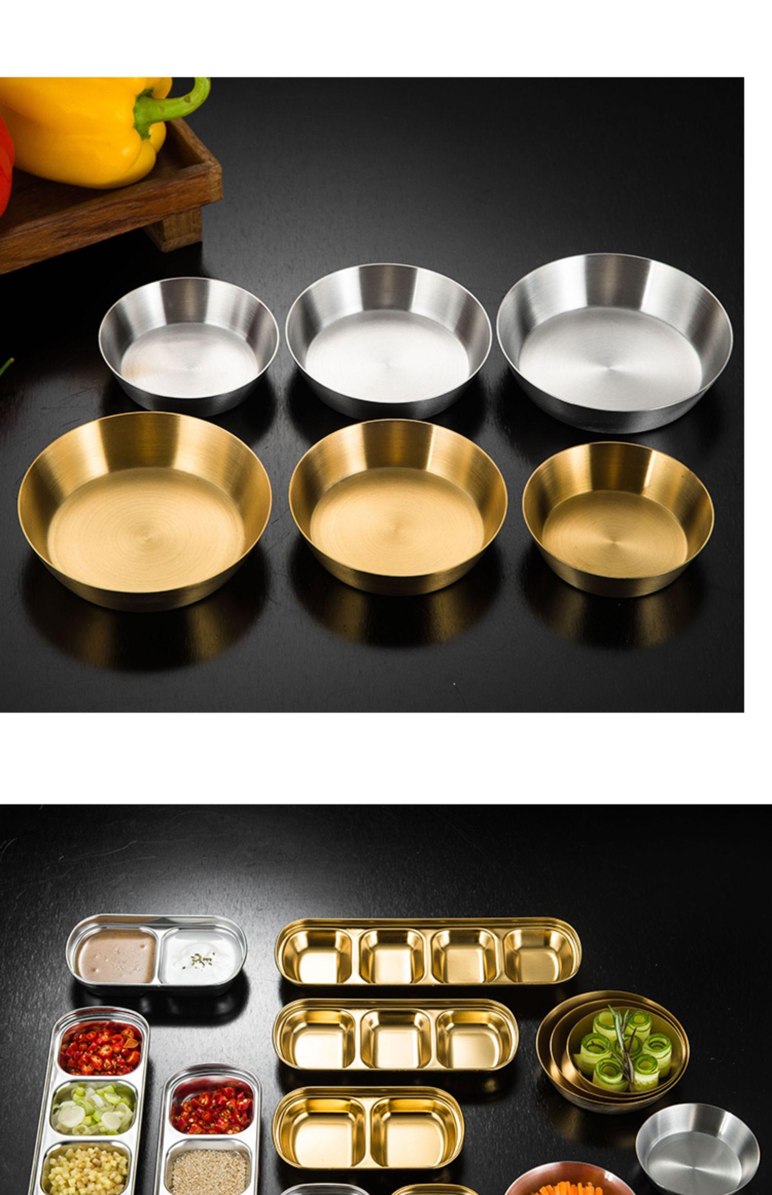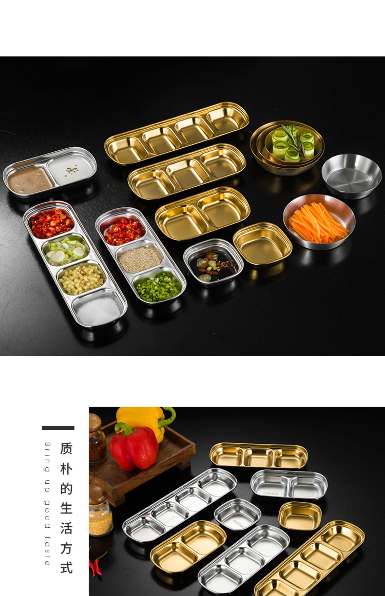 Compra Plato de acero inoxidable 304 con sabor a estilo coreano, vajilla para barbacoa, plato para salsas, ollas calientes, condimentos, plato para encurtidos, dos compartimentos y tres compartimentos. al por mayor en Joom.pro