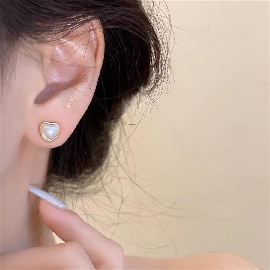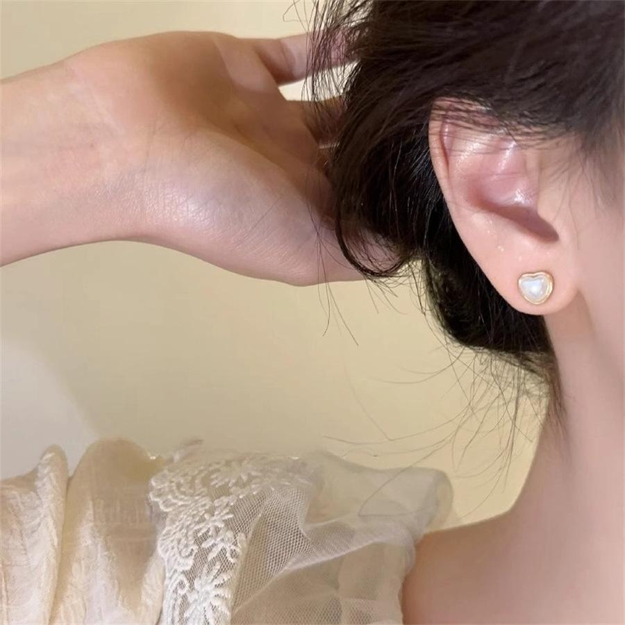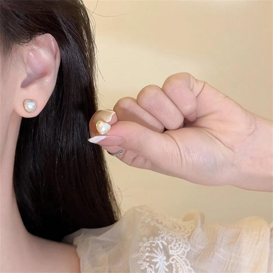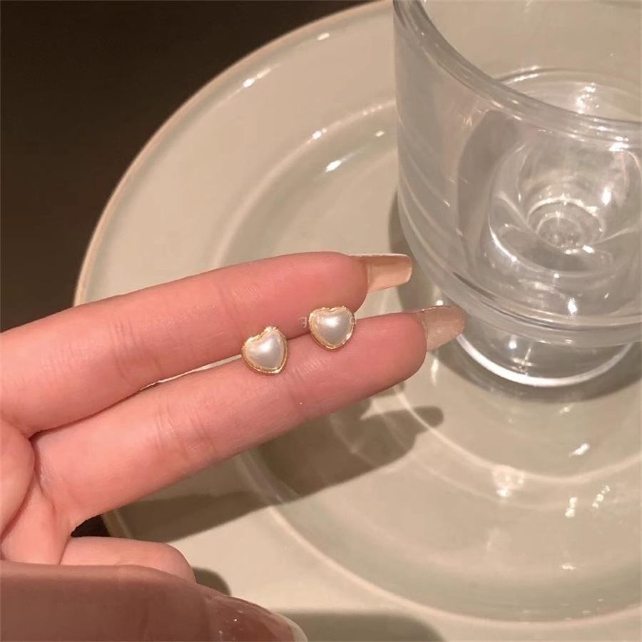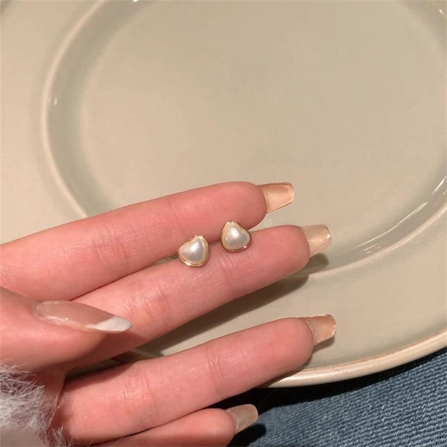 Compra Exquisitos pendientes de perlas de amor de Corea del Sur retro para mujer, pendientes delicados de alta gama, pequeños y elegantes que combinan con todo. al por mayor en Joom.pro