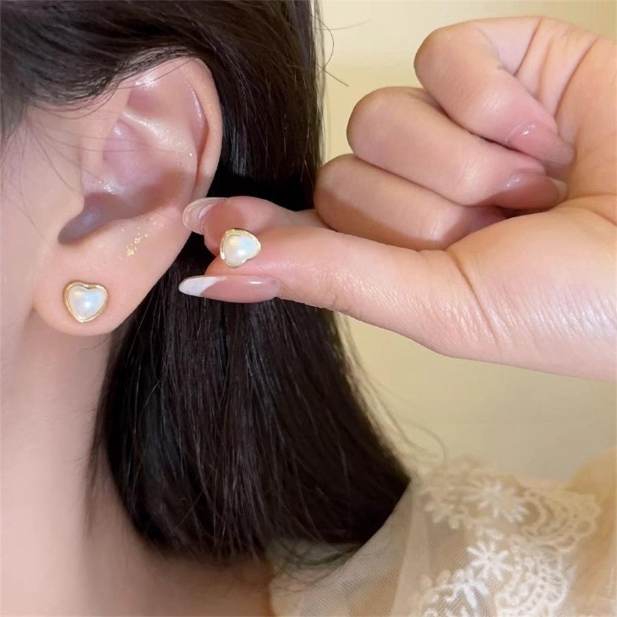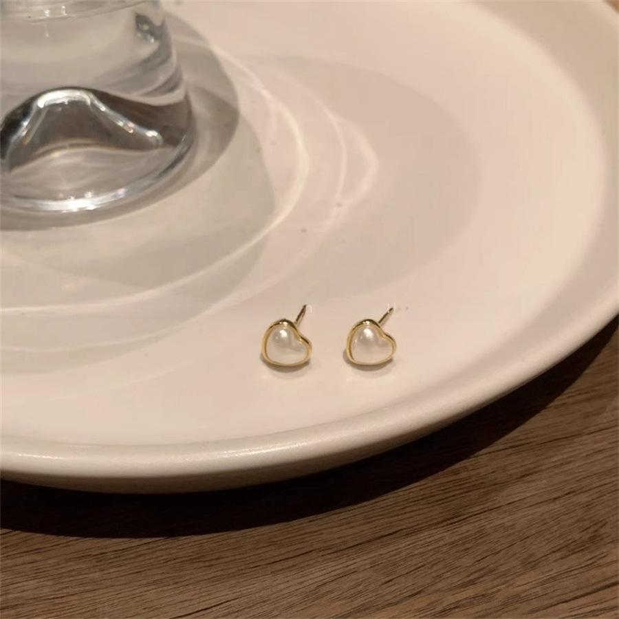 Exquisitos pendientes de perlas de amor de Corea del Sur retro para mujer, pendientes delicados de alta gama, pequeños y elegantes que combinan con todo.