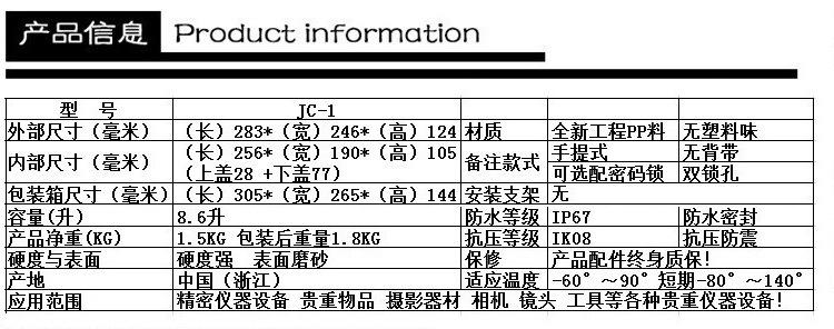 Suministro directo de fábrica, caja de herramientas vacía JC-1 de seguridad, caja de equipo sellada a prueba de golpes e impermeable, caja de instrumentos, caja protectora