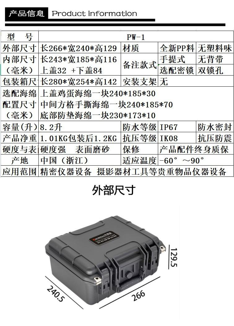 Herramientas de seguridad Wandebao PW-1 con caja de embalaje de equipo de esponja instrumento tanque de agua a prueba de golpes anti-presión caja triple a prueba