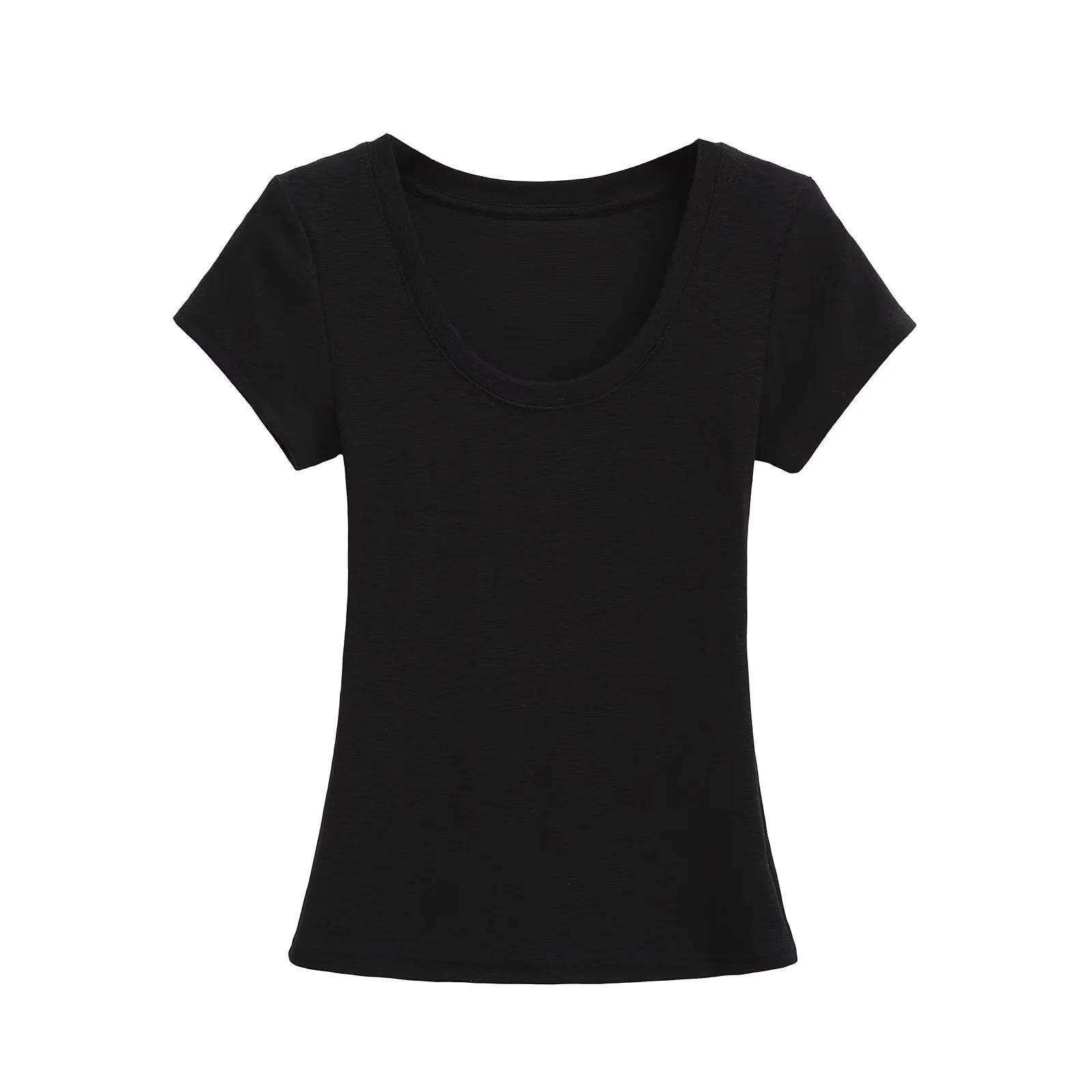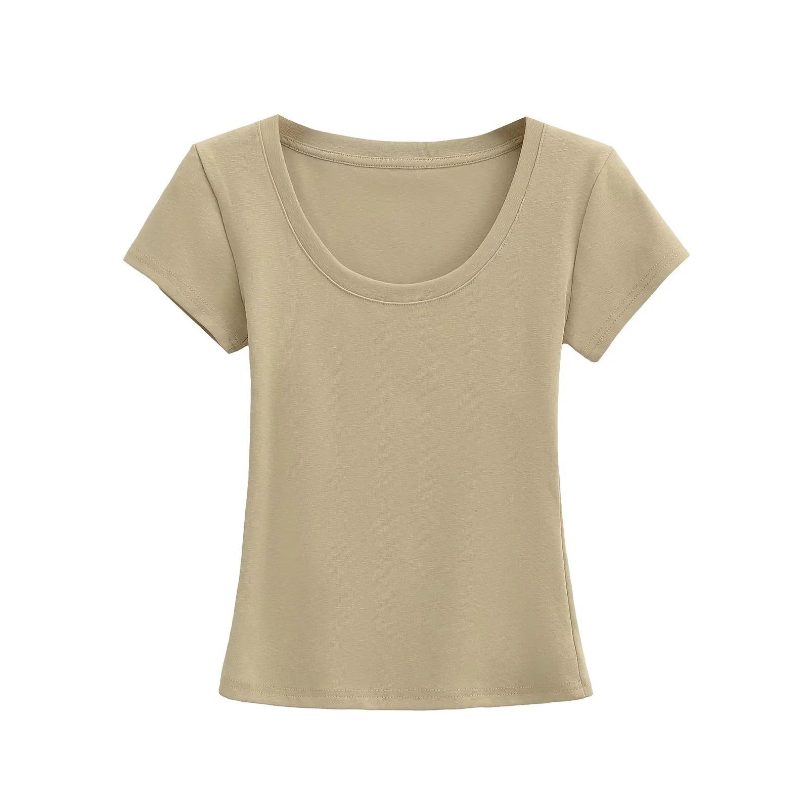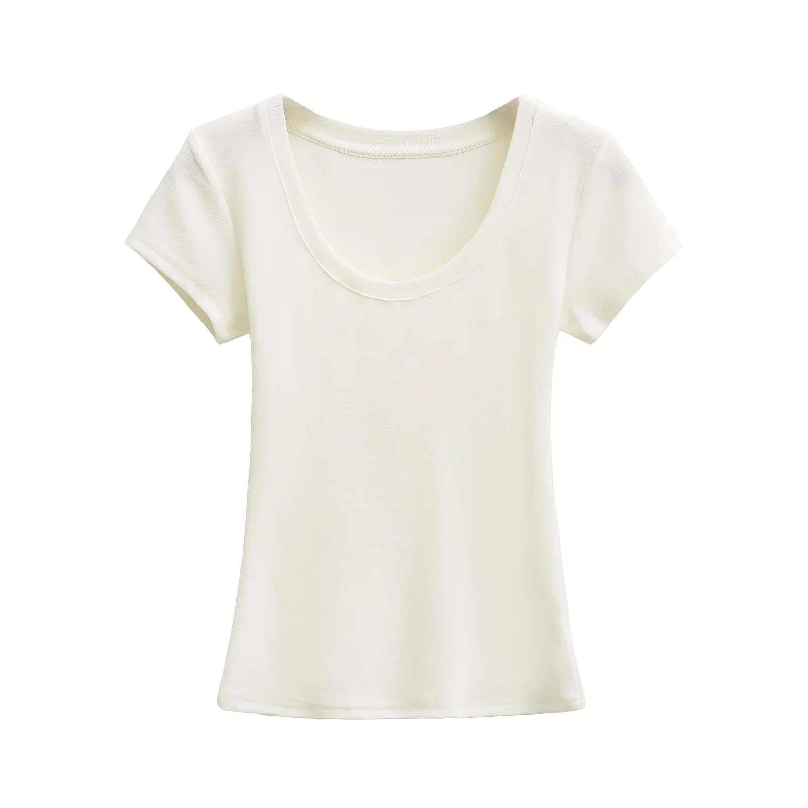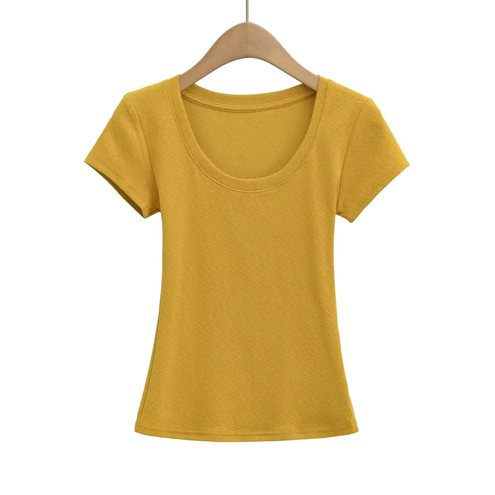 Camiseta básica de verano de manga corta con hombros descubiertos y cuello redondo para mujer, estilo americano, ajustada, para chicas